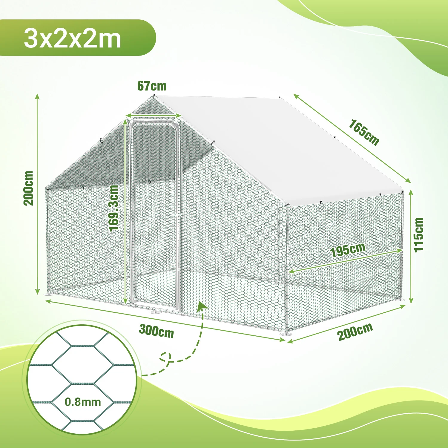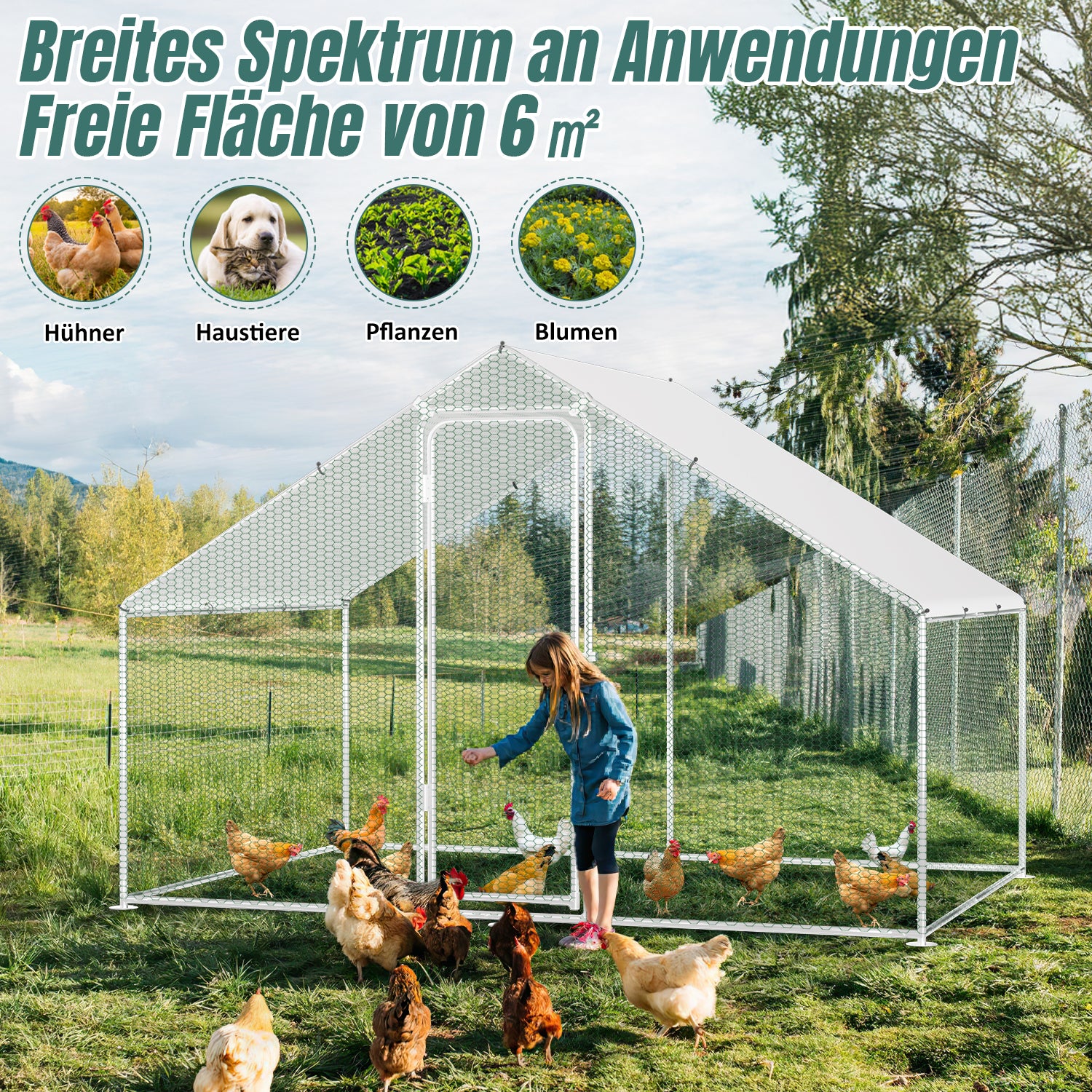 Hühnerstall Freilaufgehege Verzinkter Stahl mit Dachplane 3*2*2m