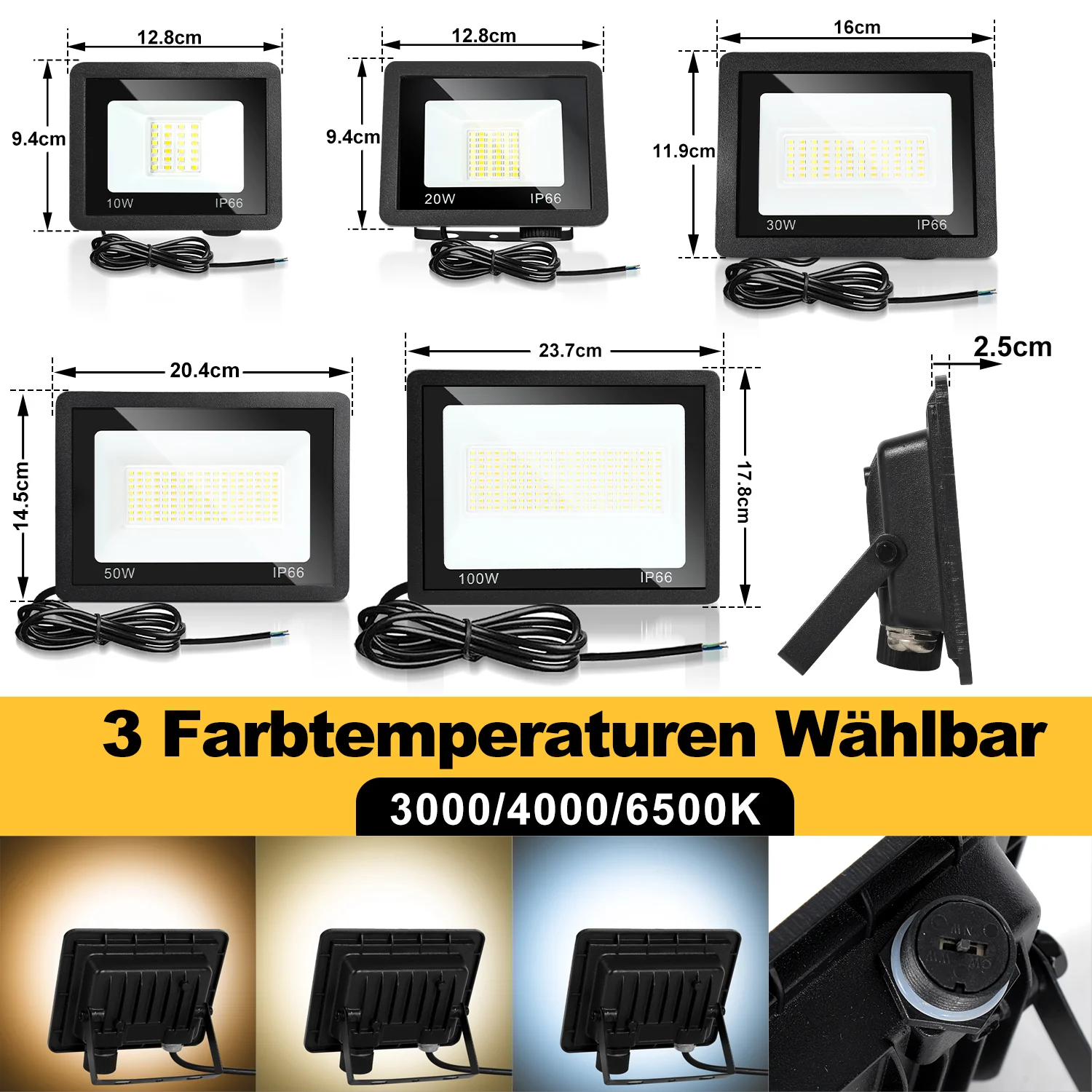 LED Strahler Außen 10W-100W 3 Farbtemperatur 3000/4000/6500K