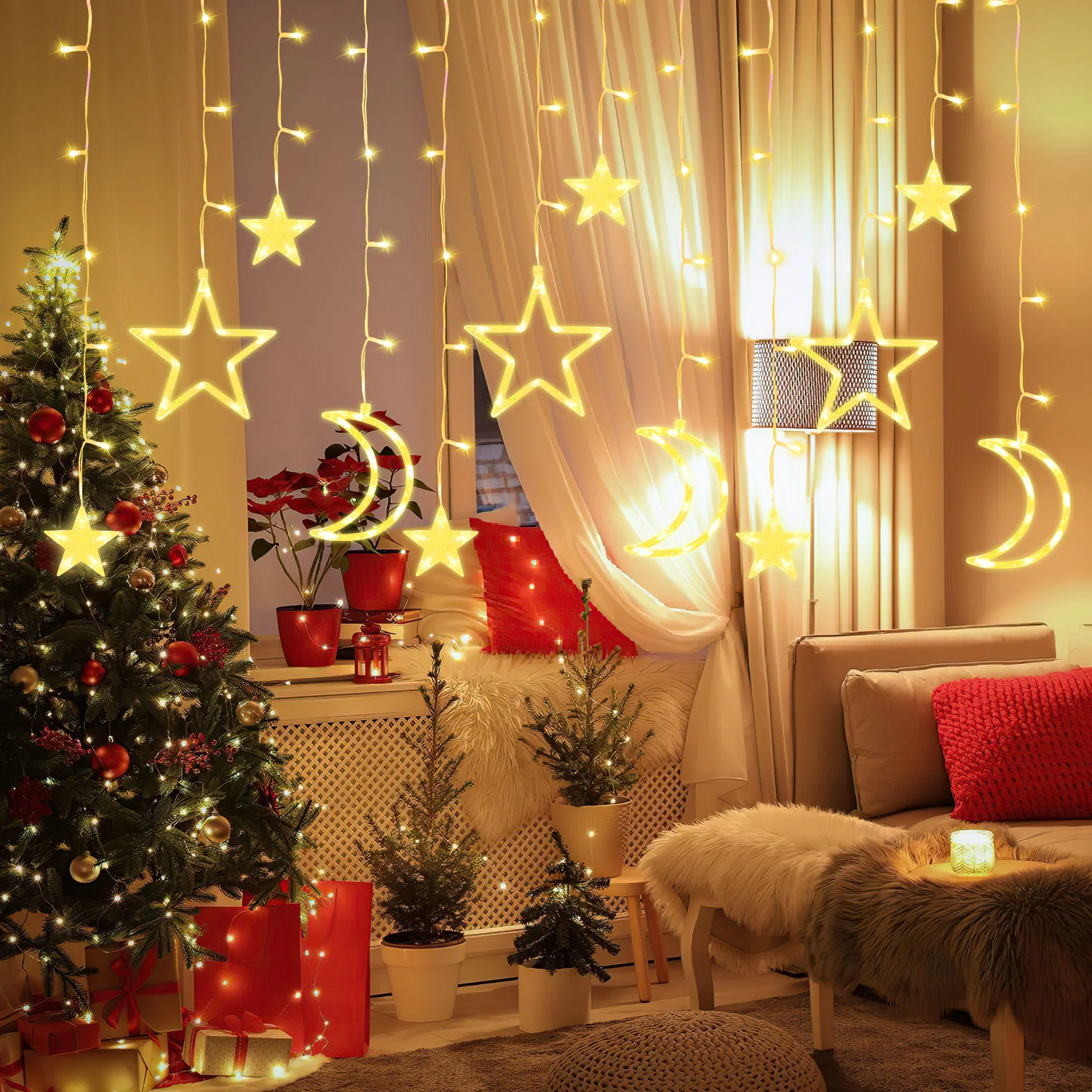 LED Sterne Weihnachtsbeleuchtung Lichtervorhang 3,5M