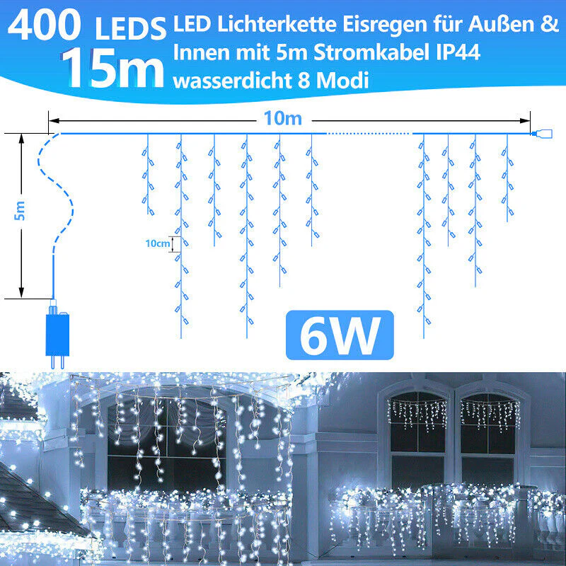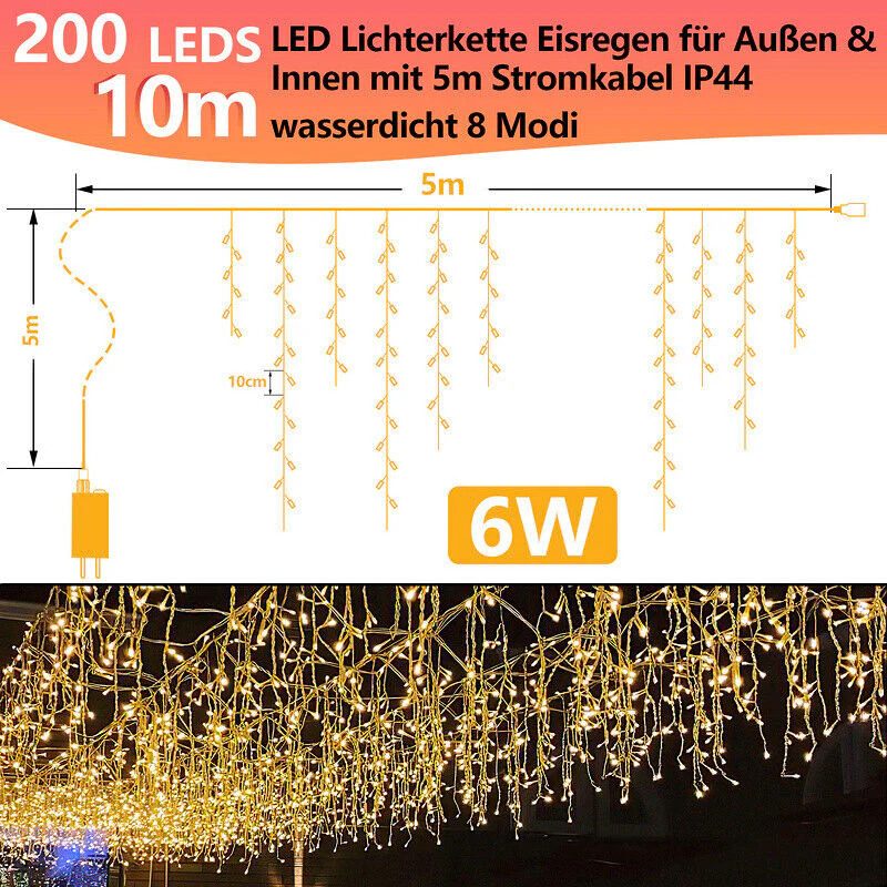 LED Eisregen Lichterkette 200/400/600 LEDs