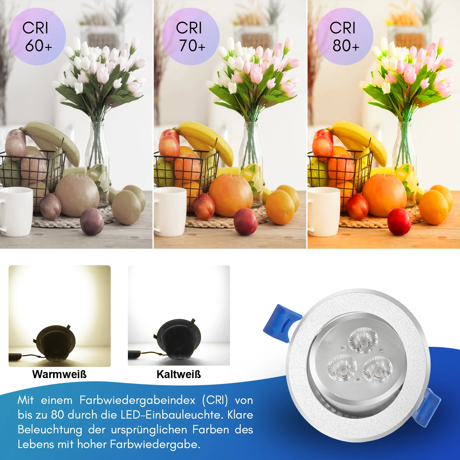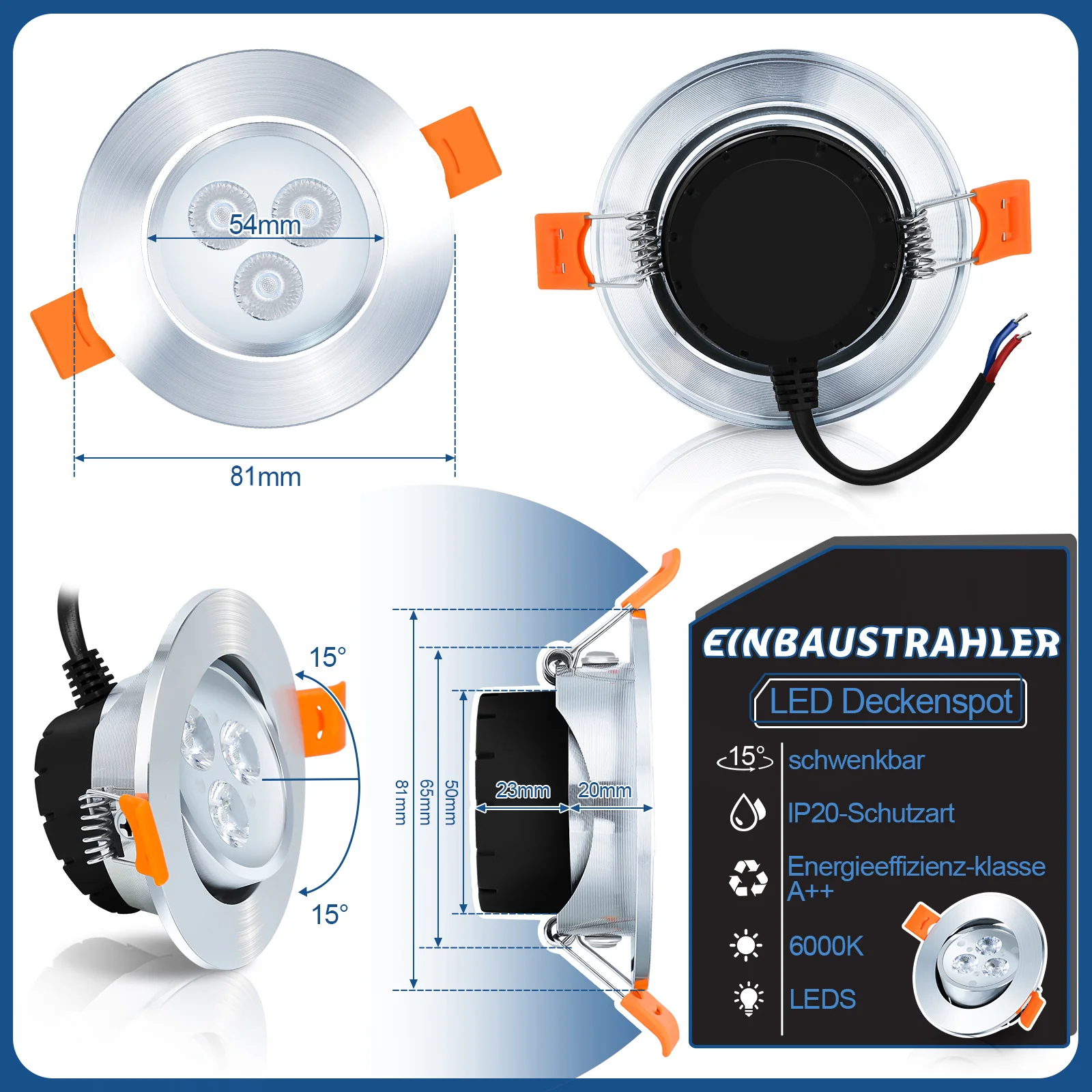 LED Einbaustrahler Integriert 3W Warmweiß/Kaltweiß