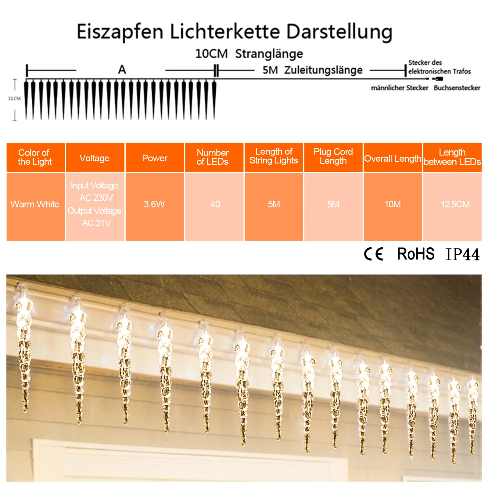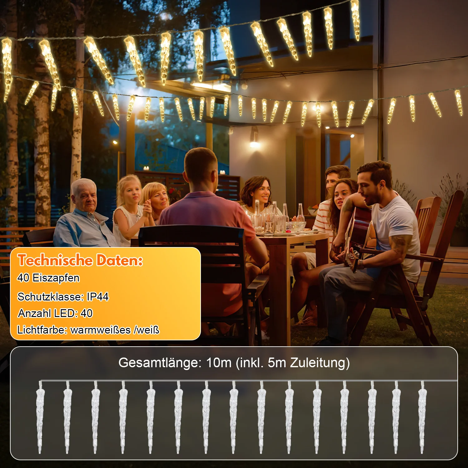 LED Eiszapfen Lichterkette 40 LEDs