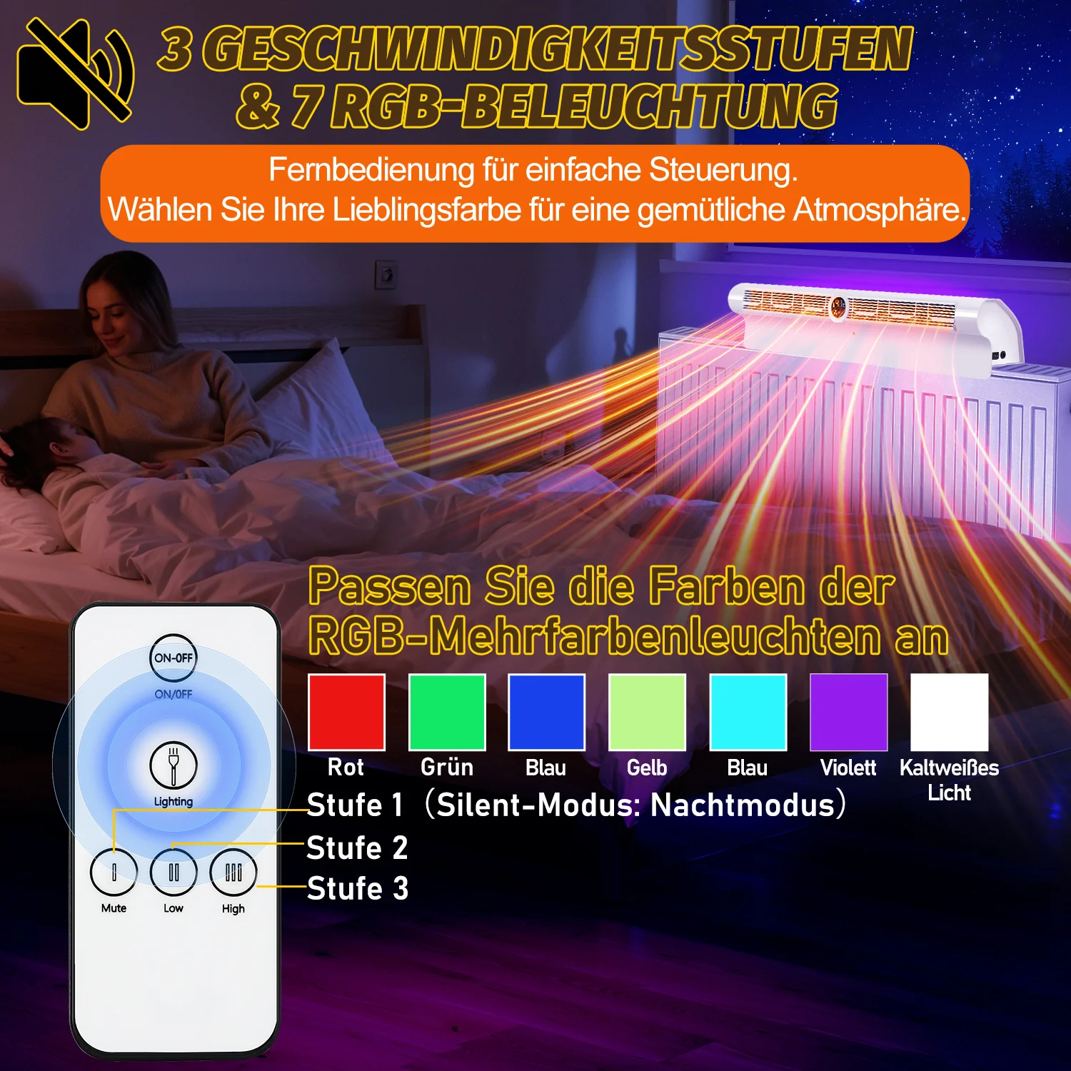 Heizkörper Ventilator Heizverstärker 6 Auslässen und Beleuchtung
