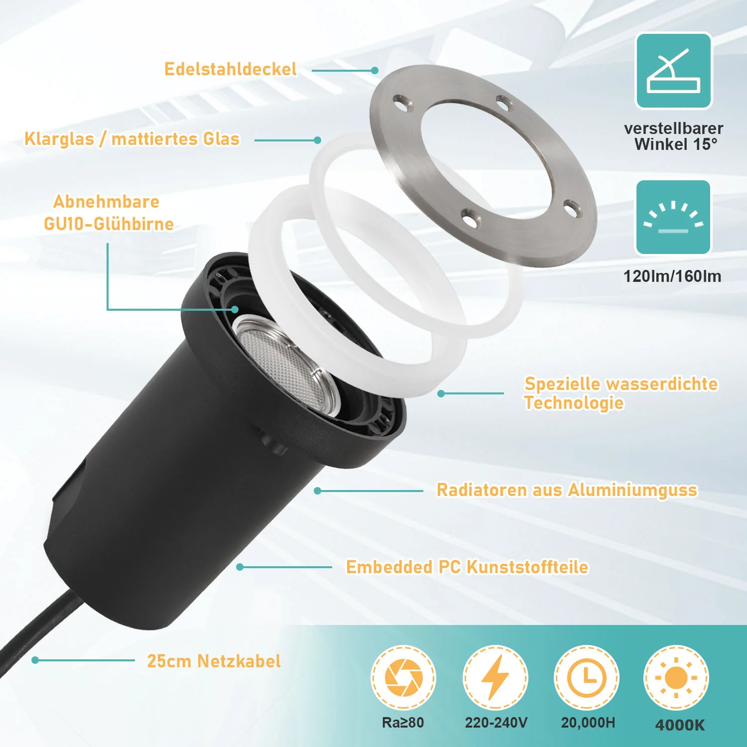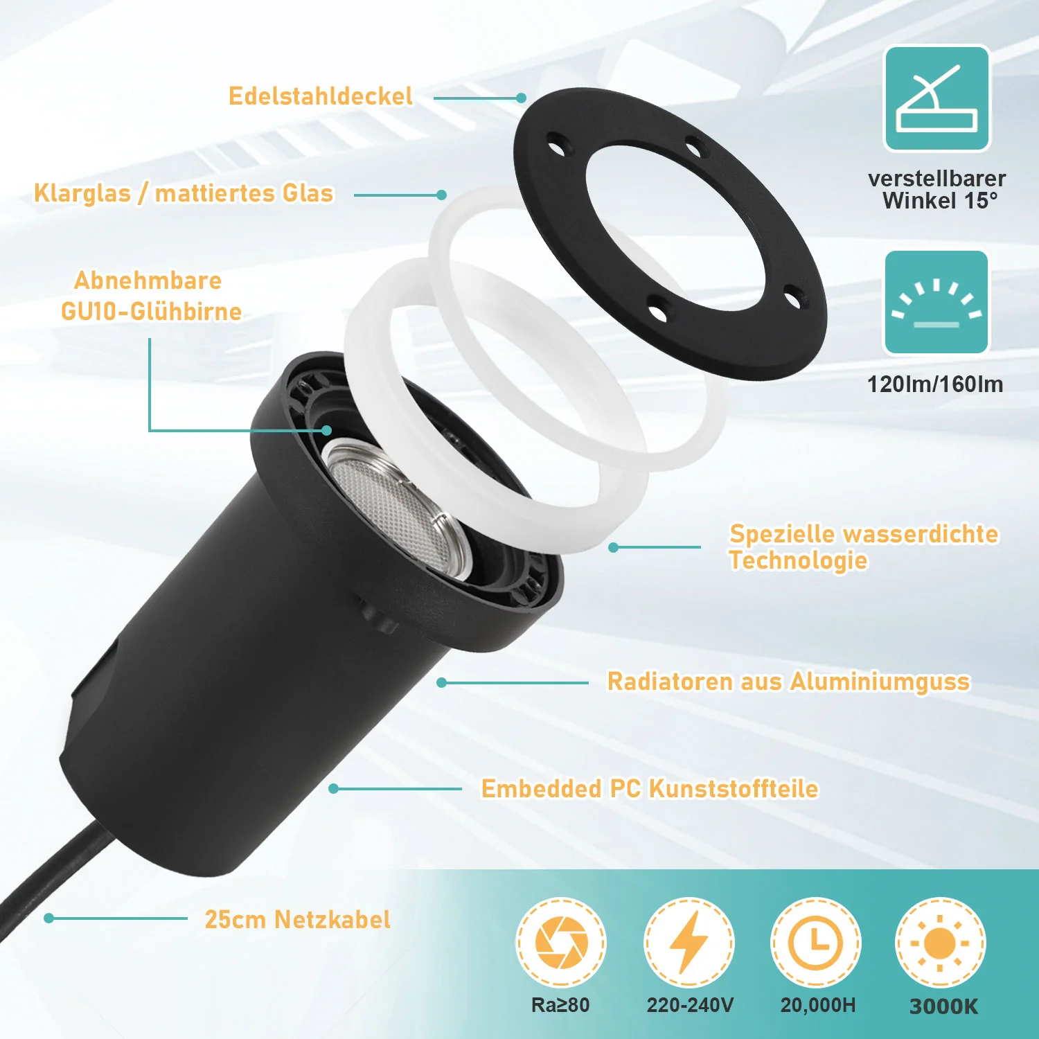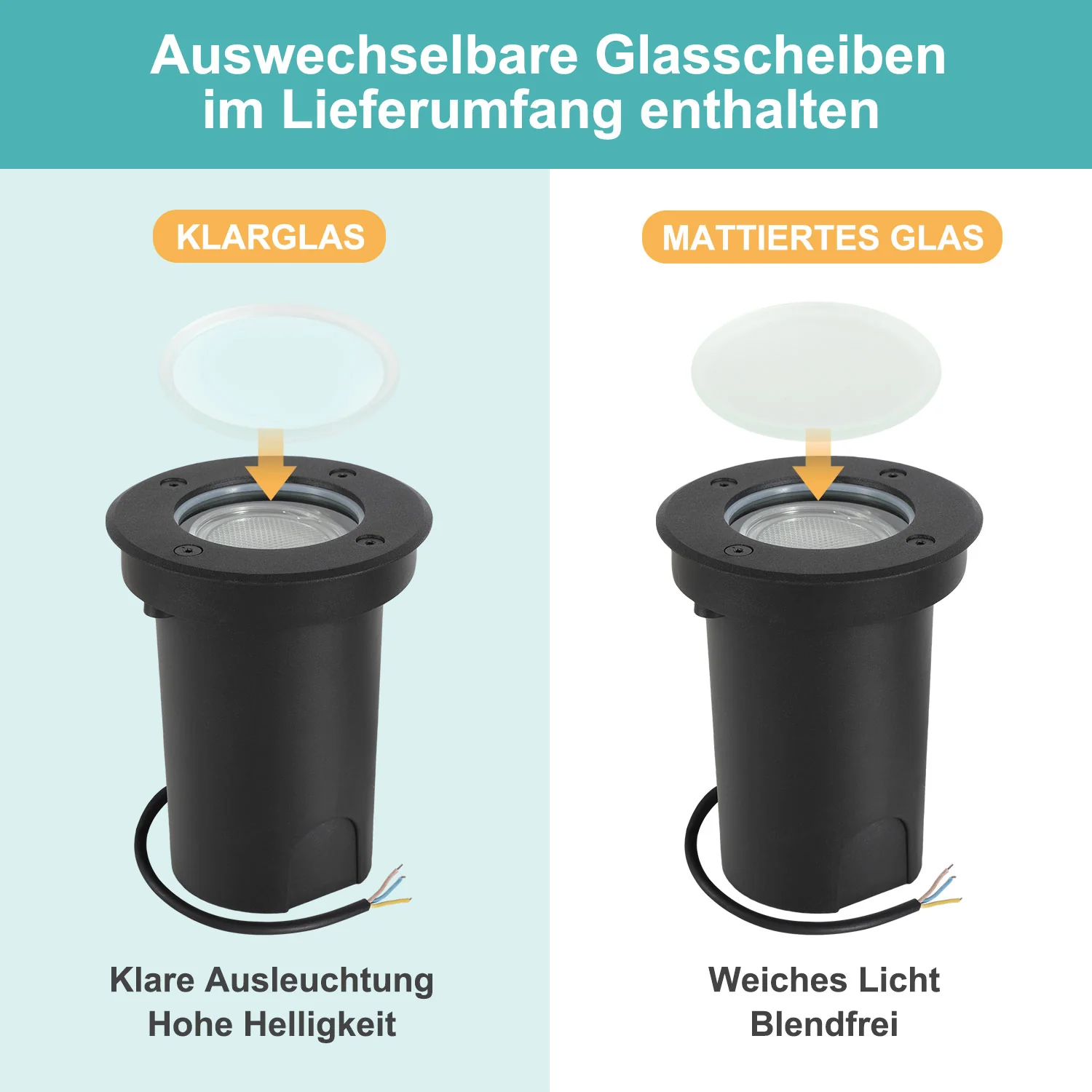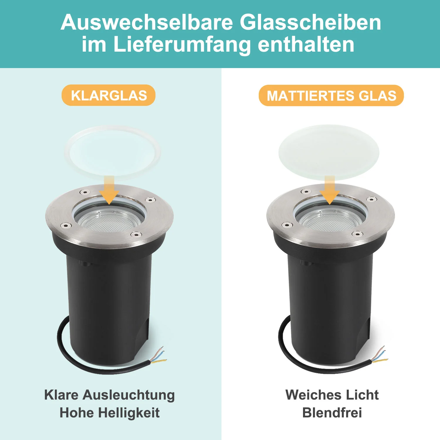 LED Bodeneinbaustrahler 3W Warmweiß mit Mattierten Ersatzlinsen