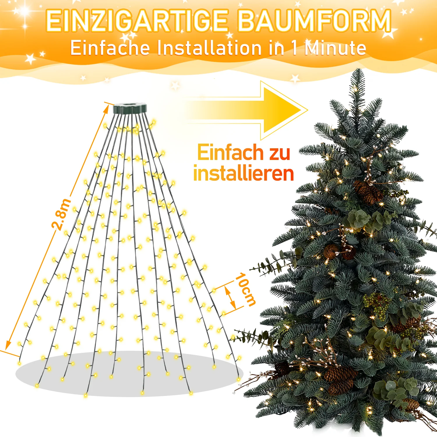 LED Christbaumbeleuchtung mit Ring 280 LEDs Warmweiß IP44