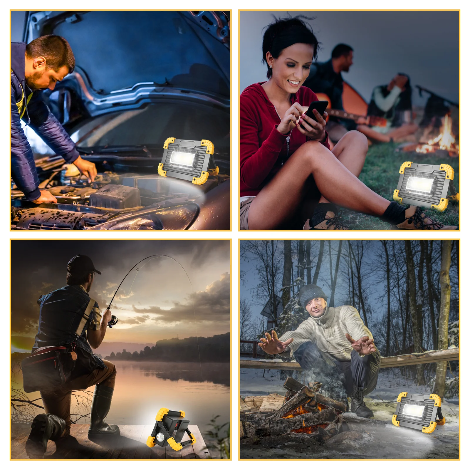 LED Baustrahler Akku 30W Kaltweiß mit USB Ausgang-Ports