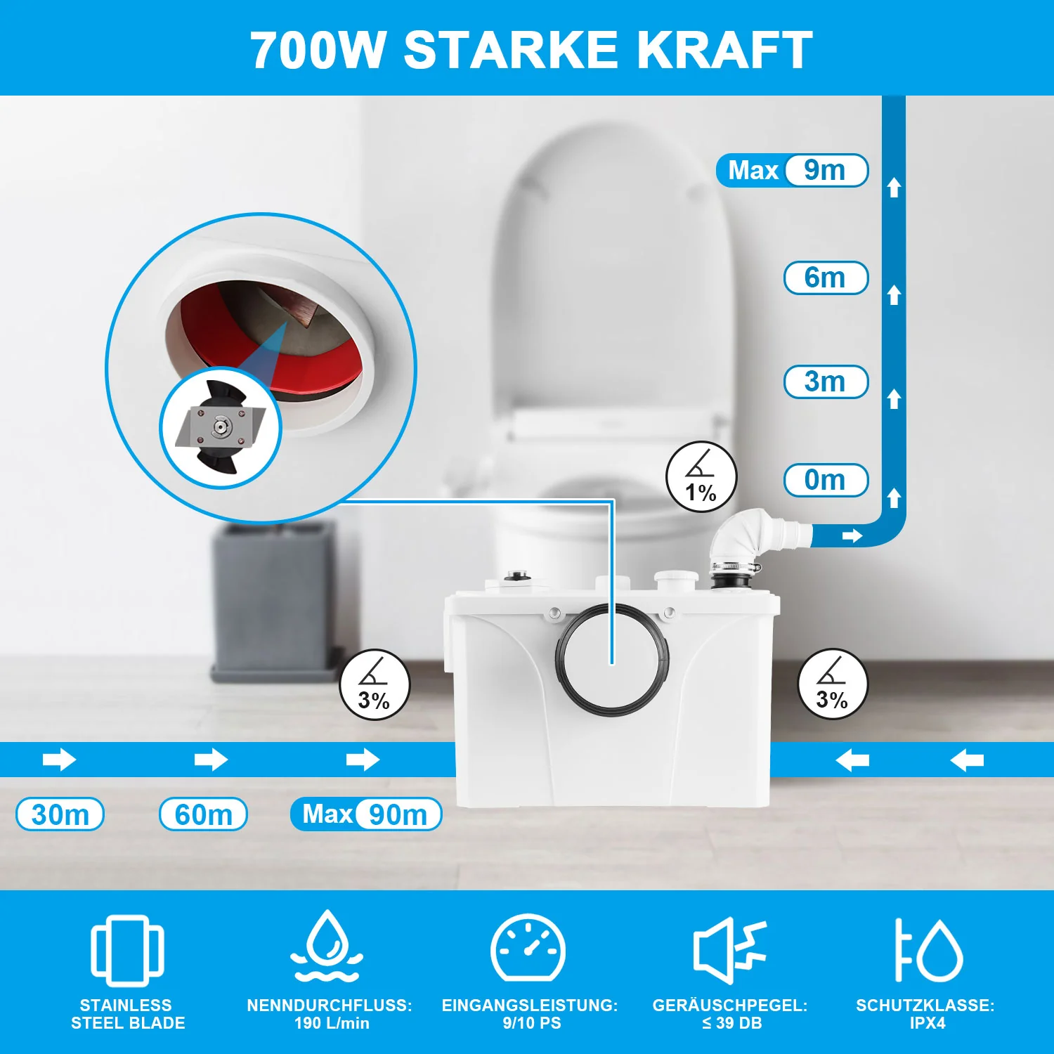 Hebeanlage Fäkalienpumpe 700W 190 L/min