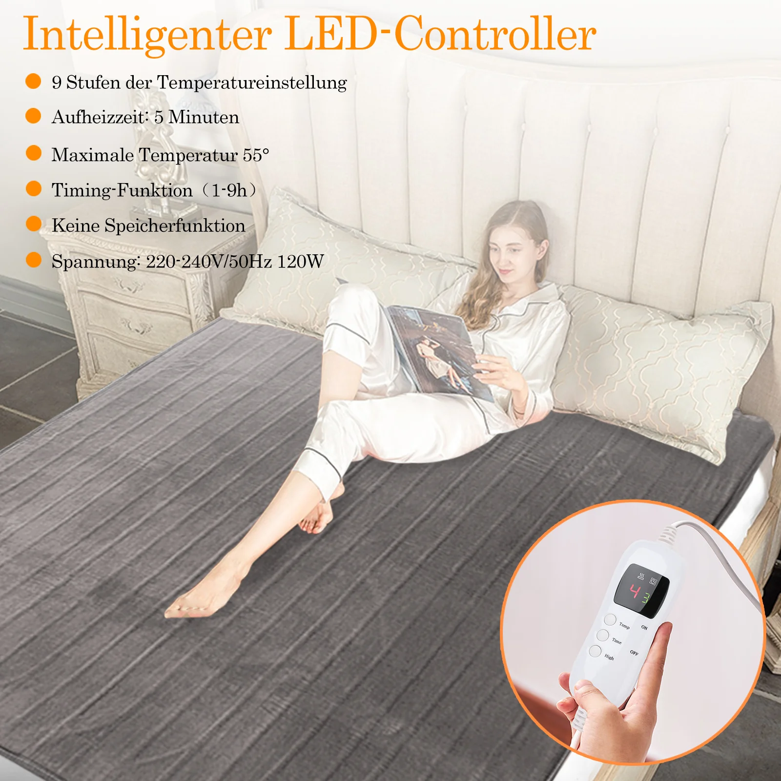 Heizdecke 9 Heizstufen und 9 Timingstufen