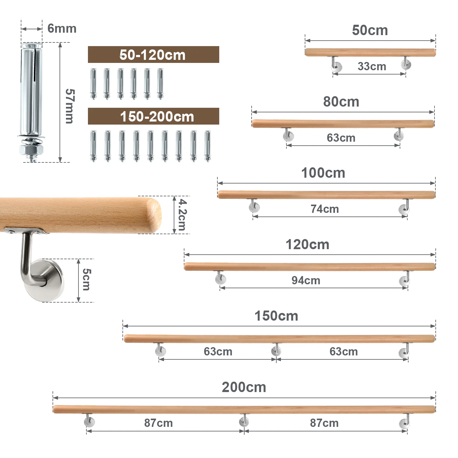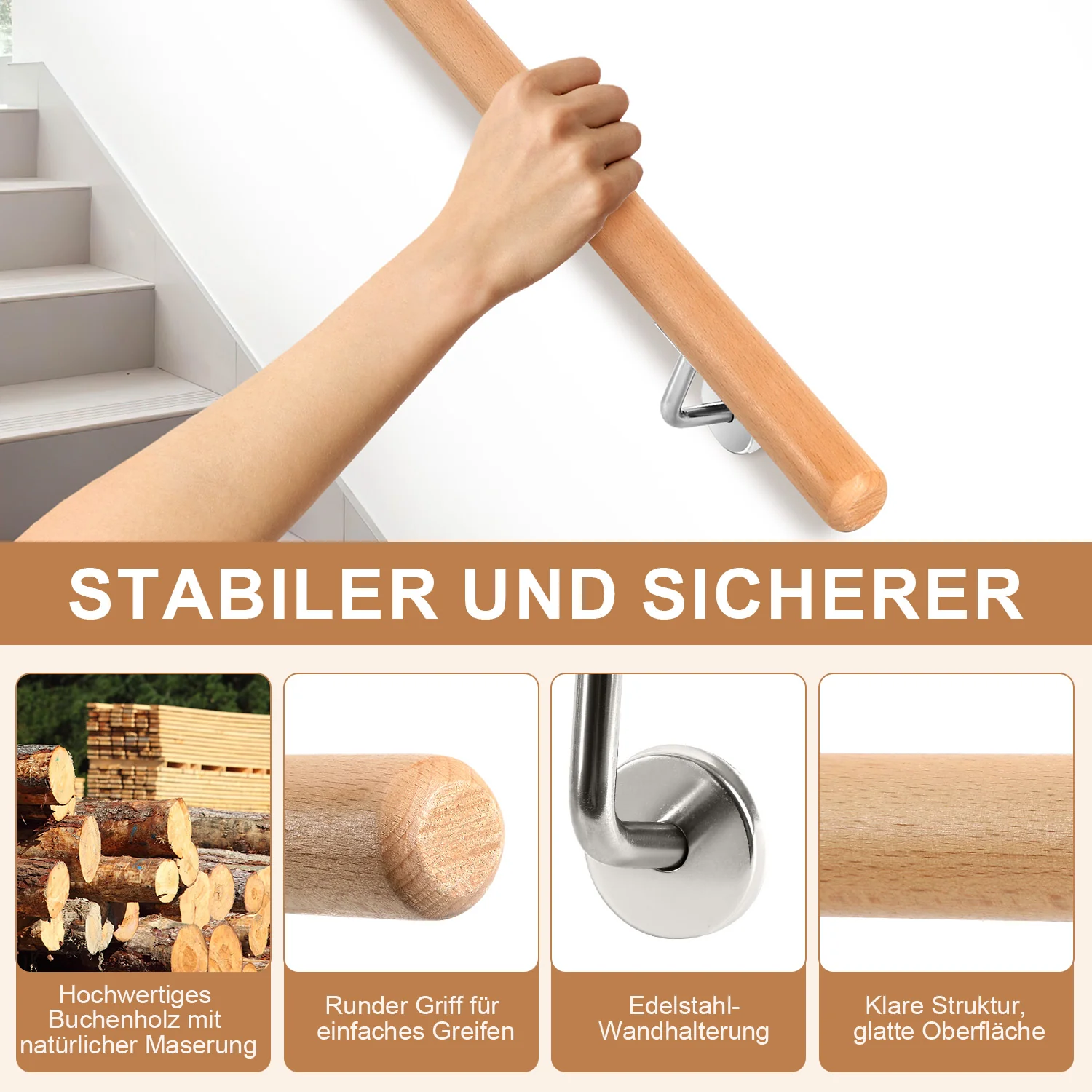 Handlauf Geländer Buche Holz 50- 200cm