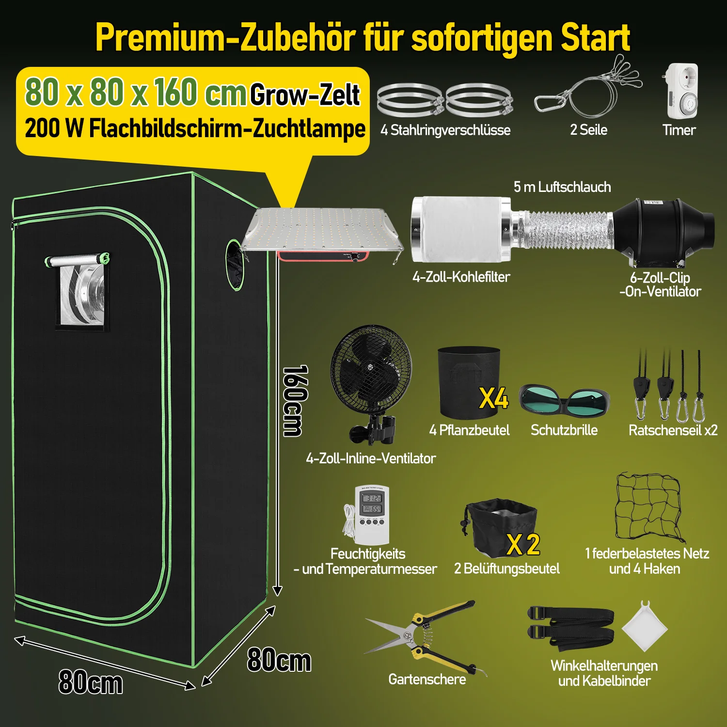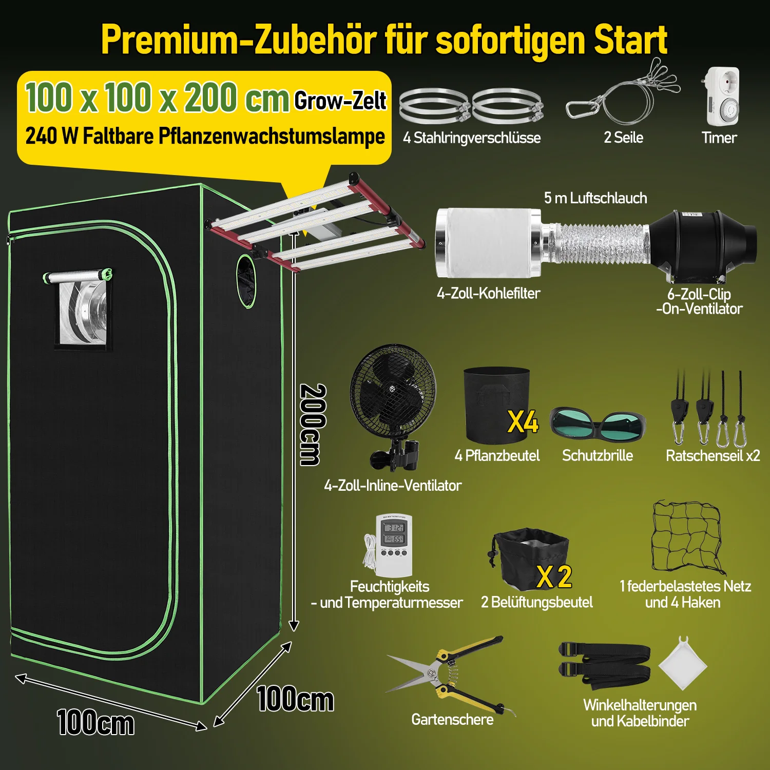 Growzelt Growbox Komplettset Vollspektrum