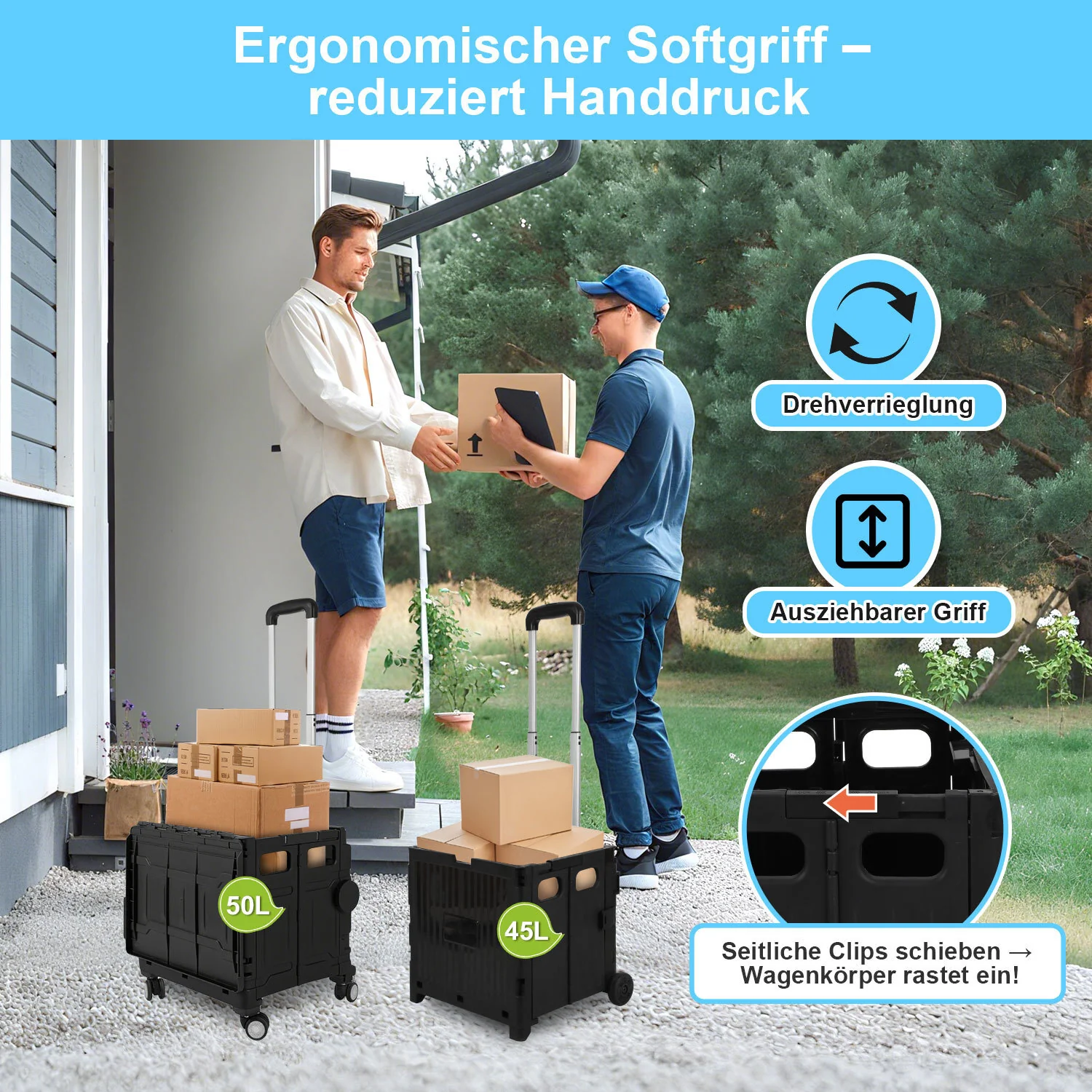 Klappbarer Einkaufswagen 45L/50L mit Deckel