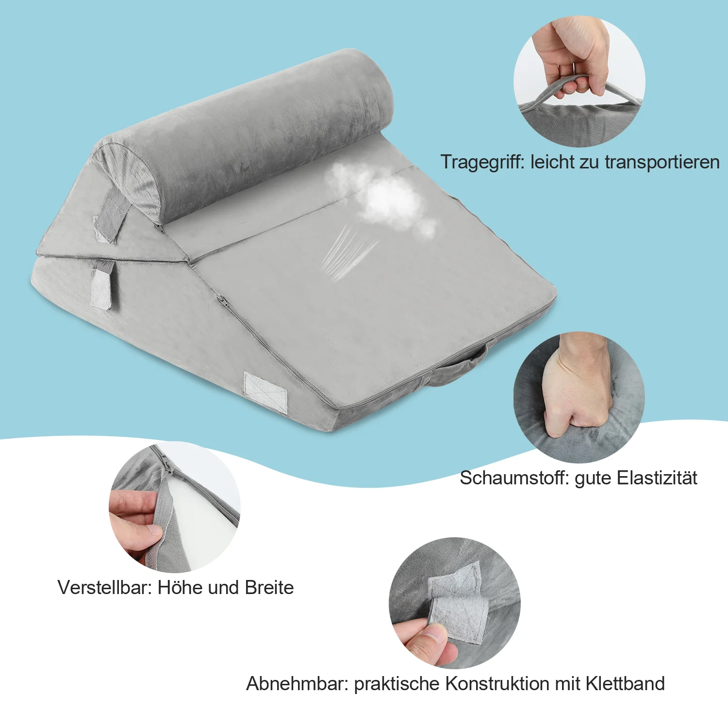 Keilkissen Bett Kopfteil mit Abnehmbare Nackenrolle