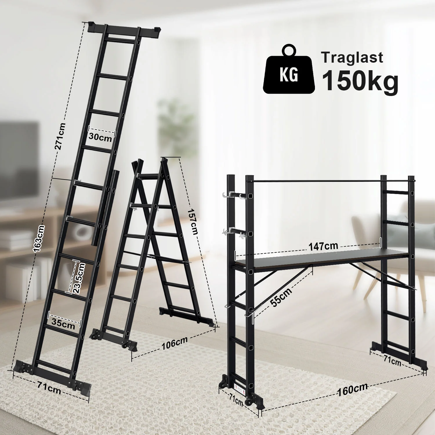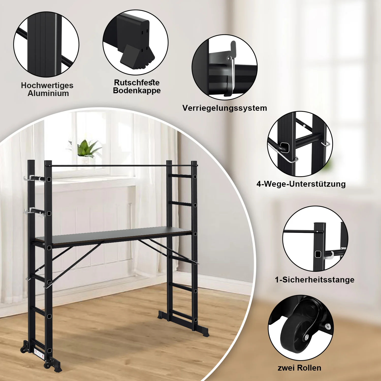 Gerüst 4 in 1 Alu Multifunktionsleiter 6+6 Stufen