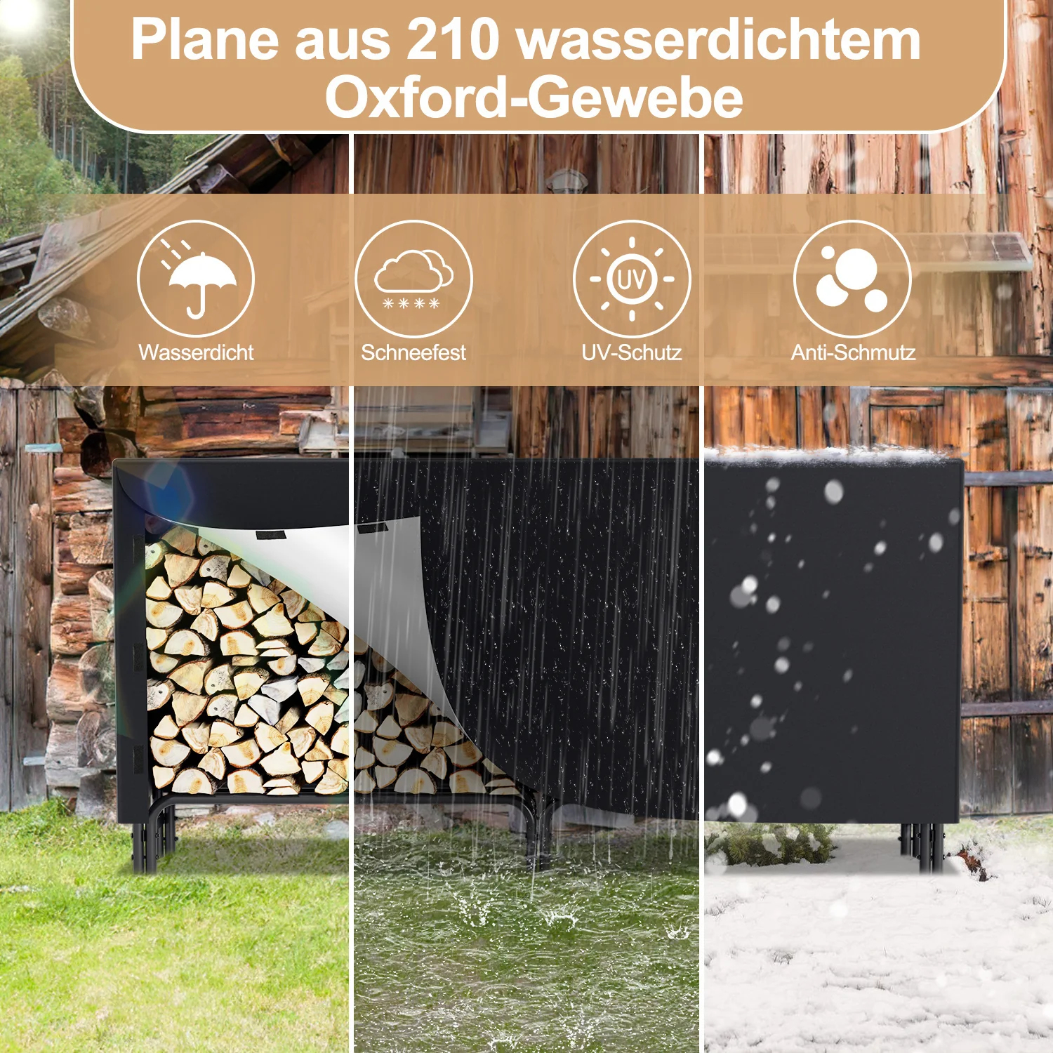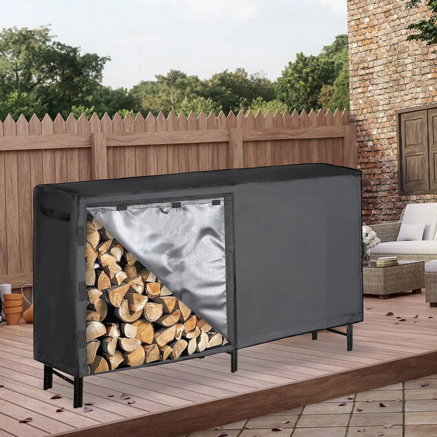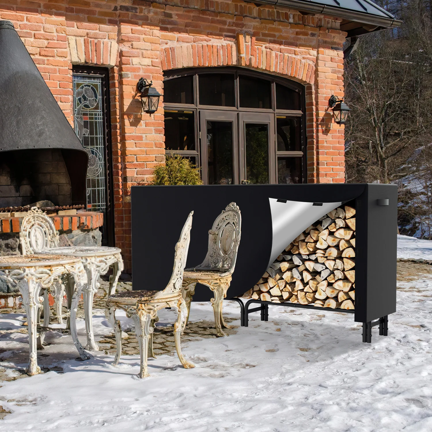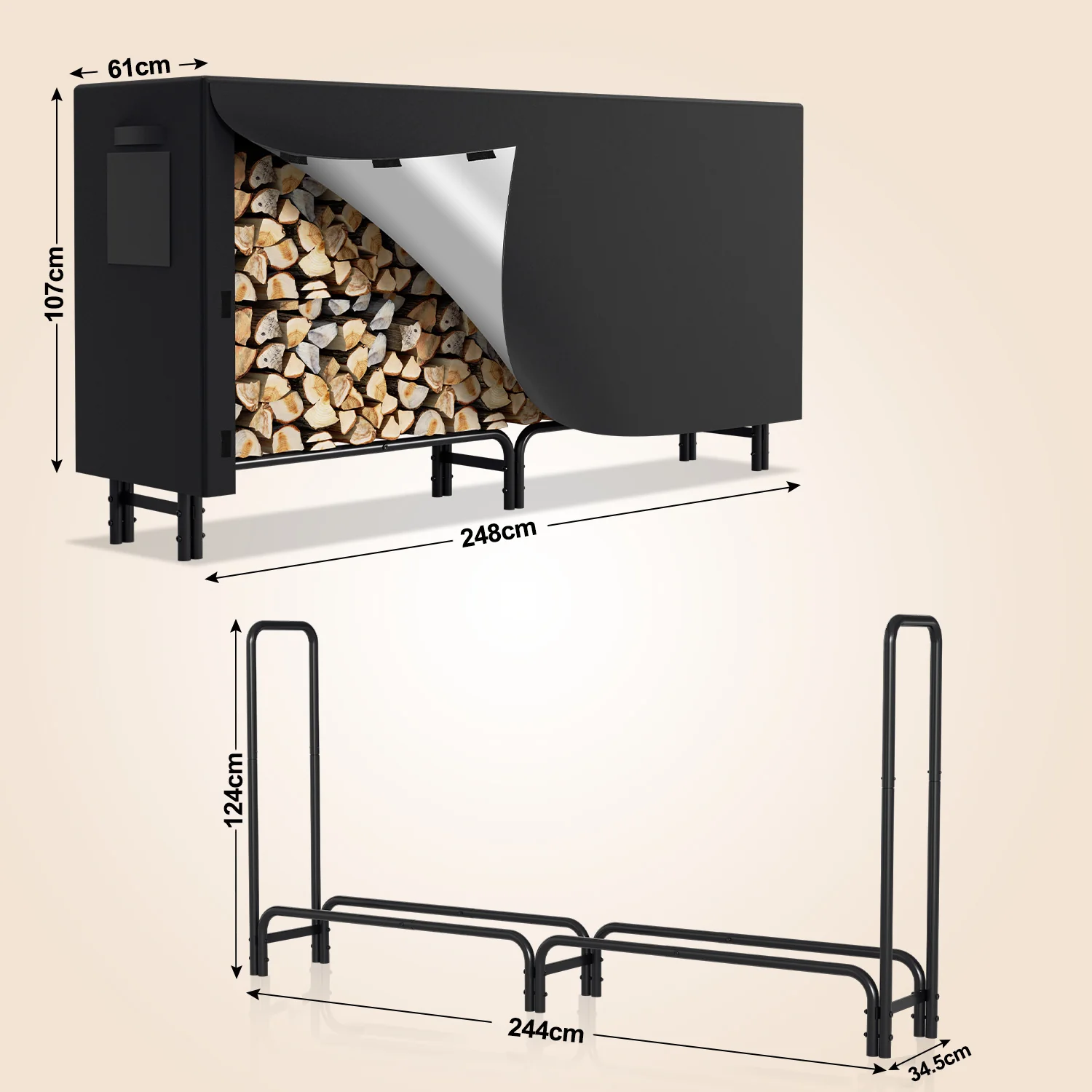 Kaminholzregal Metall 244x34.5x124cm mit Schutzhülle