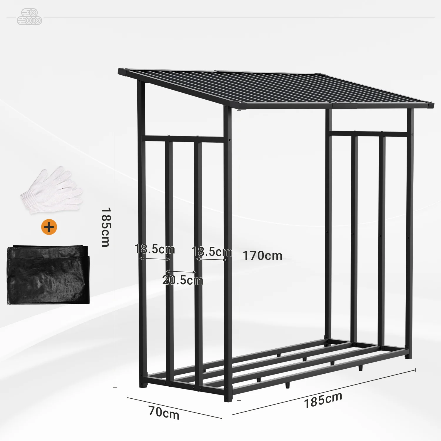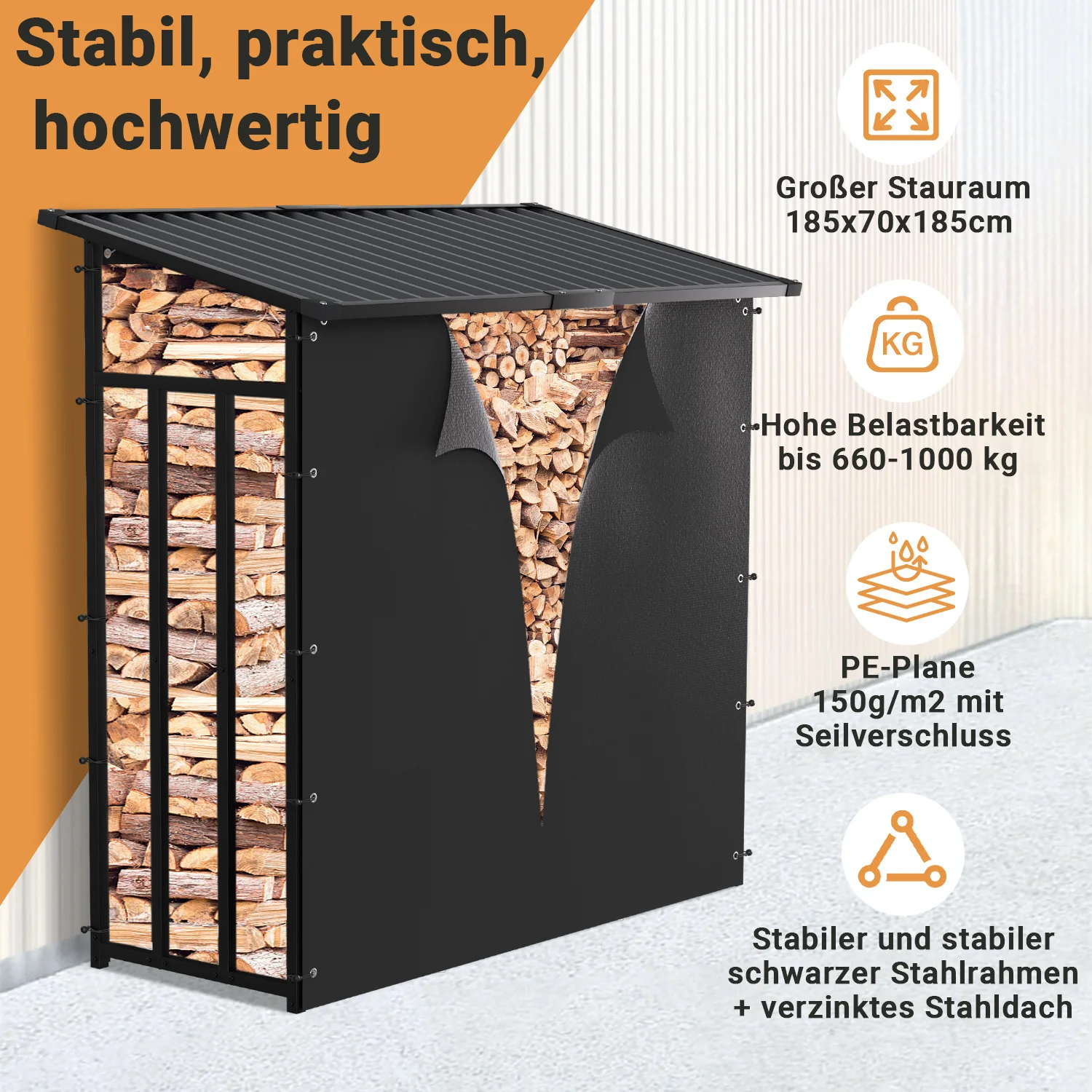 Kaminholzregal Brennholzregal Metall 185x70x185cm mit Dach
