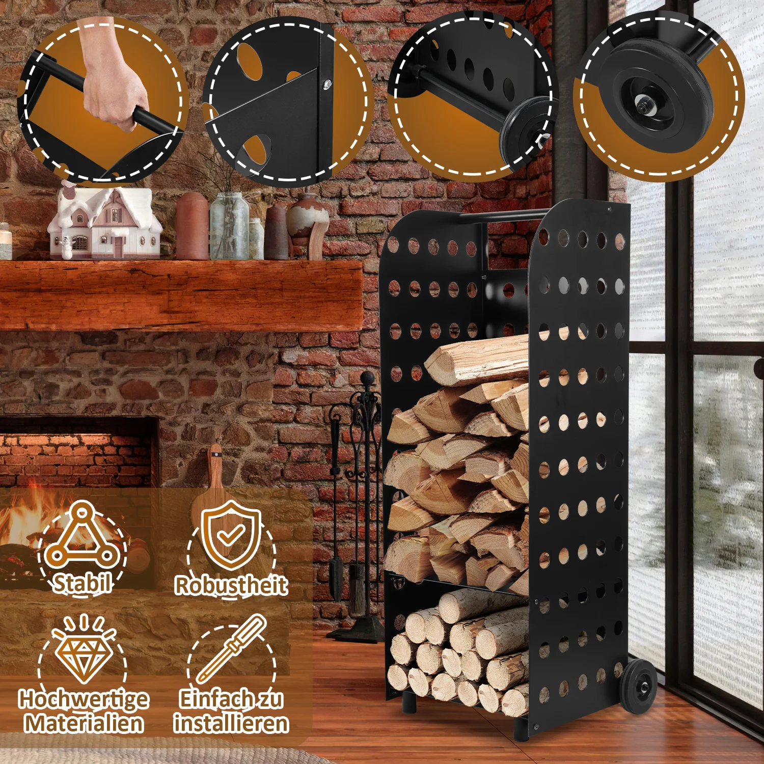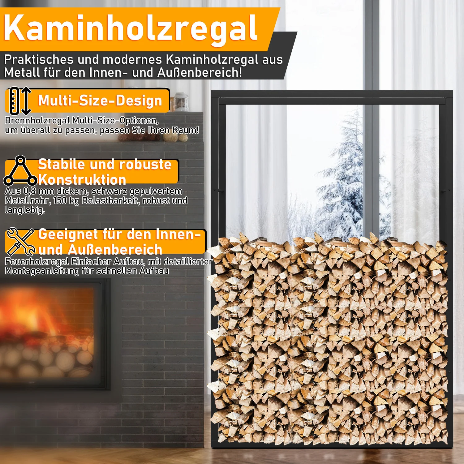 Kaminholzregal Metall Kaminholzständer Wandmontage