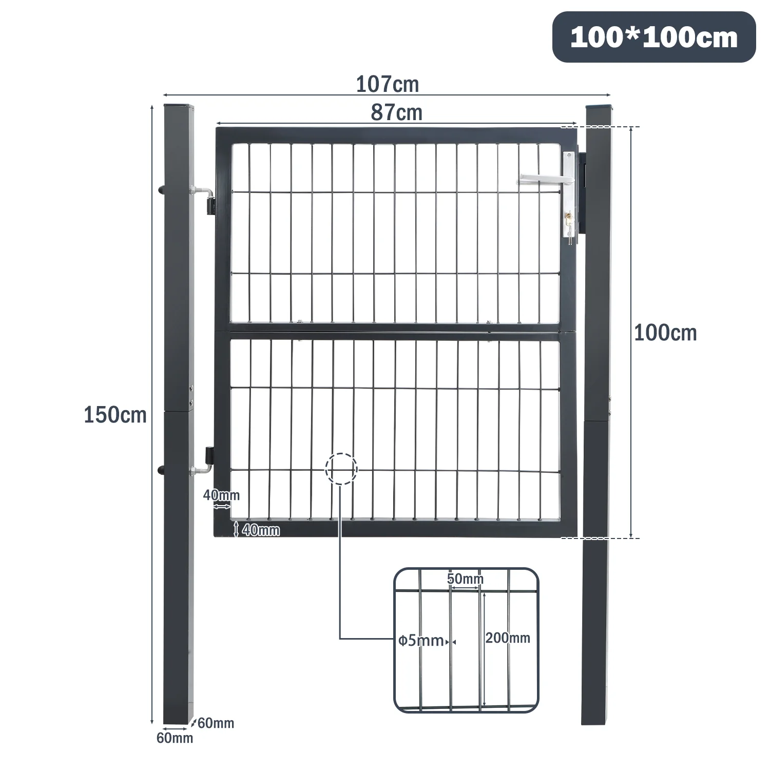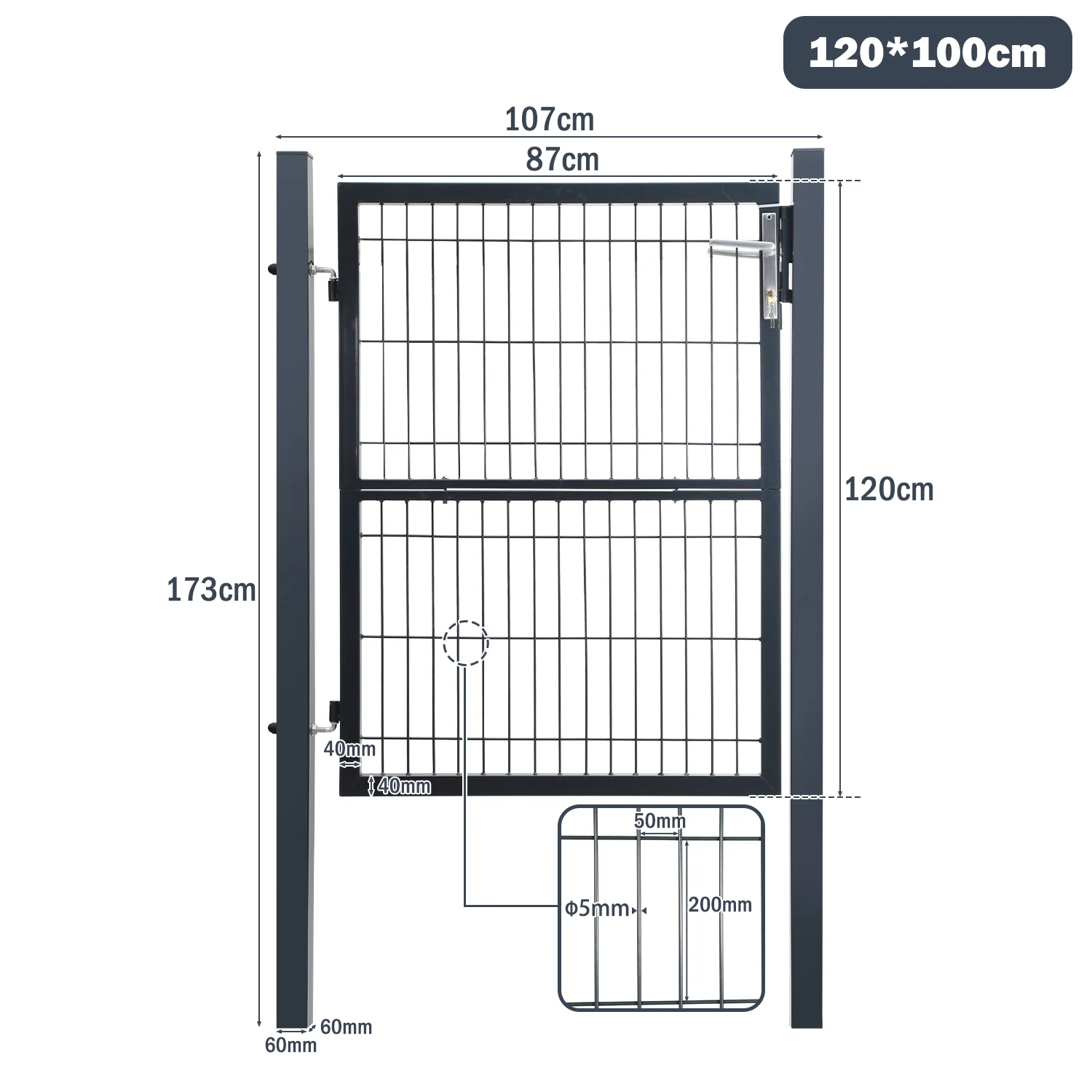 Gartentor Gartentür Anthrazit Inkl. Schloss