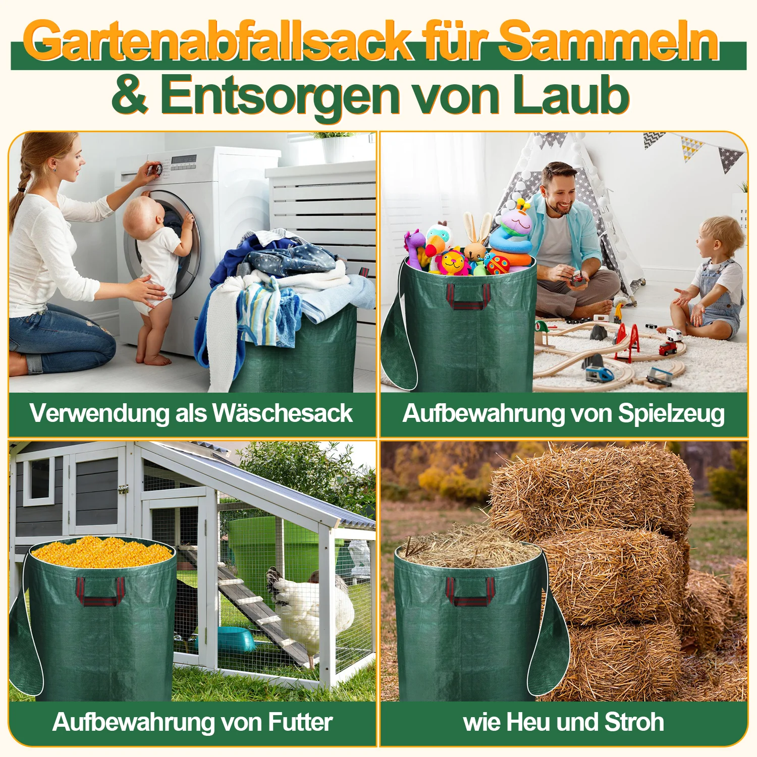 Gartenabfallsack Gartensack 272L mit Deckel