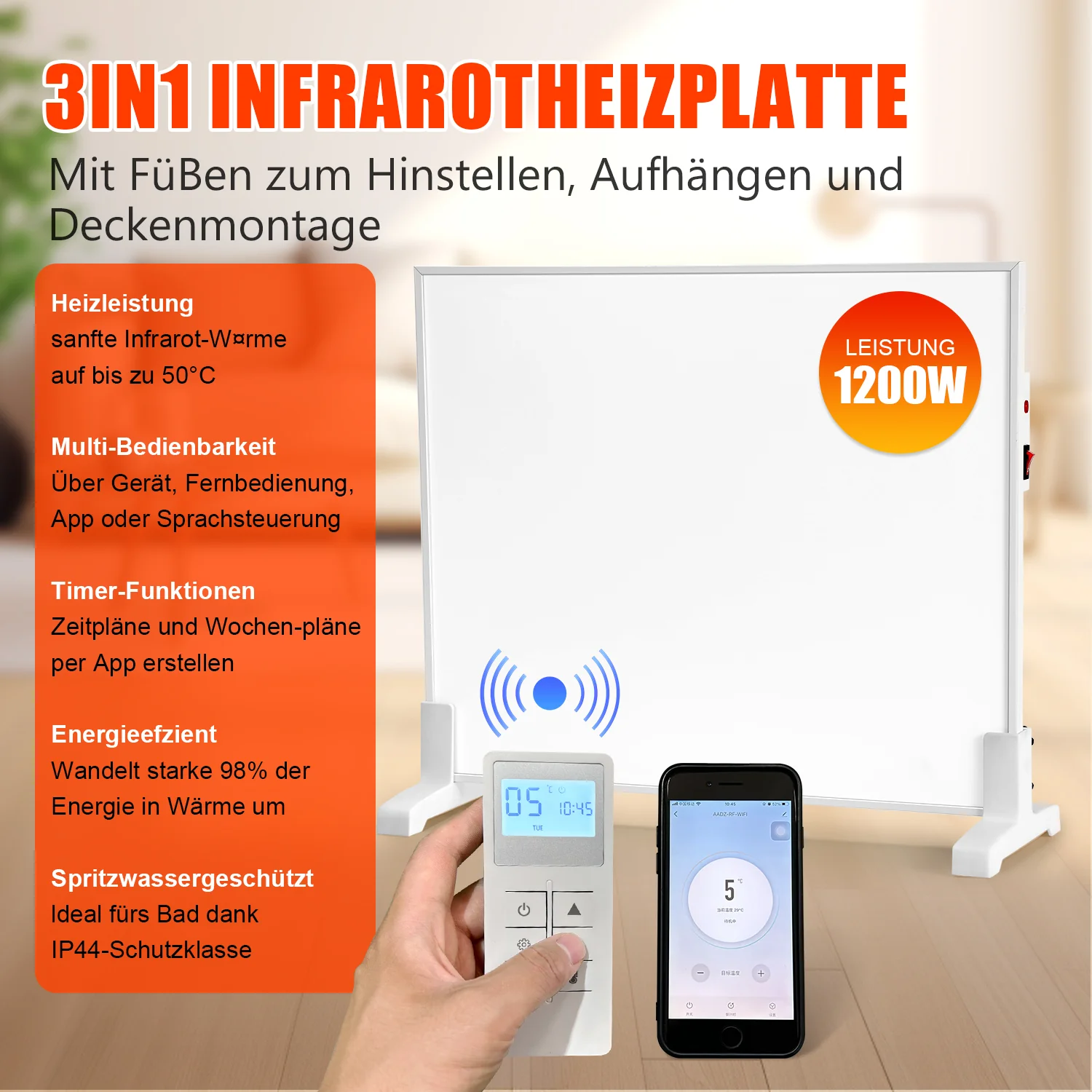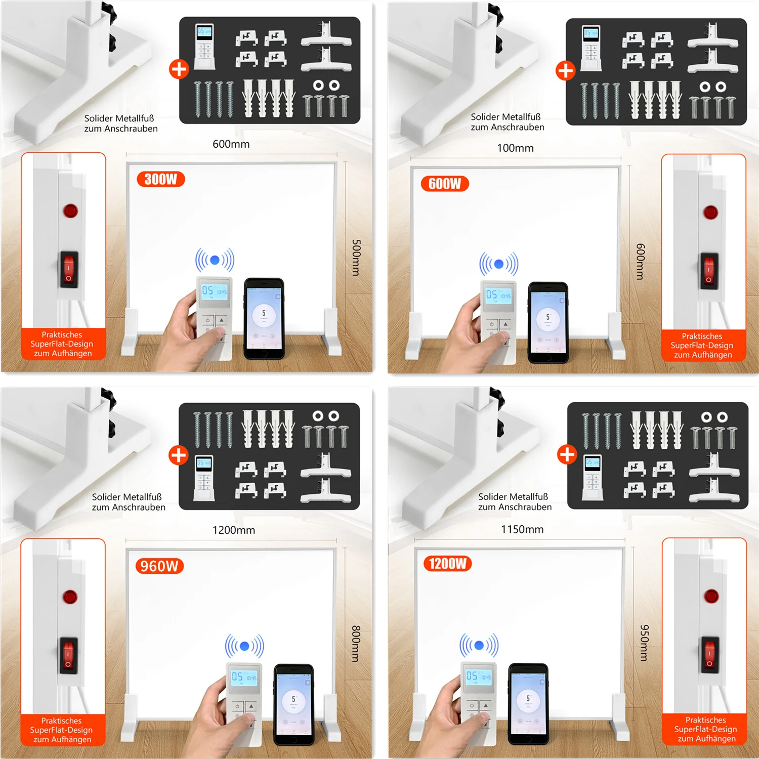 Infrarotheizung Thermostat APP Fernbedienung 300-1200 W