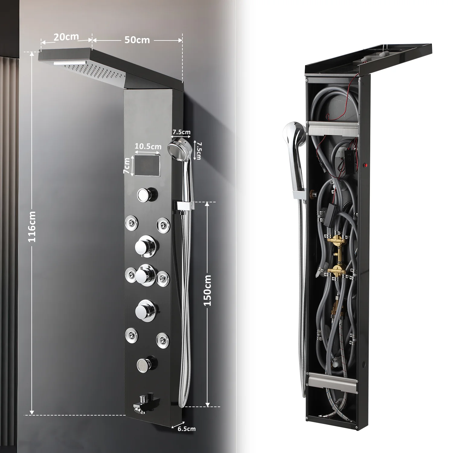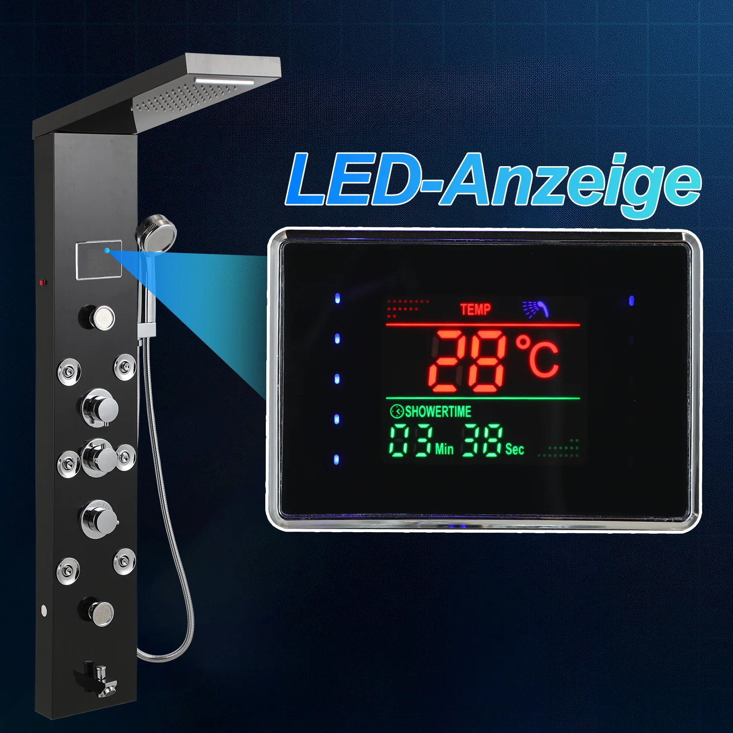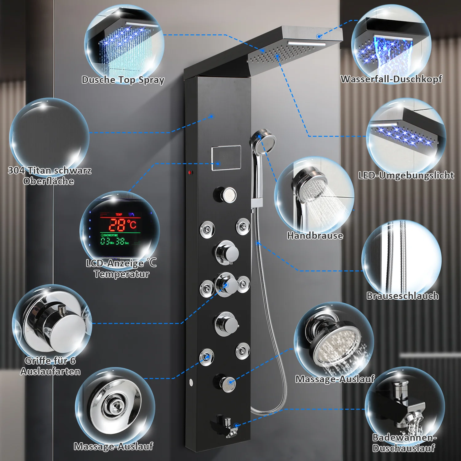 Duschpaneel Wandduschpaneel 5 Funktionen Edelstahl Schwarz
