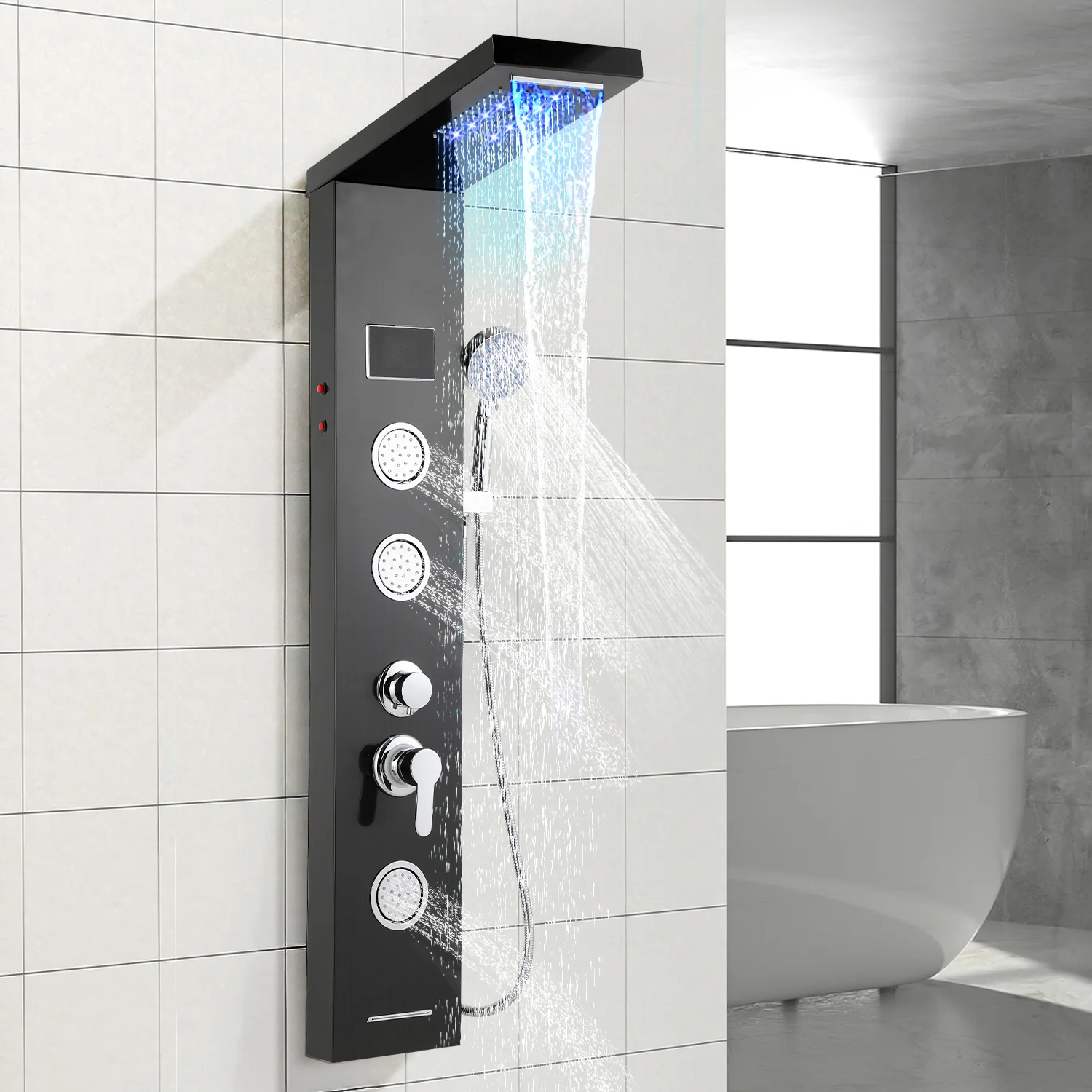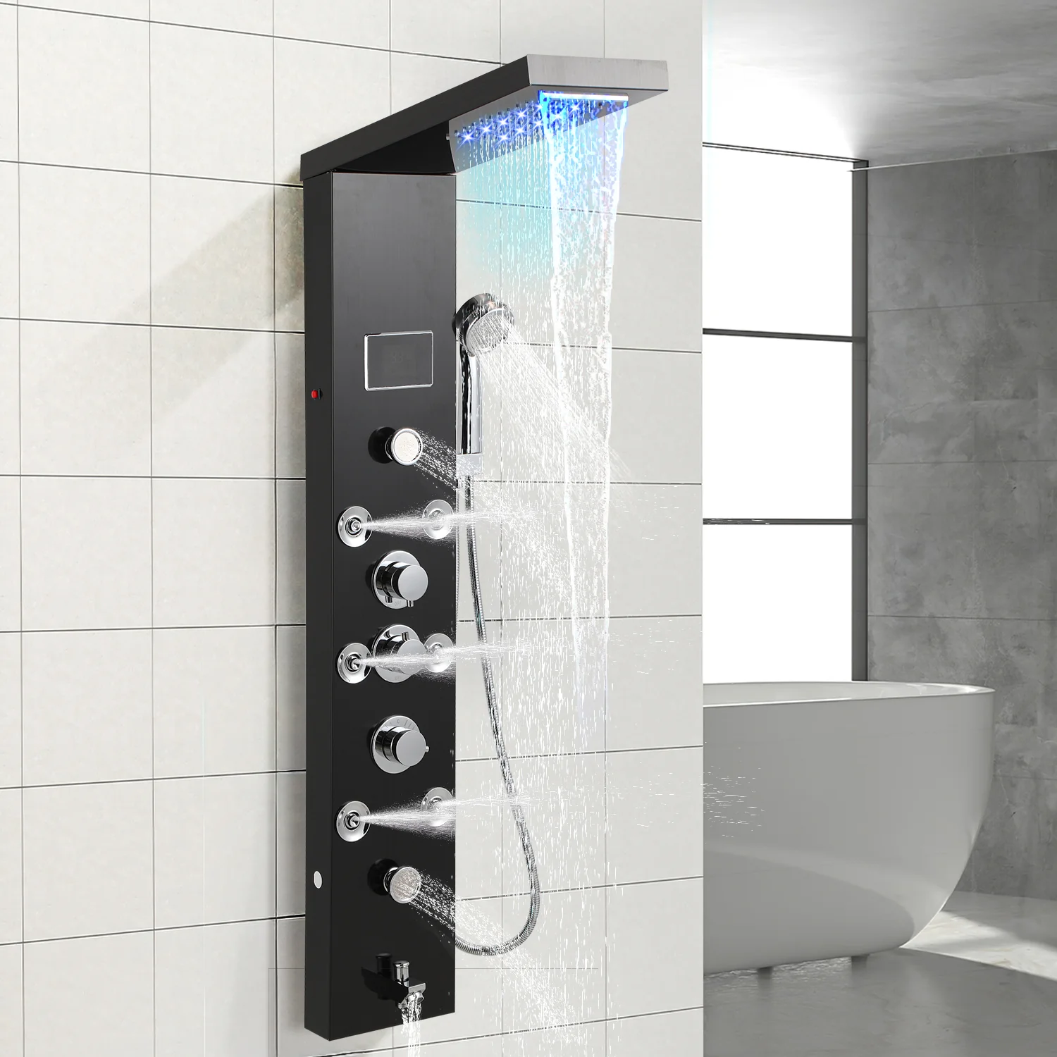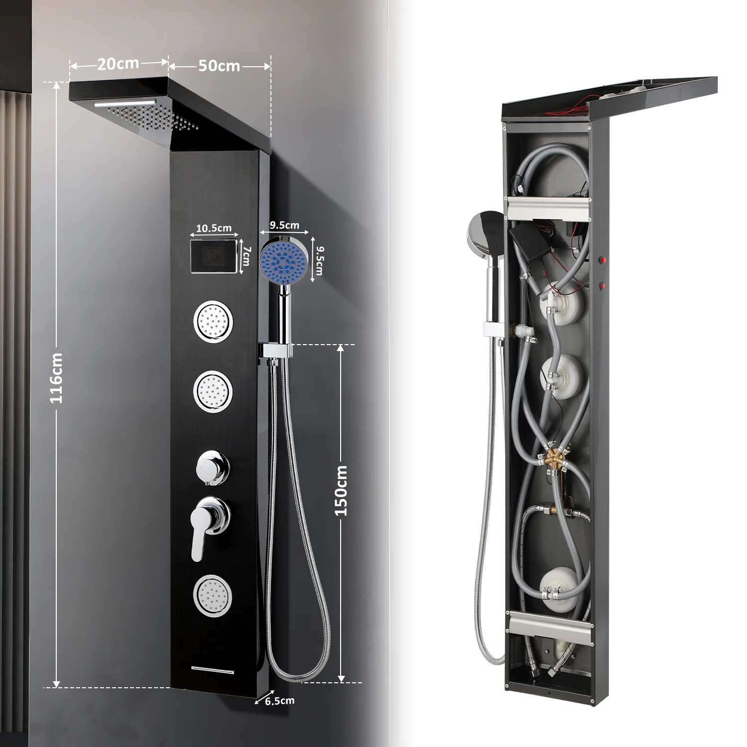 Duschpaneel Wandduschpaneel 5 Funktionen Edelstahl Schwarz