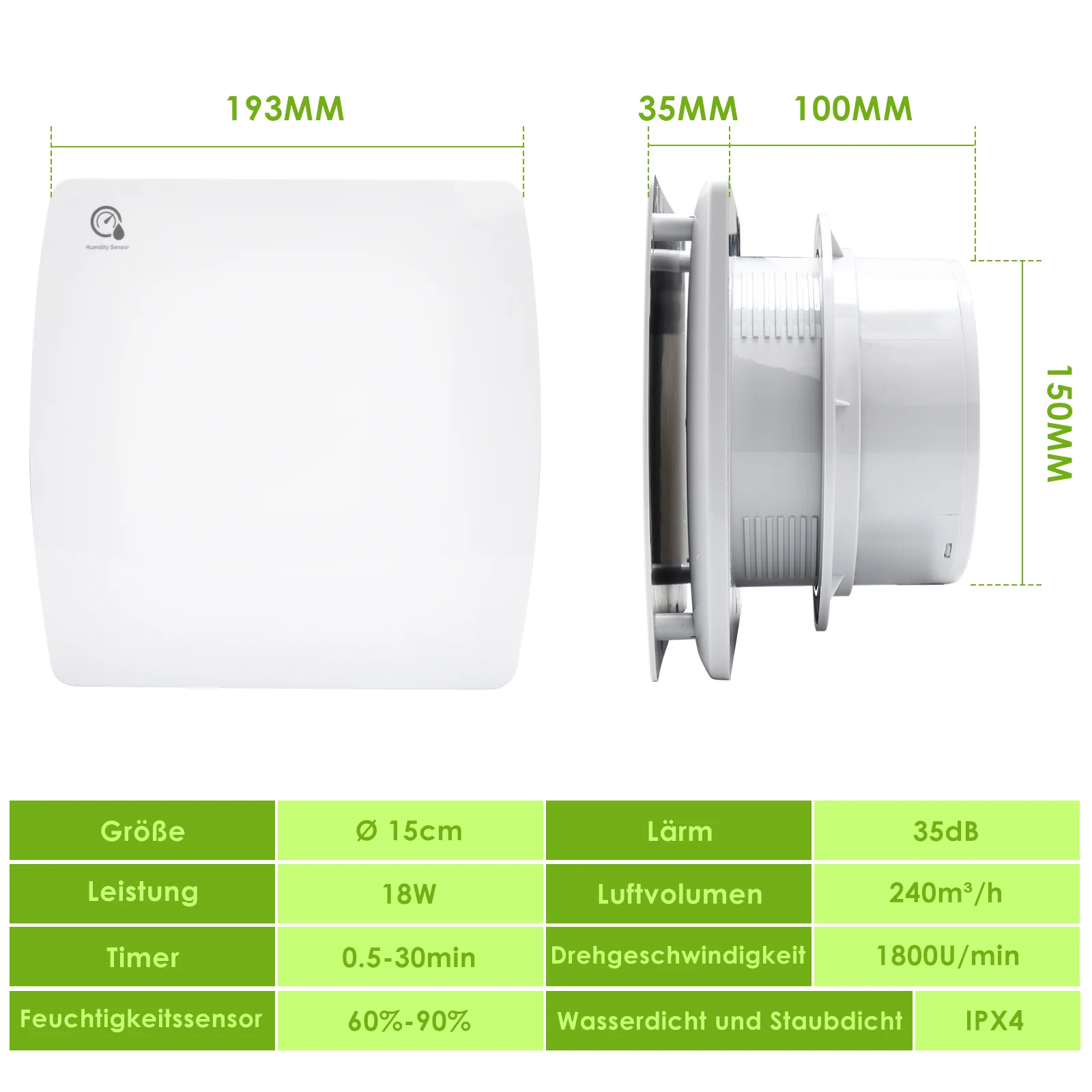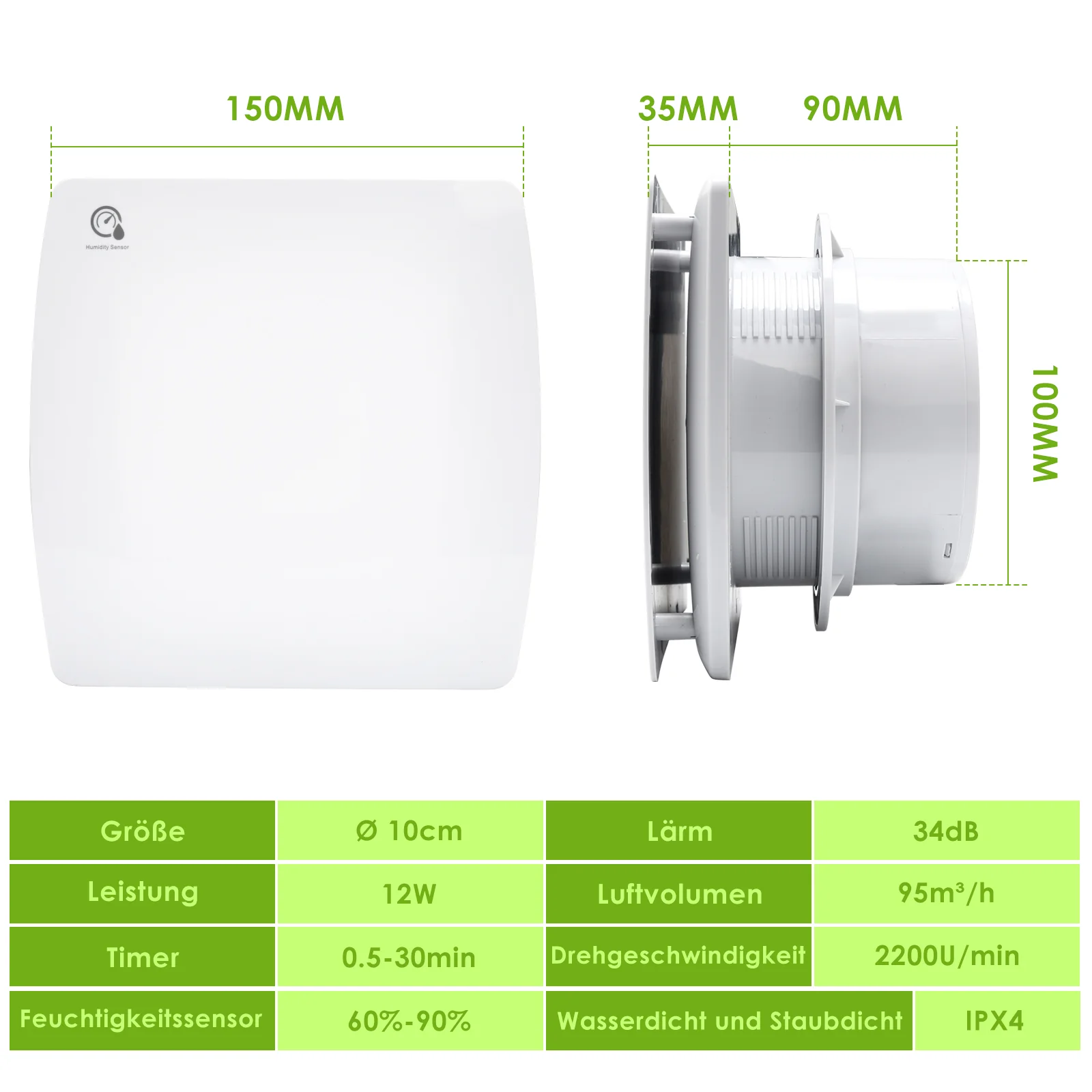 Badlüfter Abluftventilator mit Feuchtigkeitssensor Ø100mm Ø150mm