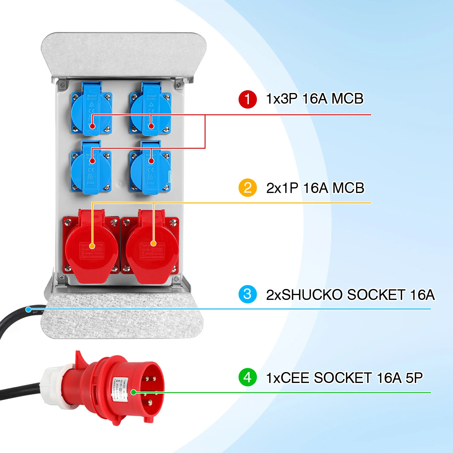 Baustromverteiler CEE 2 x 16A 400V+4x 230V 5 Polig