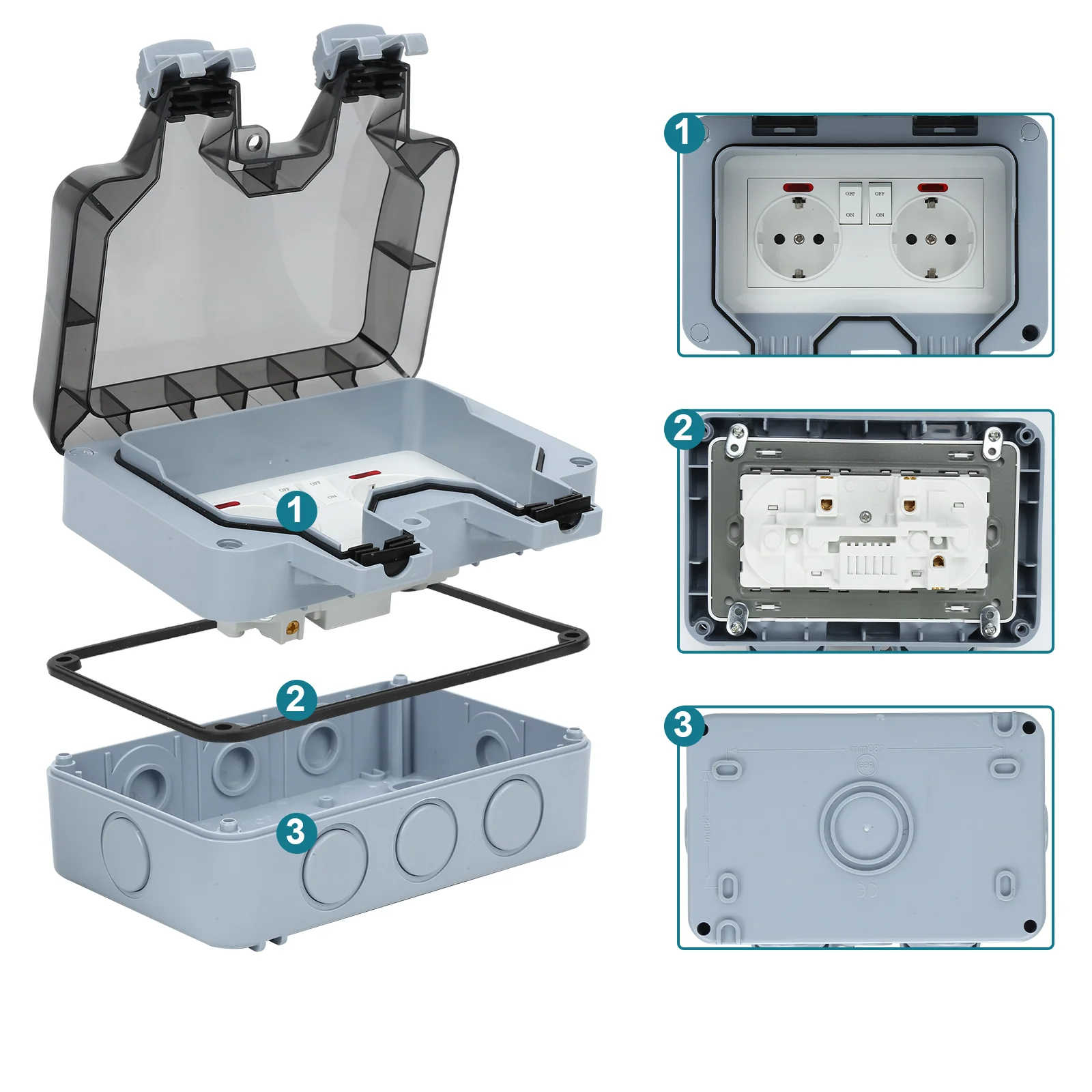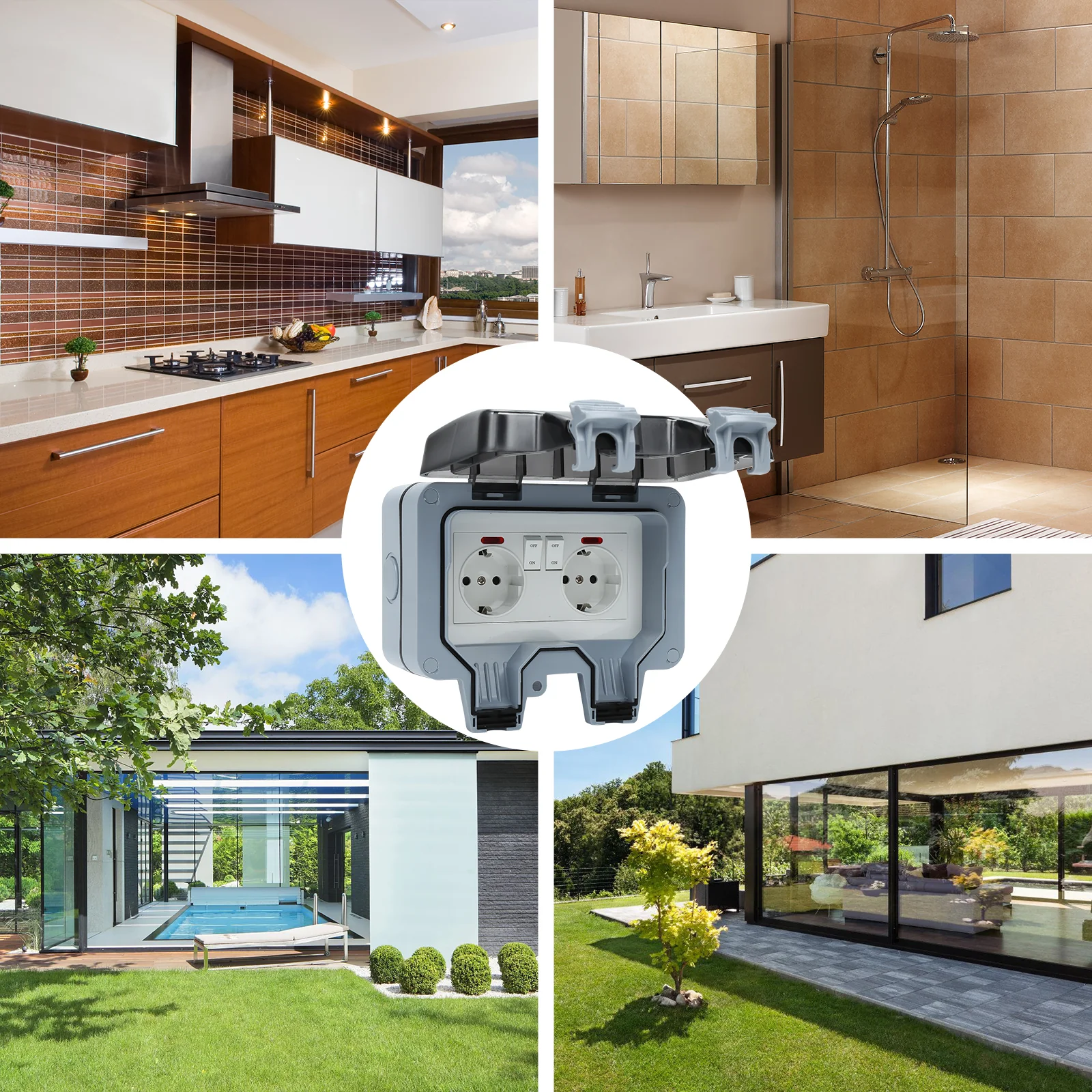Außensteckdose Wasserdicht Doppelsteckdose IP66