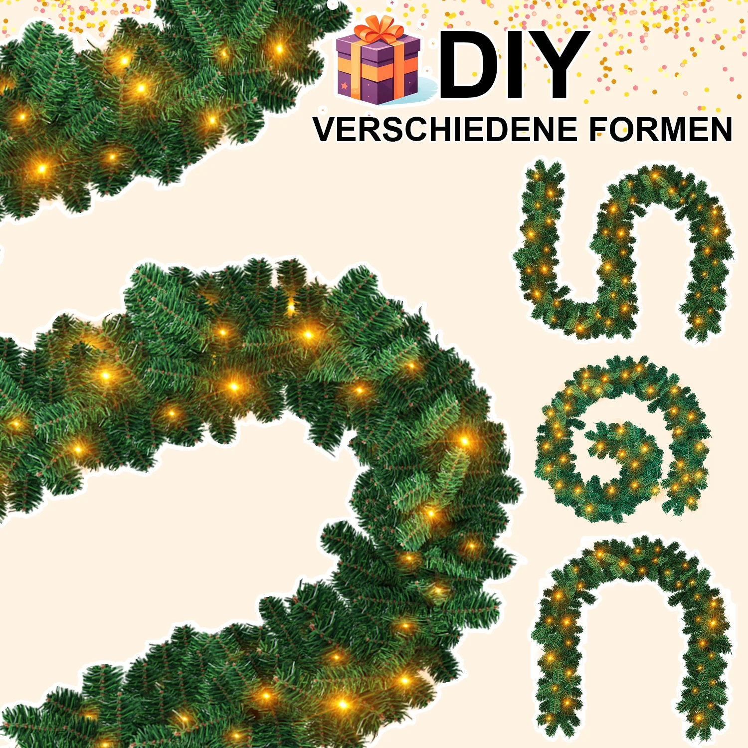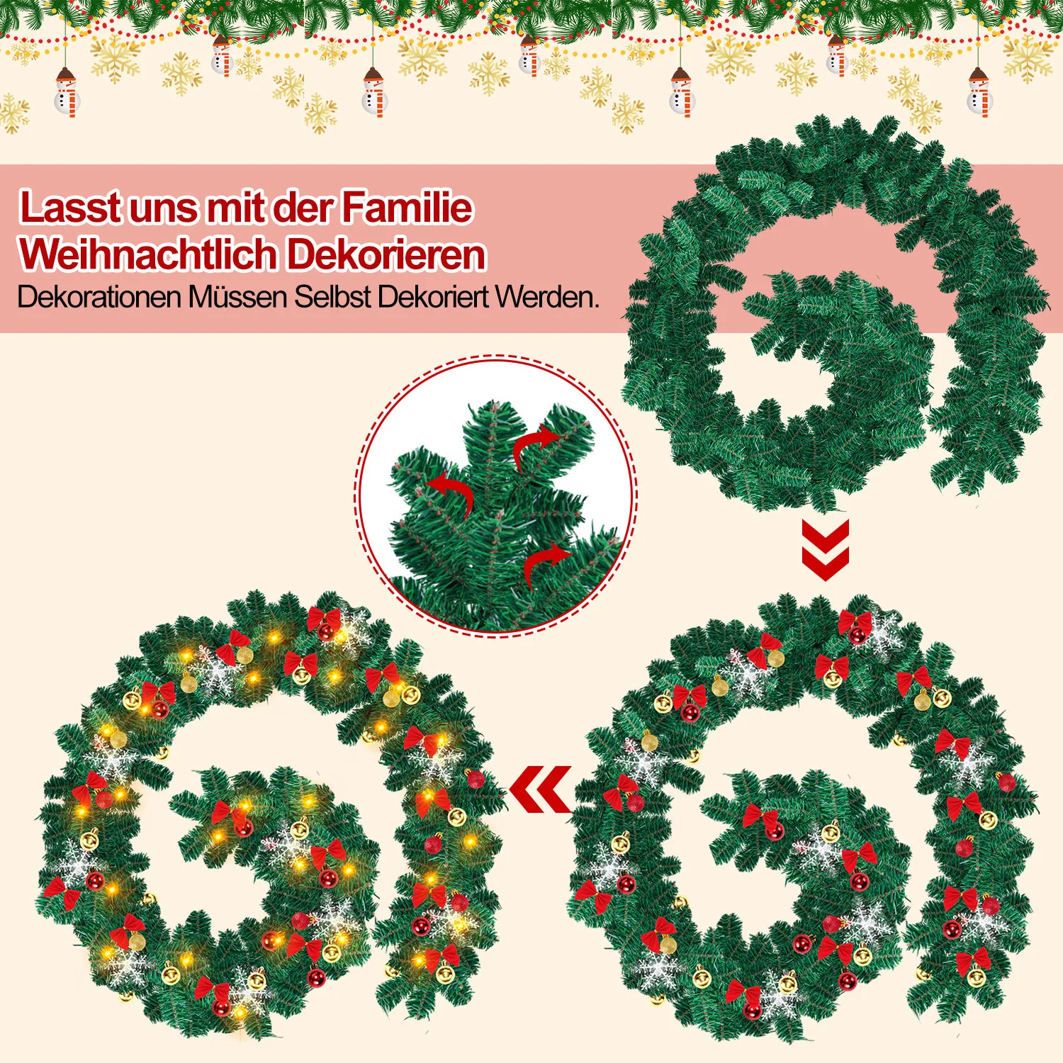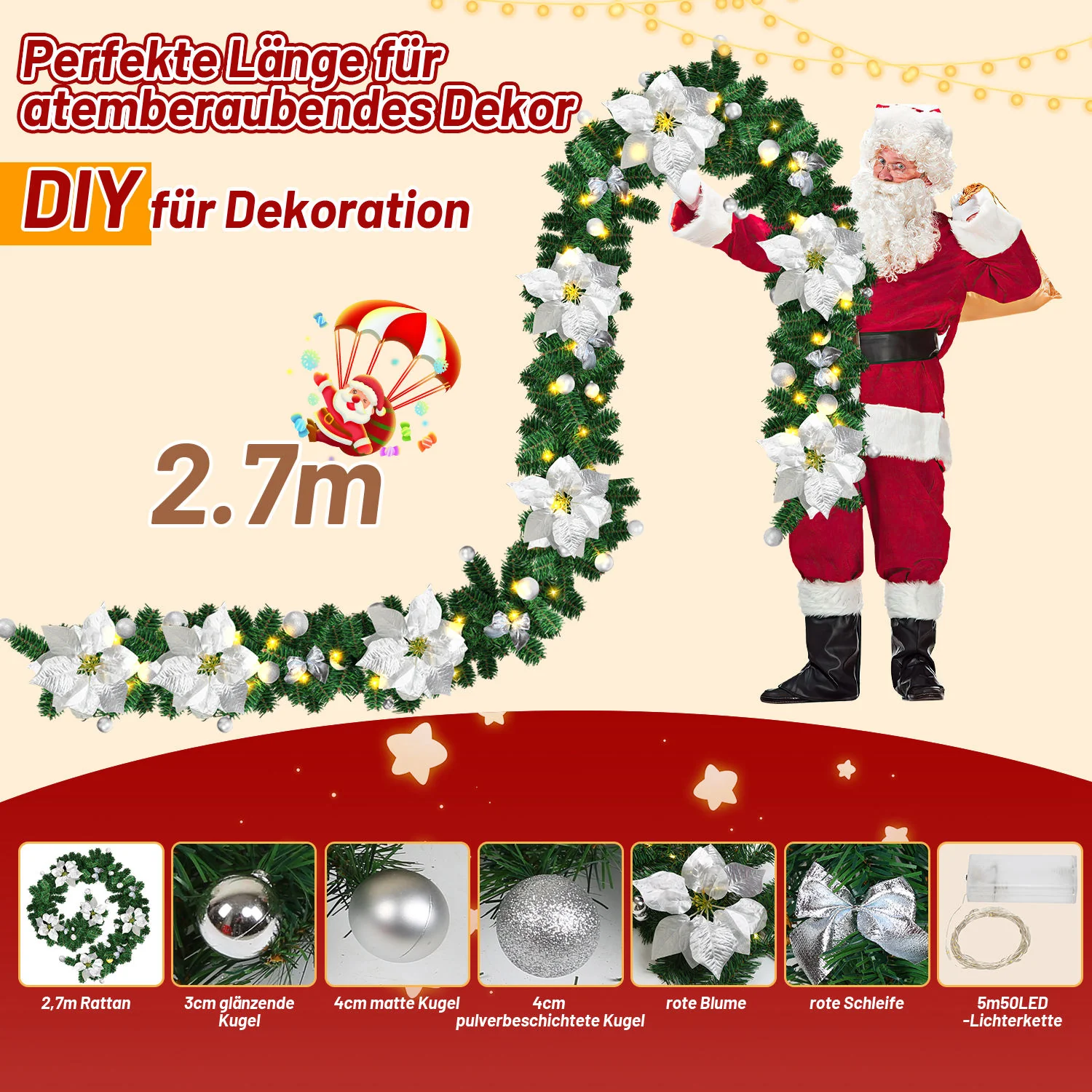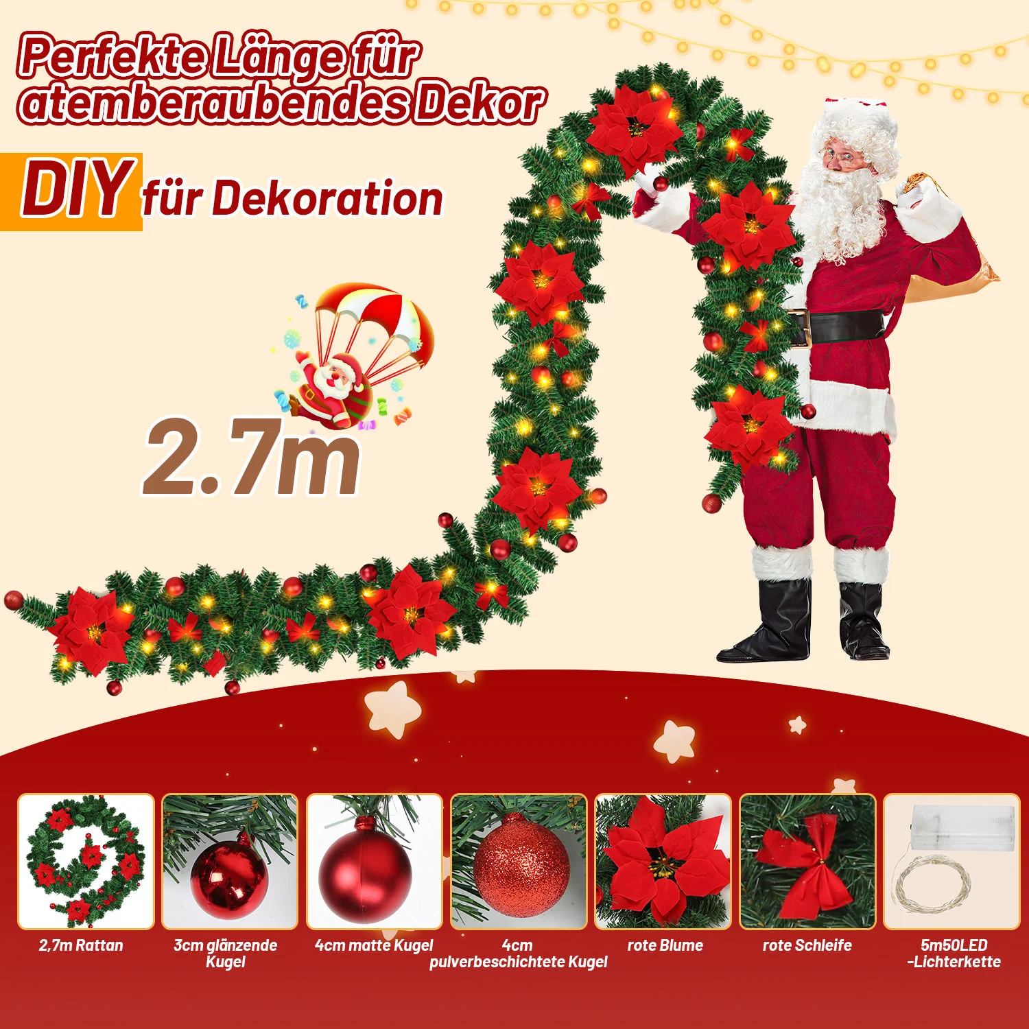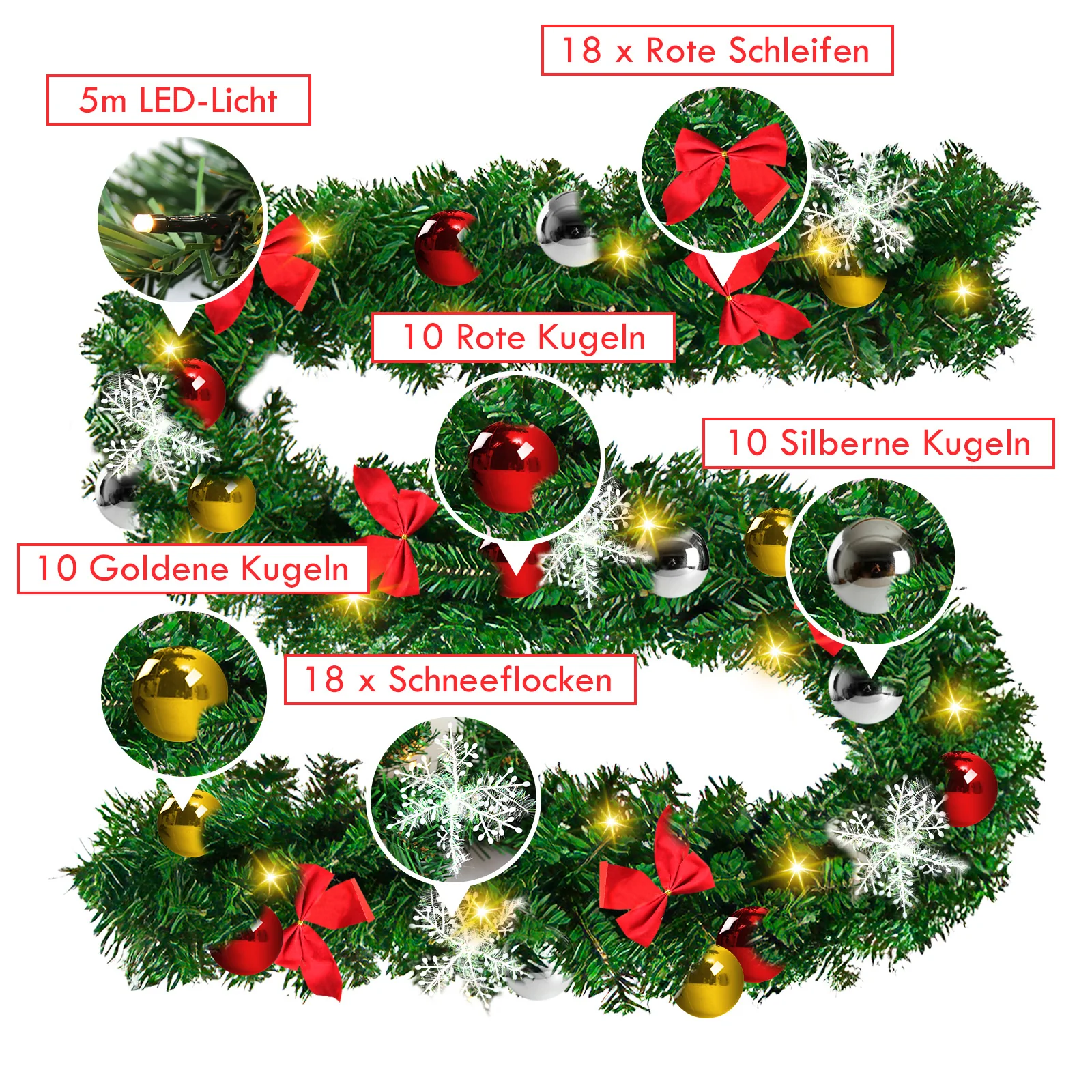 Weihnachtsgirlande mit Beleuchtung und Deko, USB 2,7 m/5 m