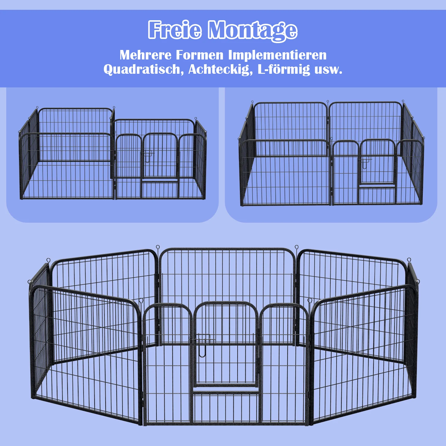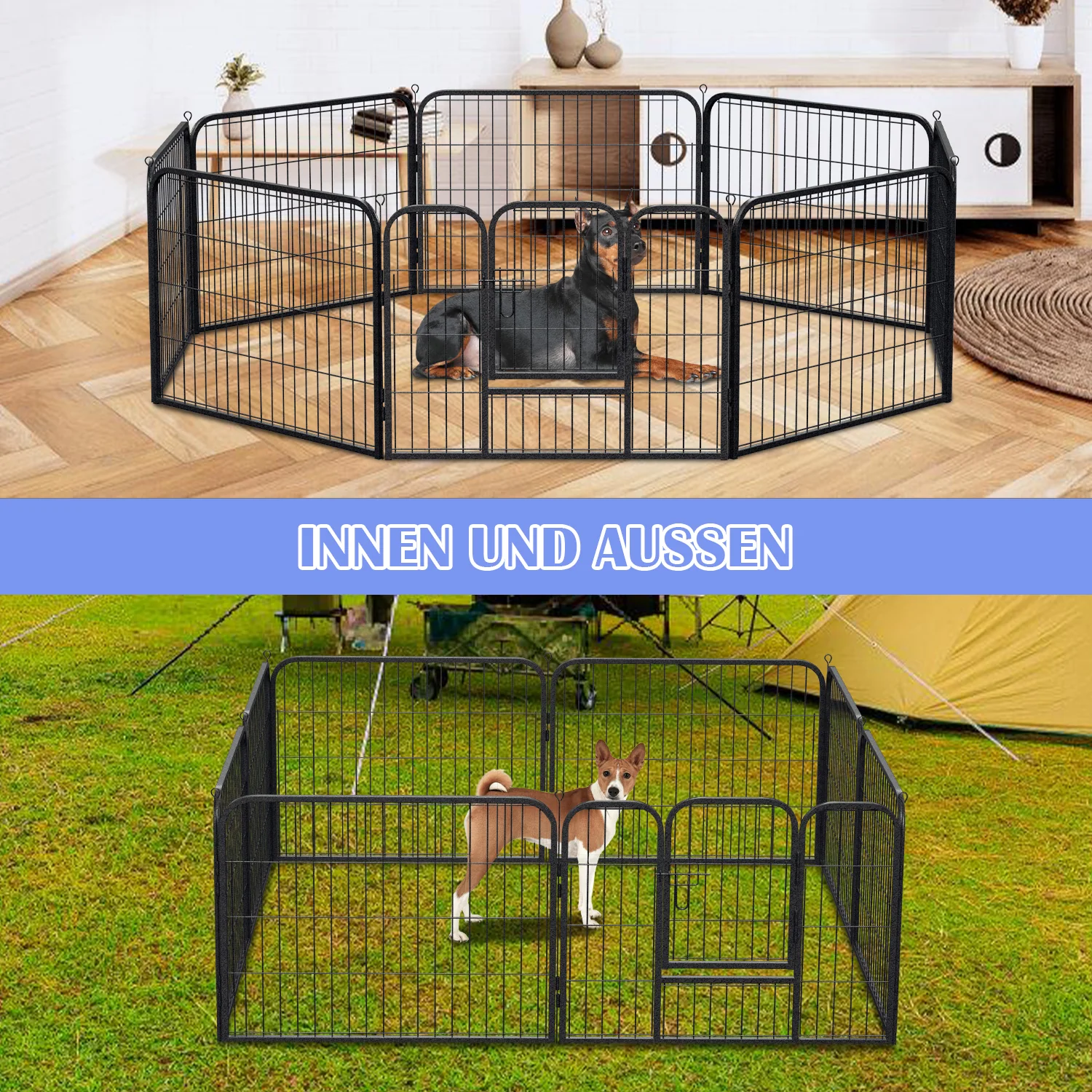 Welpenlaufstall 8-teilig 60cm hoch Faltbar