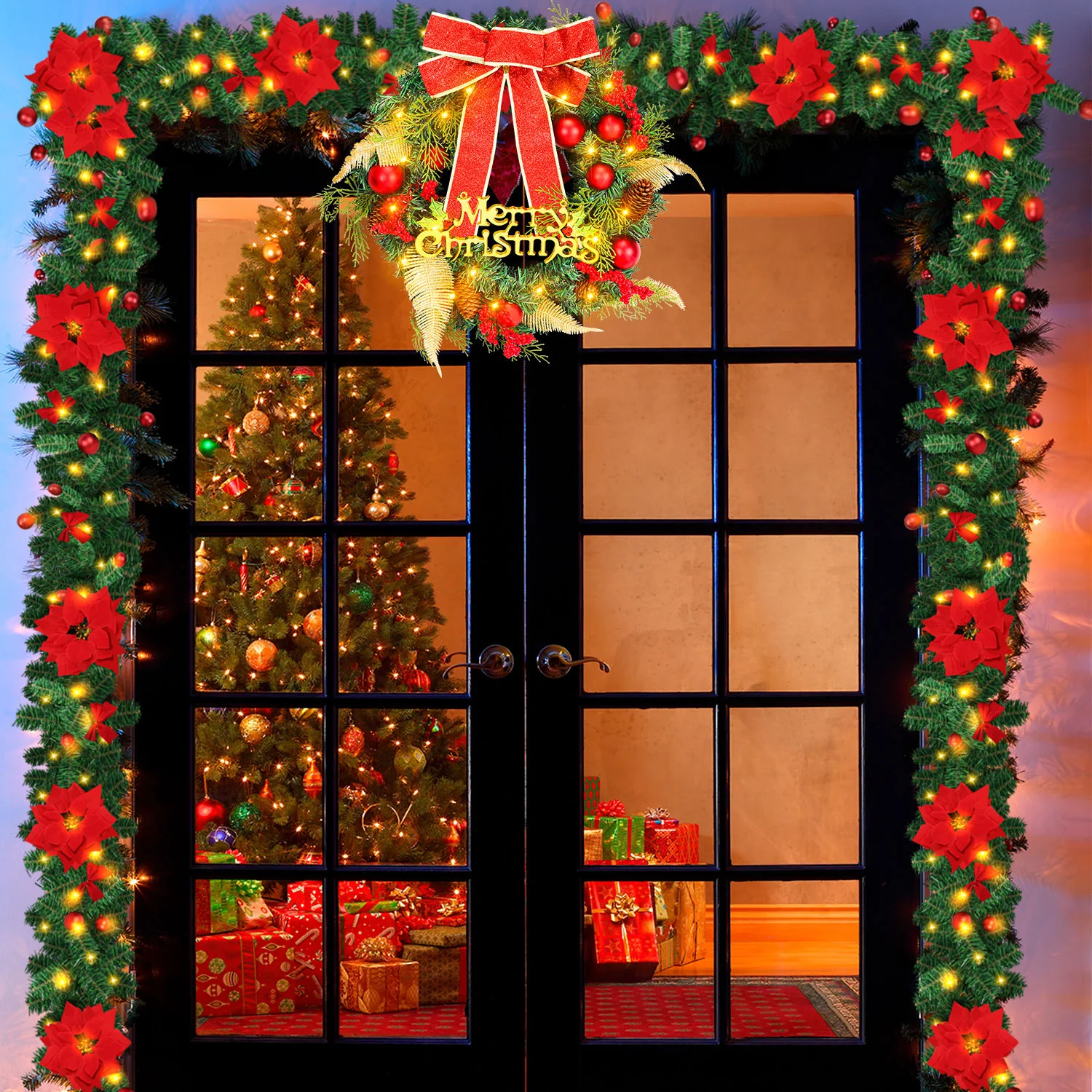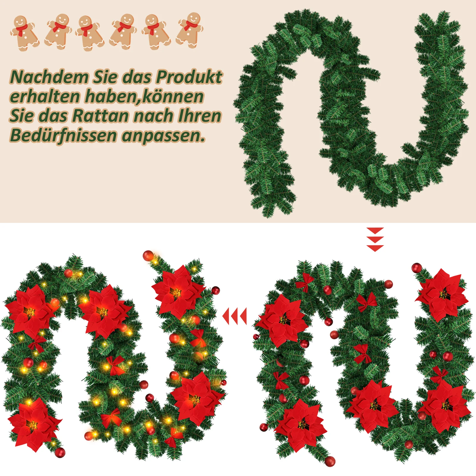 Weihnachtsgirlande 2.7m mit Blumen