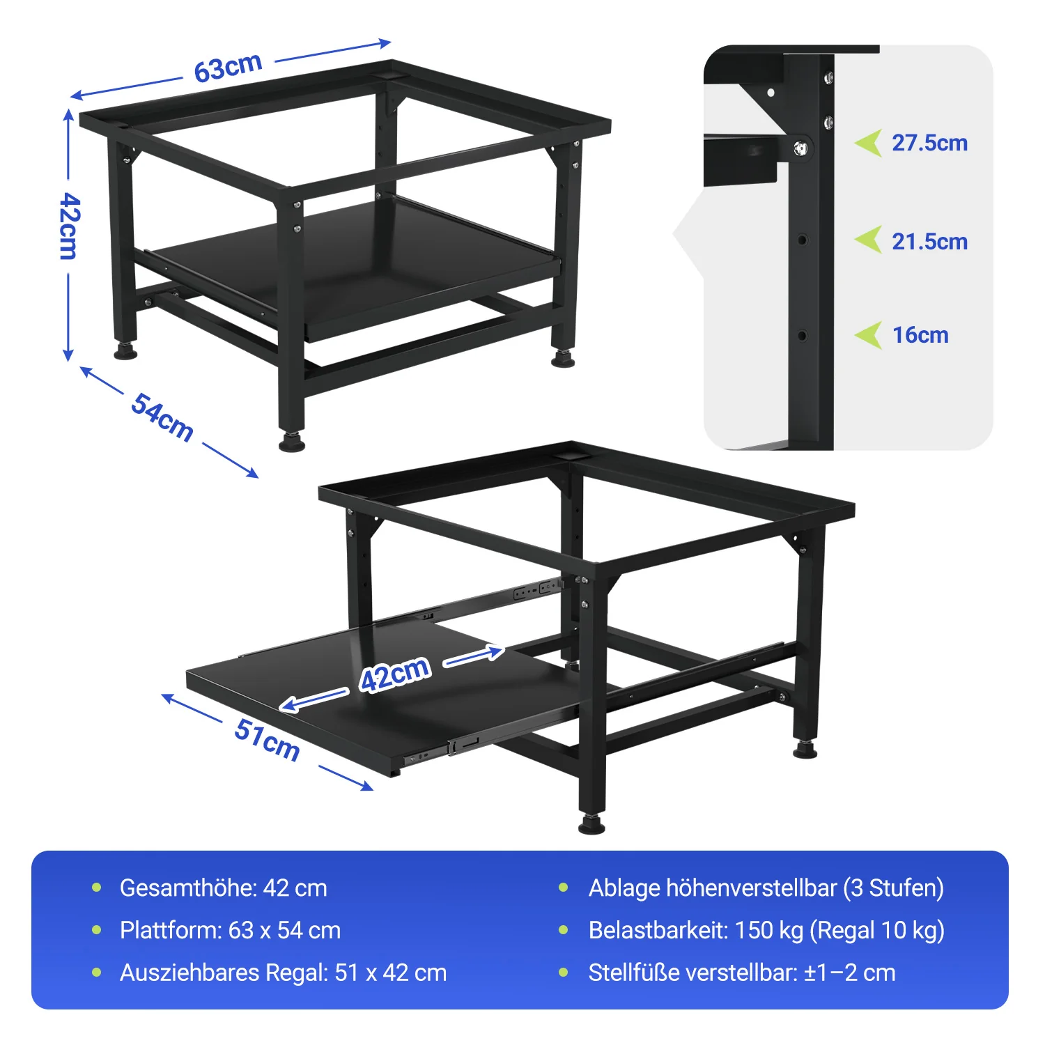 Waschmaschinen Untergestell mit Ablage Tragfähigkeit 150kg