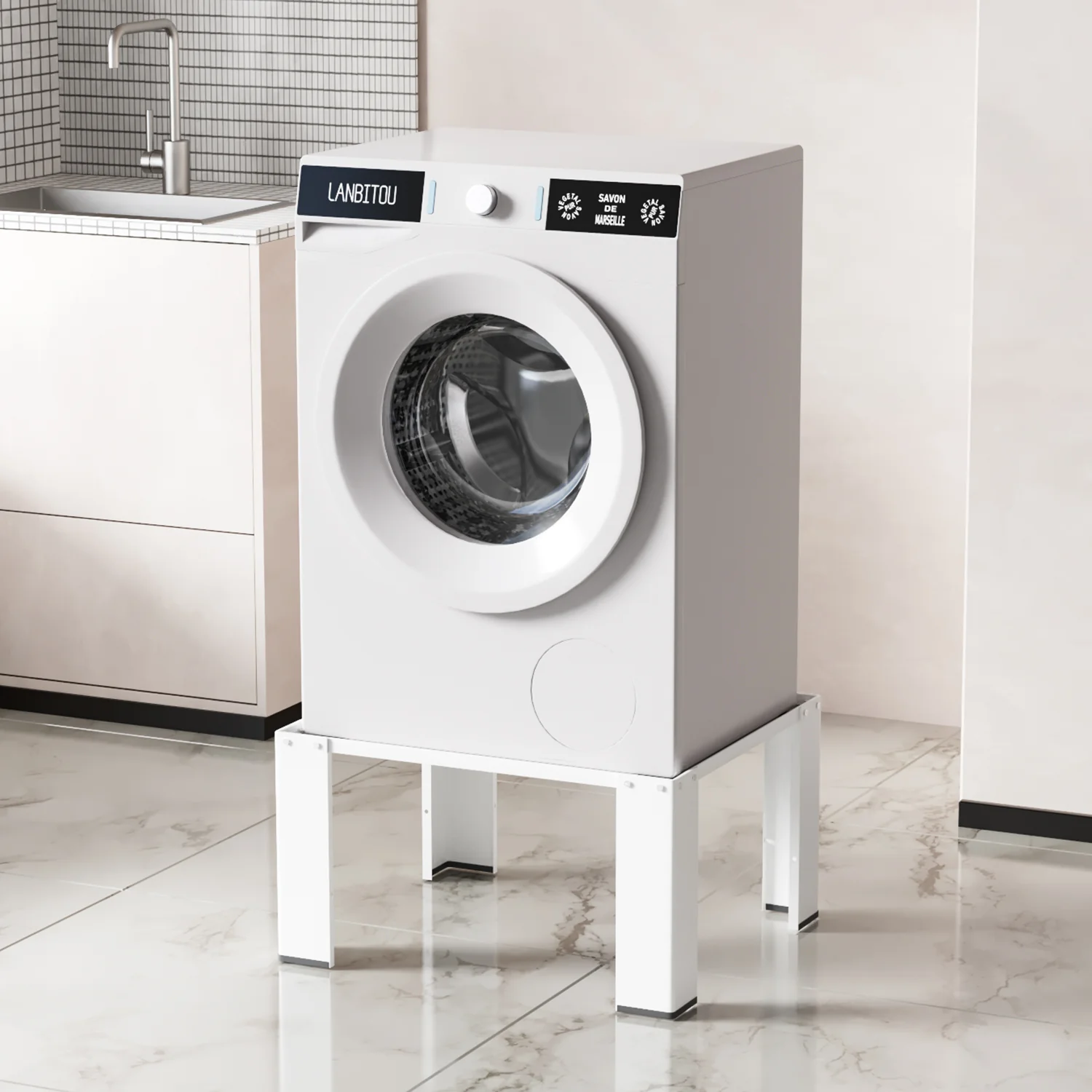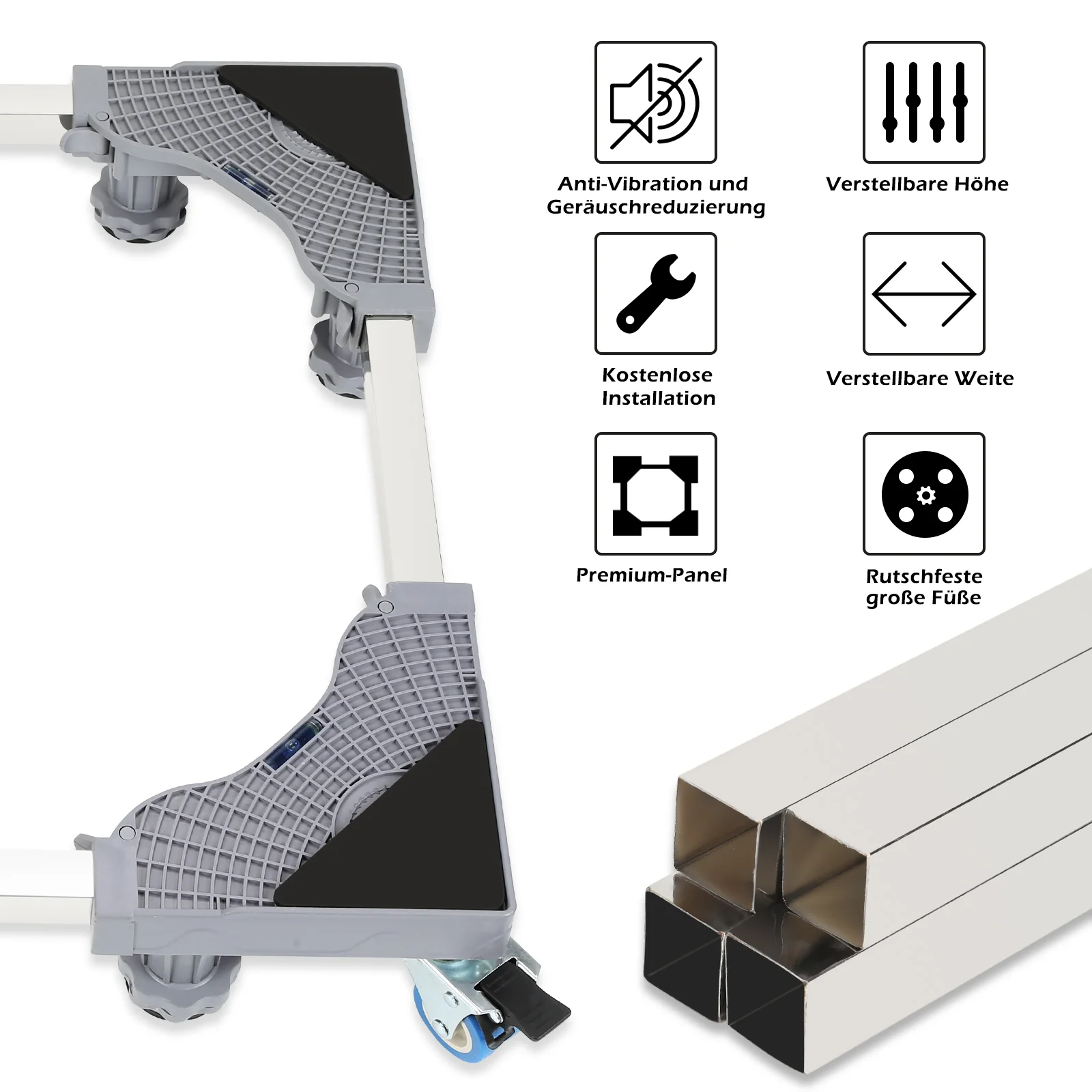 Waschmaschine Sockel Untergestell mit 8 Füße & 4 Räder