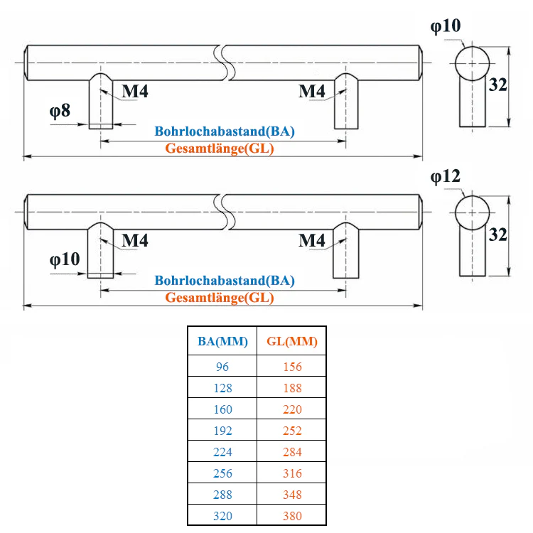 10 Stück Küchengriffe Türgriff Möbelgriffe