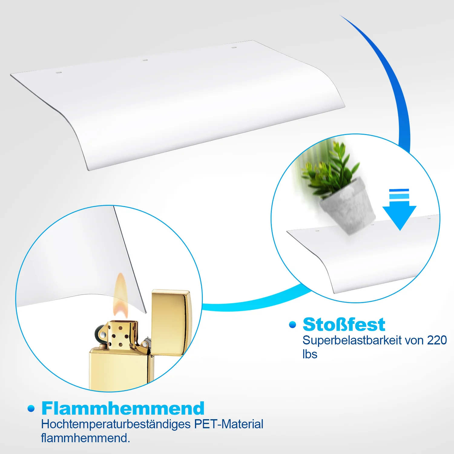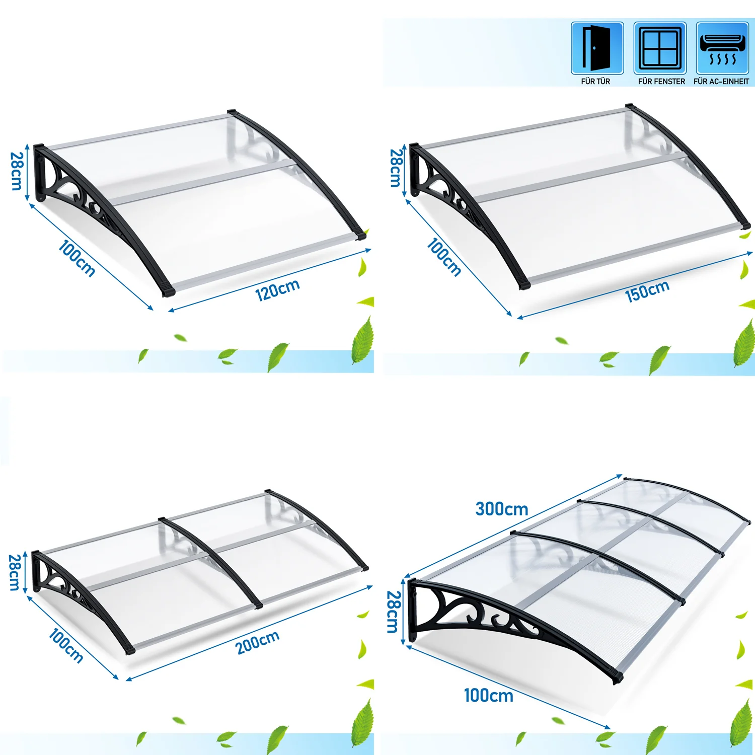 Vordach für Haustür 40x80cm Unsichtbare Überdachung
