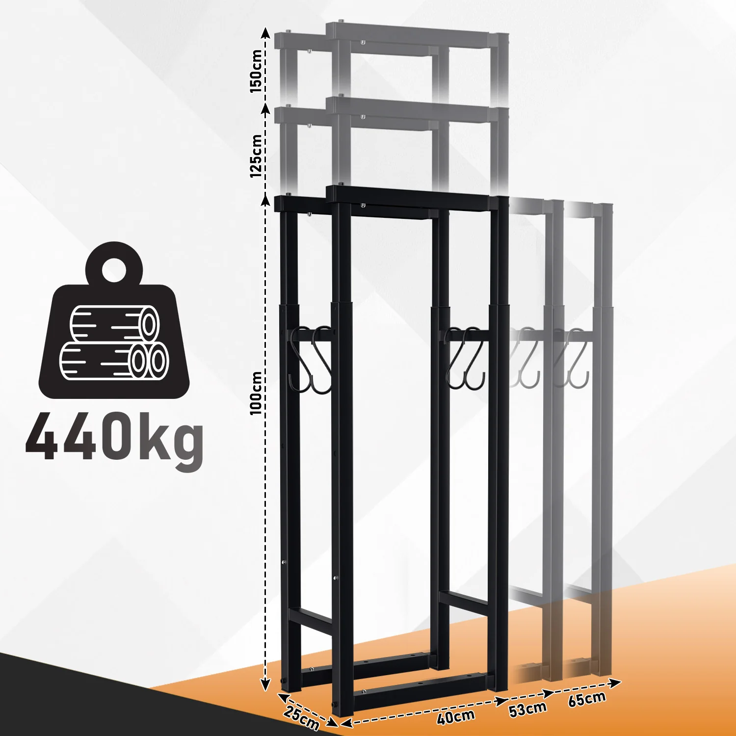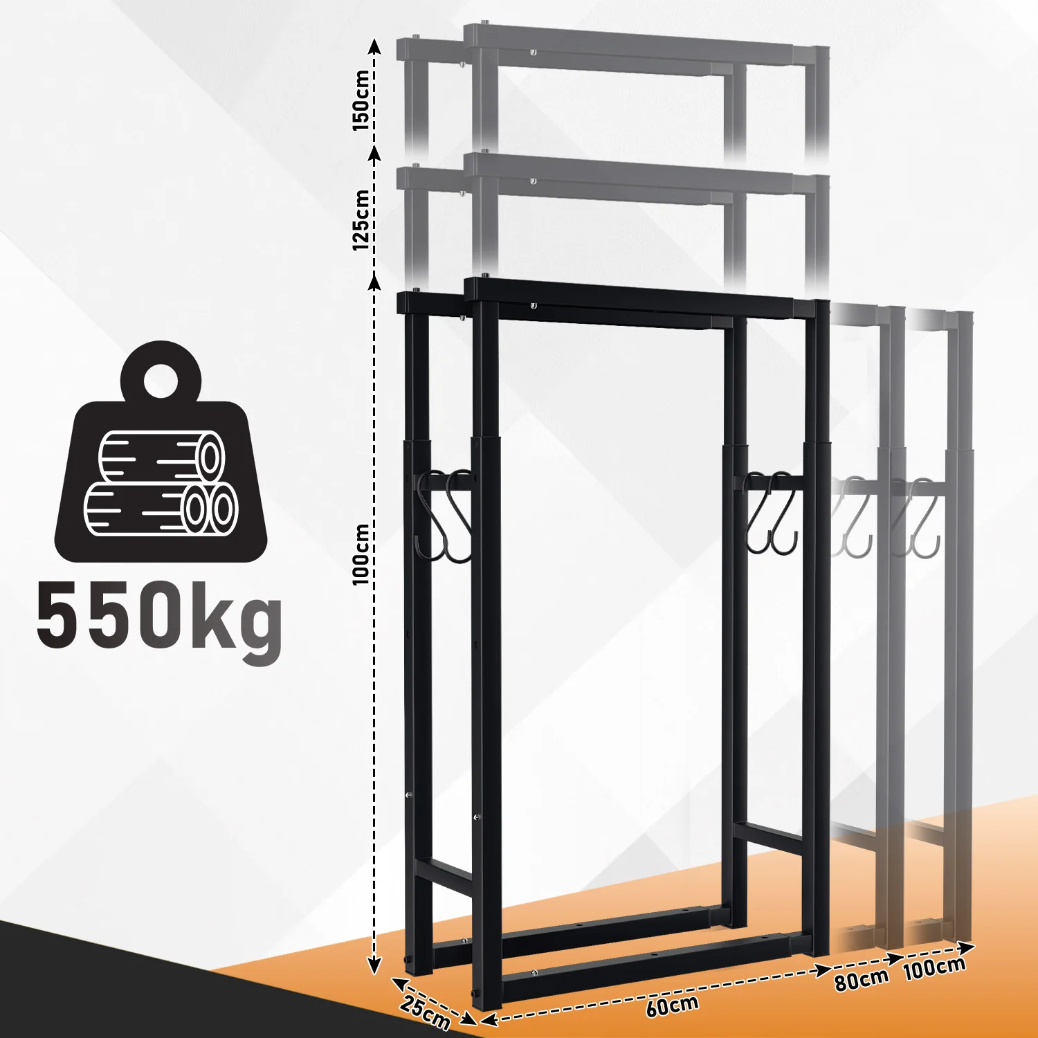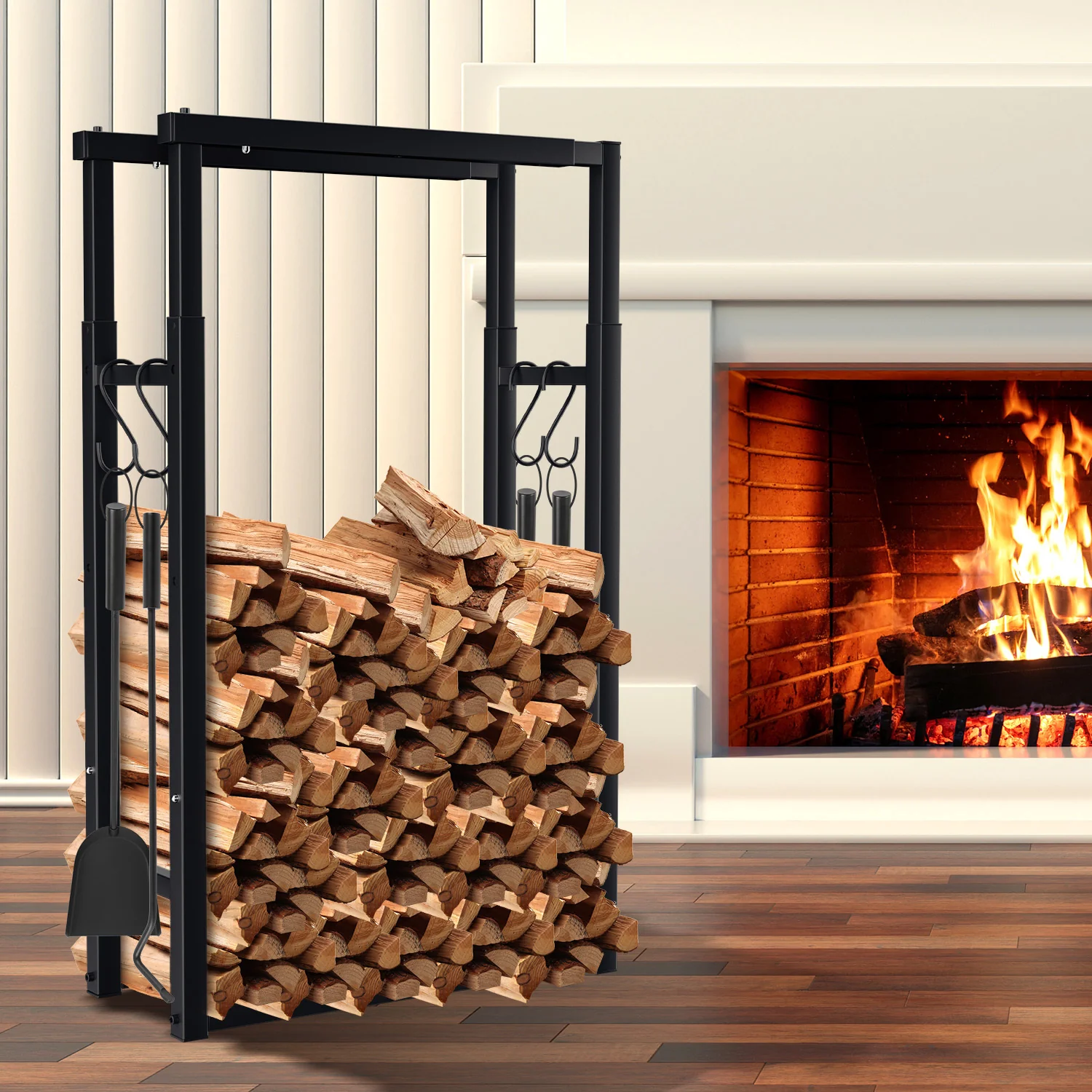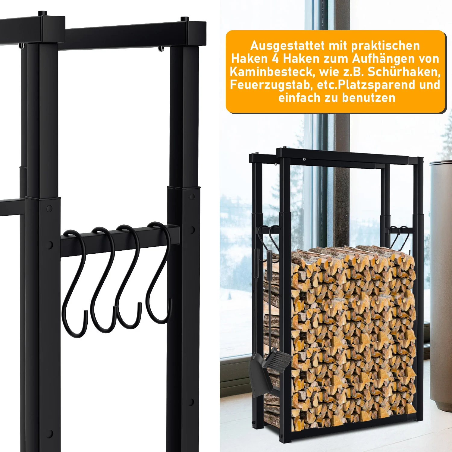 Verstellbare Kaminholzregal Kaminholzständer mit 4 Haken