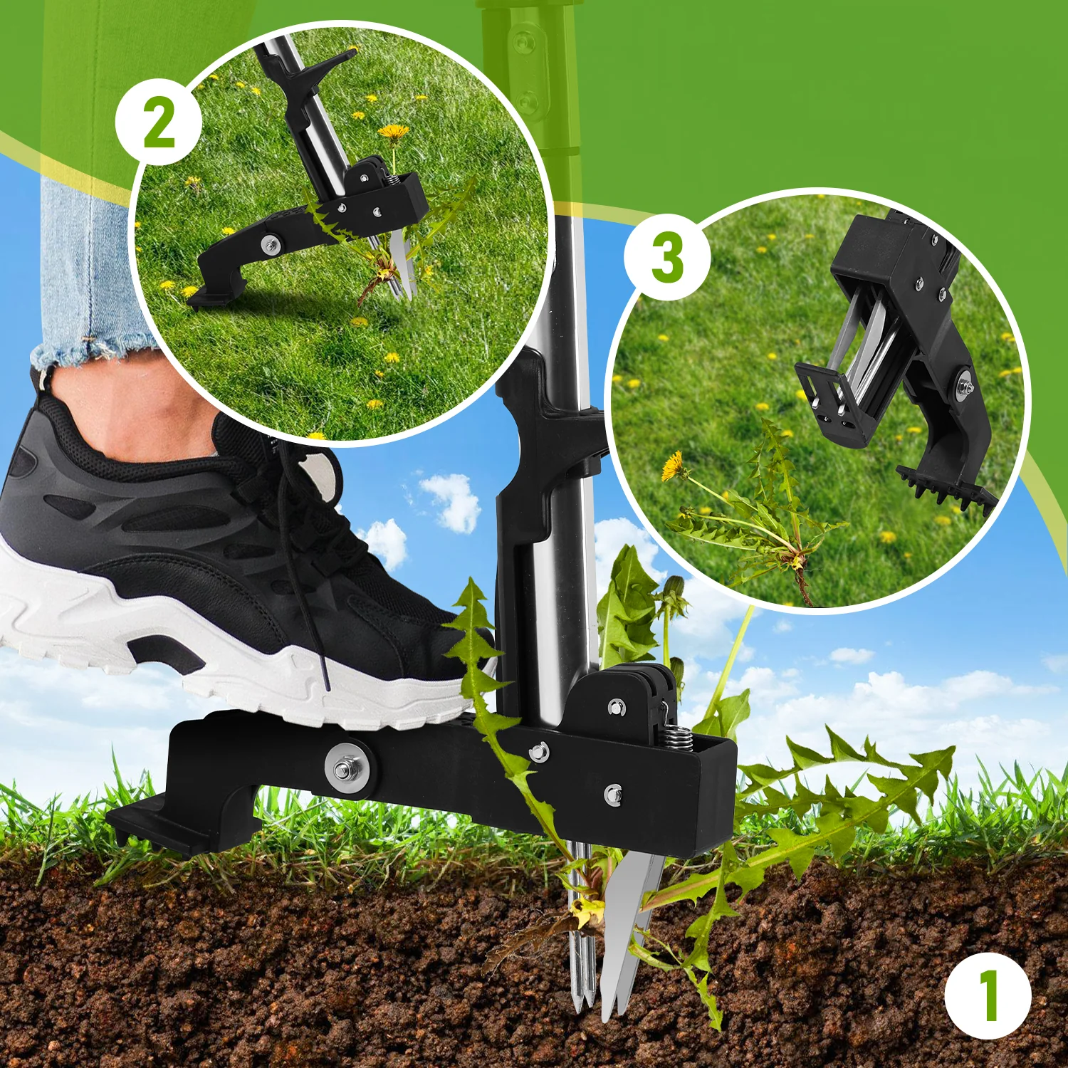 Unkrautstecher Löwenzahnstecher mit Stiel,Auswerfer und Fußpedal