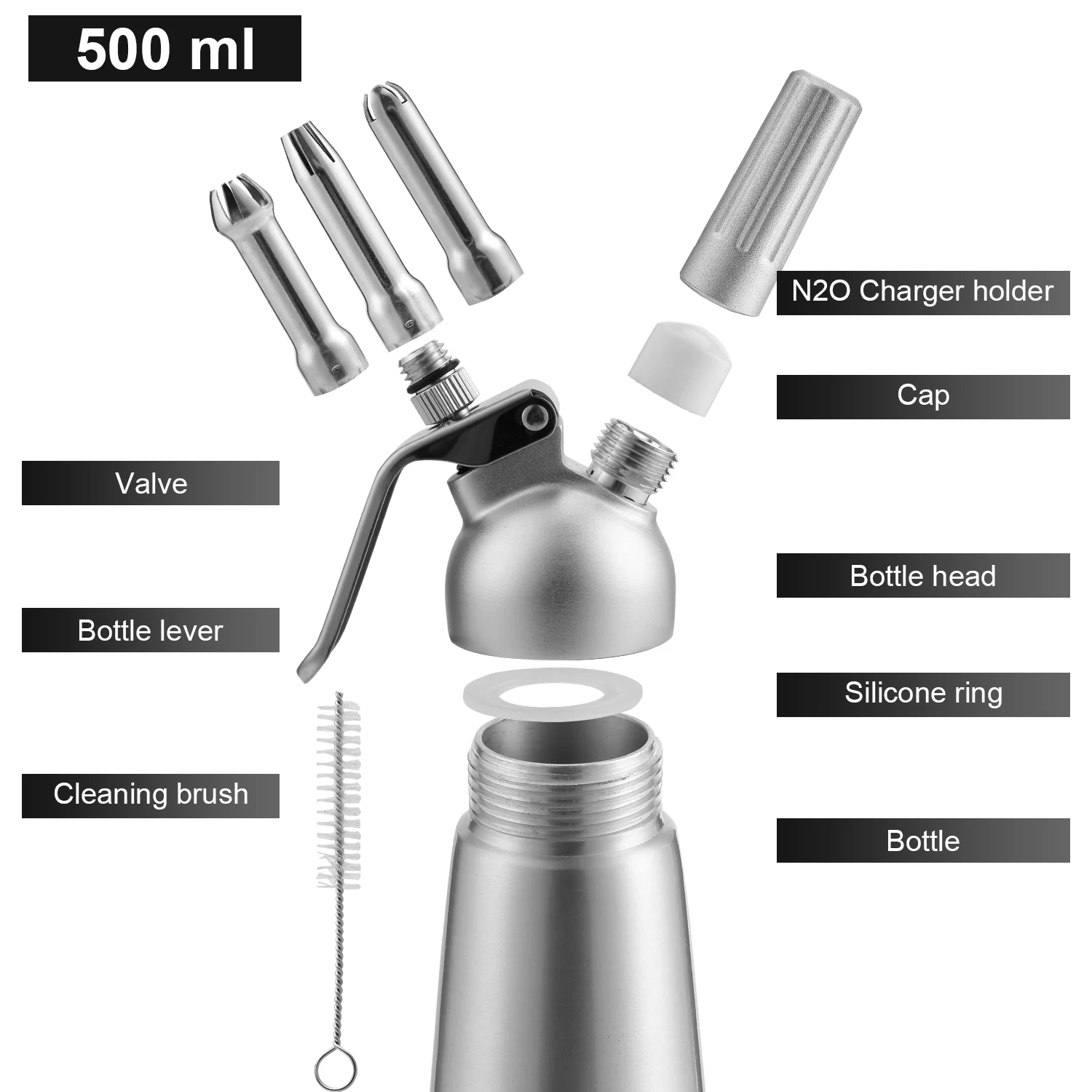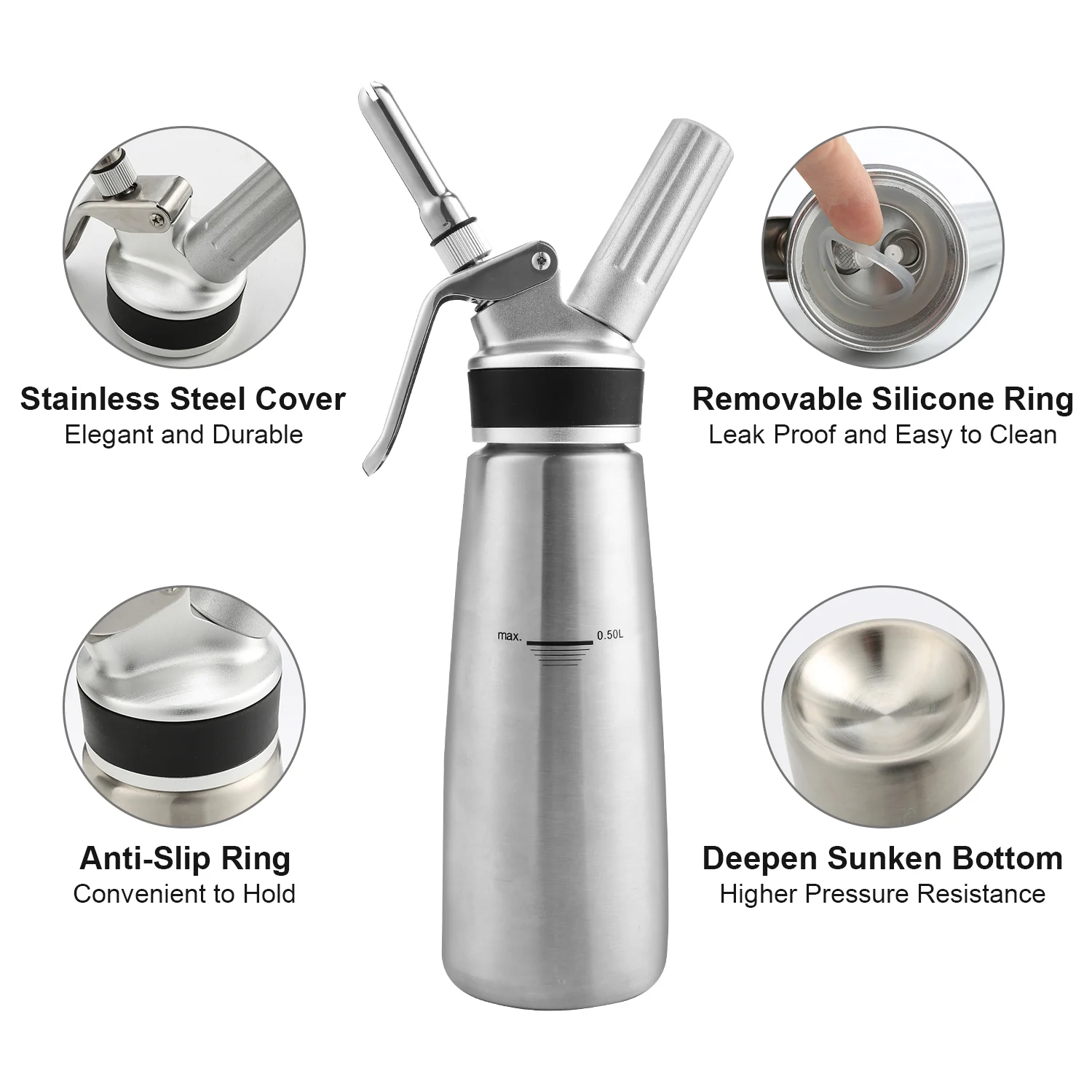 Sahnespender Edelstahl mit 3 Düsen 500ml