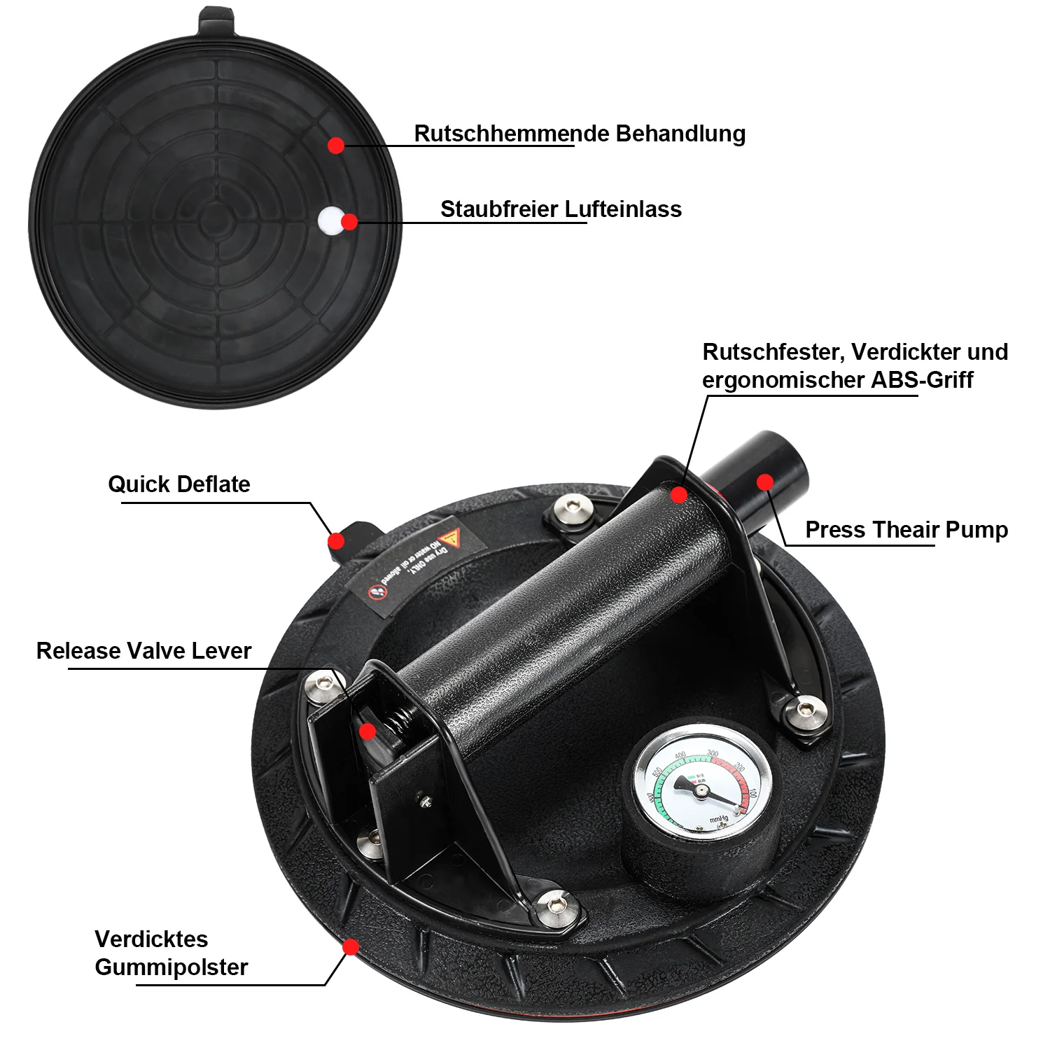Saugheber Saugnapfhalter mit Druckanzeige 1 Stück max.100KG