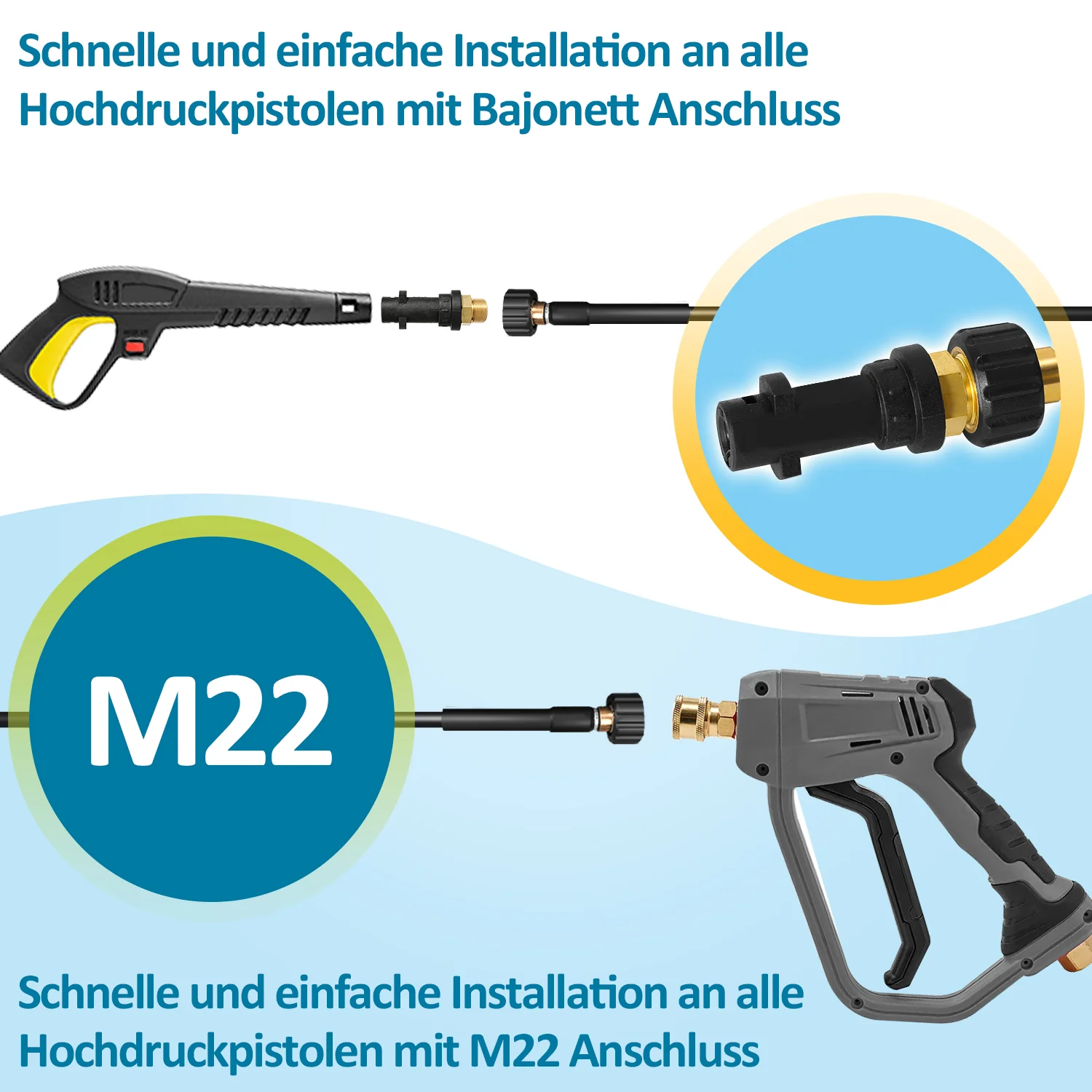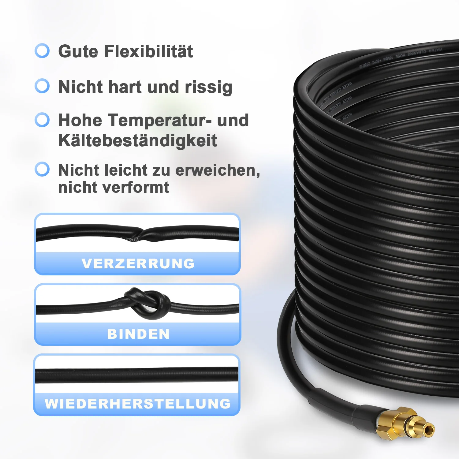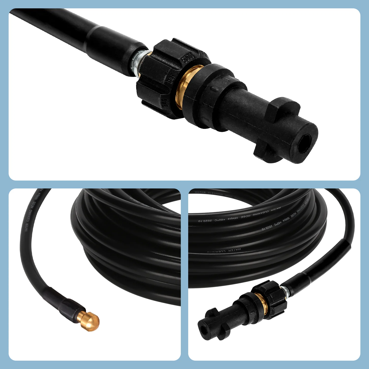 Rohrreinigungsschlauch 10M-30M mit starren und schwenkbaren Düsen, 3 Adapter