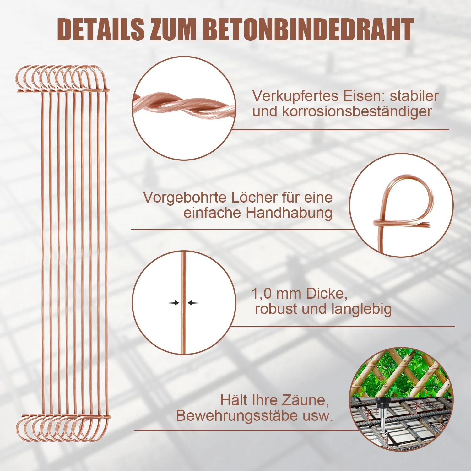 Rödeldraht Ø1,0 x 100 mm/140mm Betonbindedraht 1000 Stk