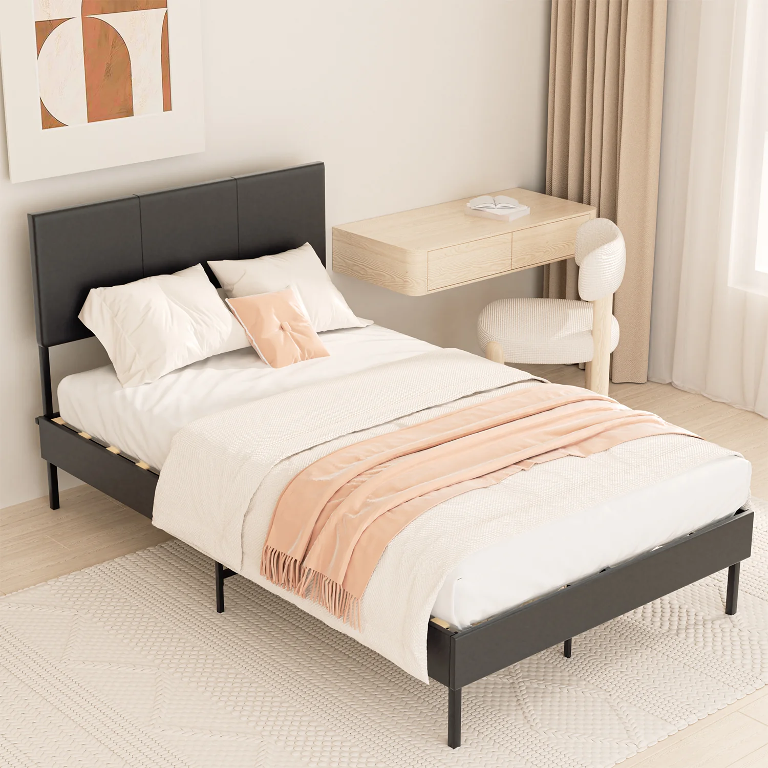 Polsterbett Bettgestell mit Kopfteil Leder