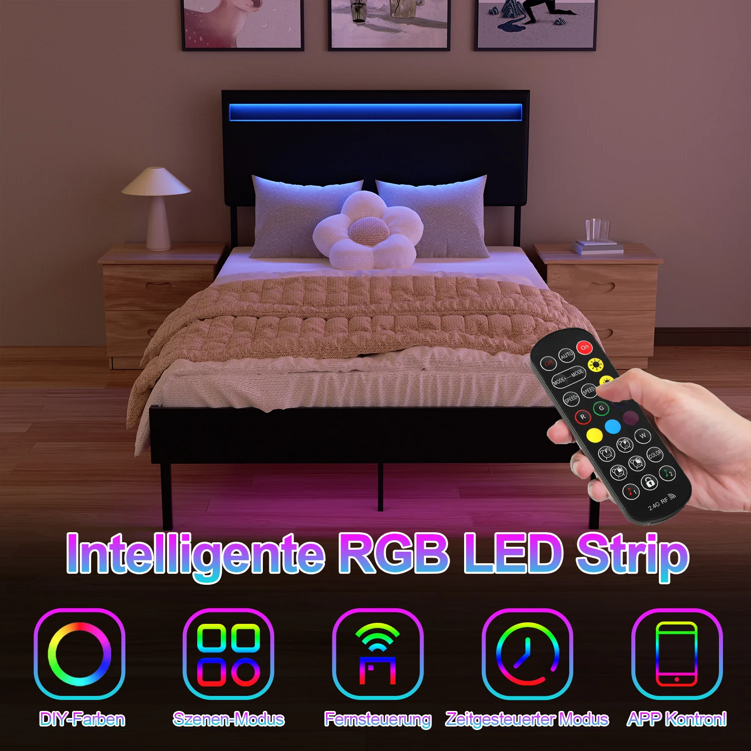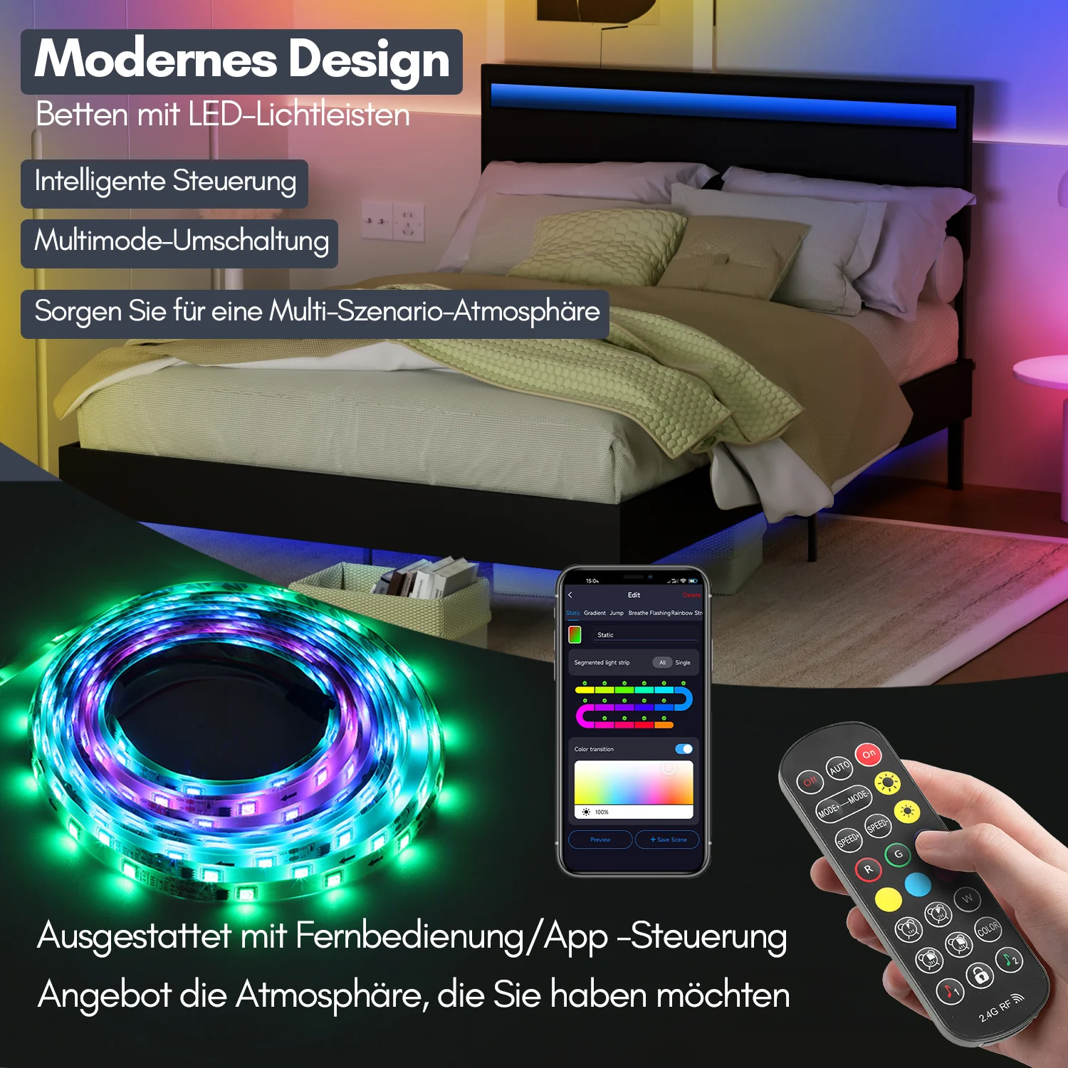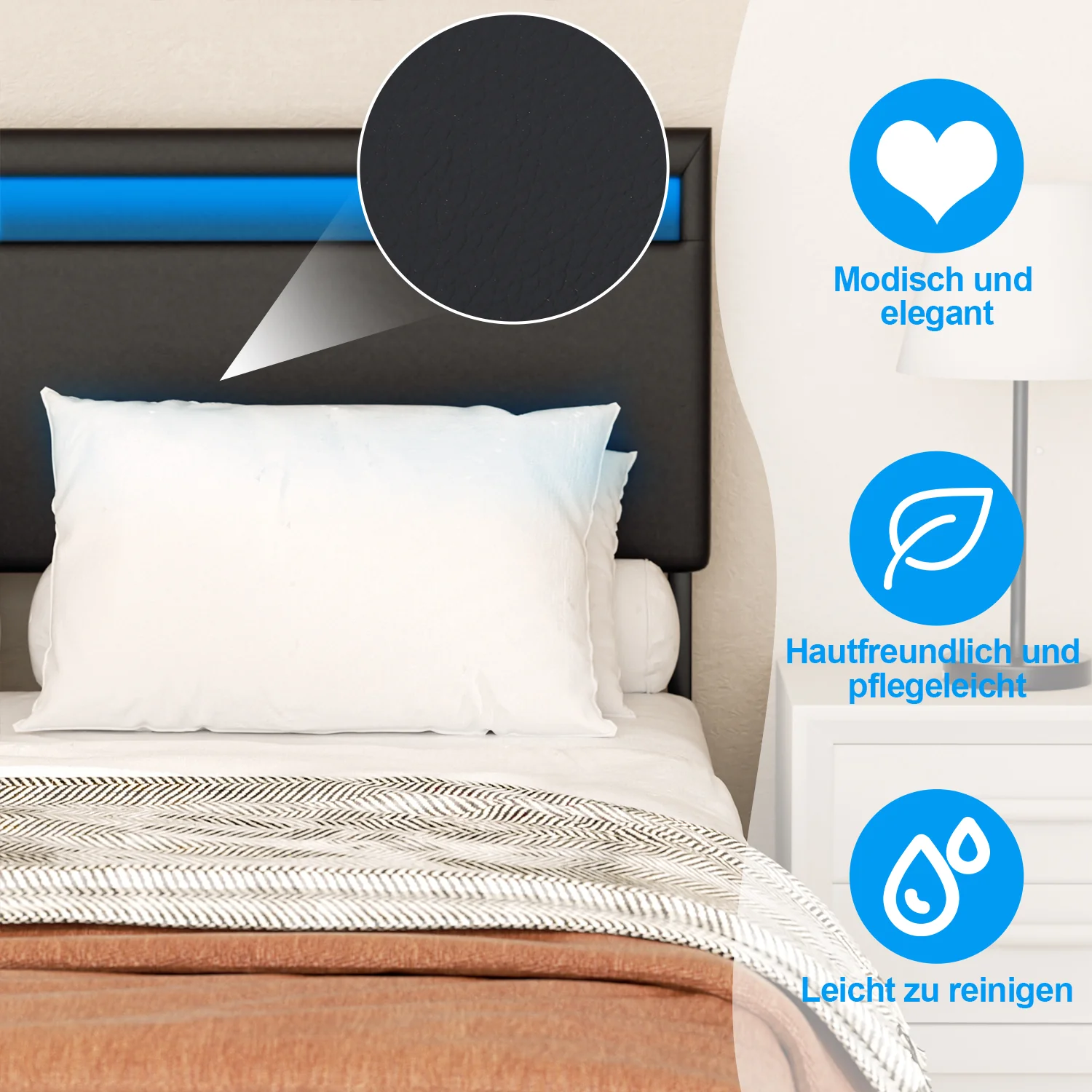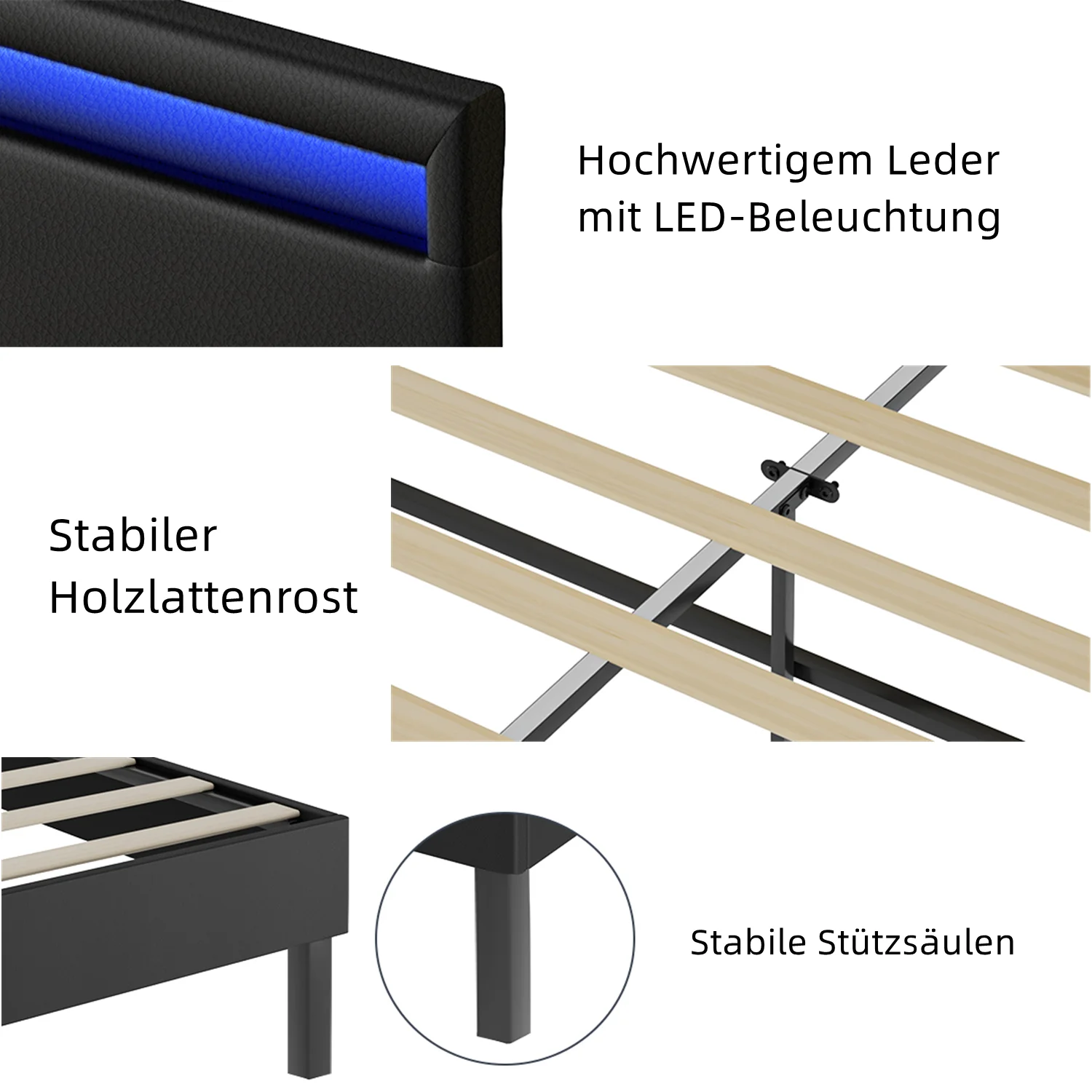 Polsterbett Bettgestell mit Kopfteil Leder LED-Beleuchtung