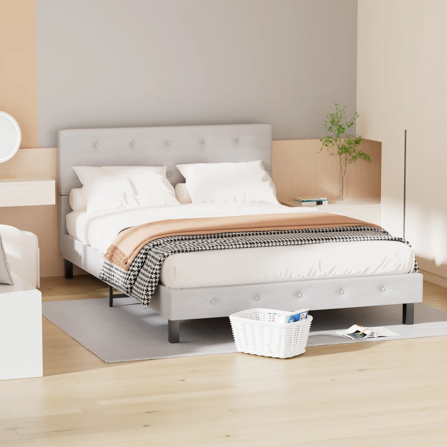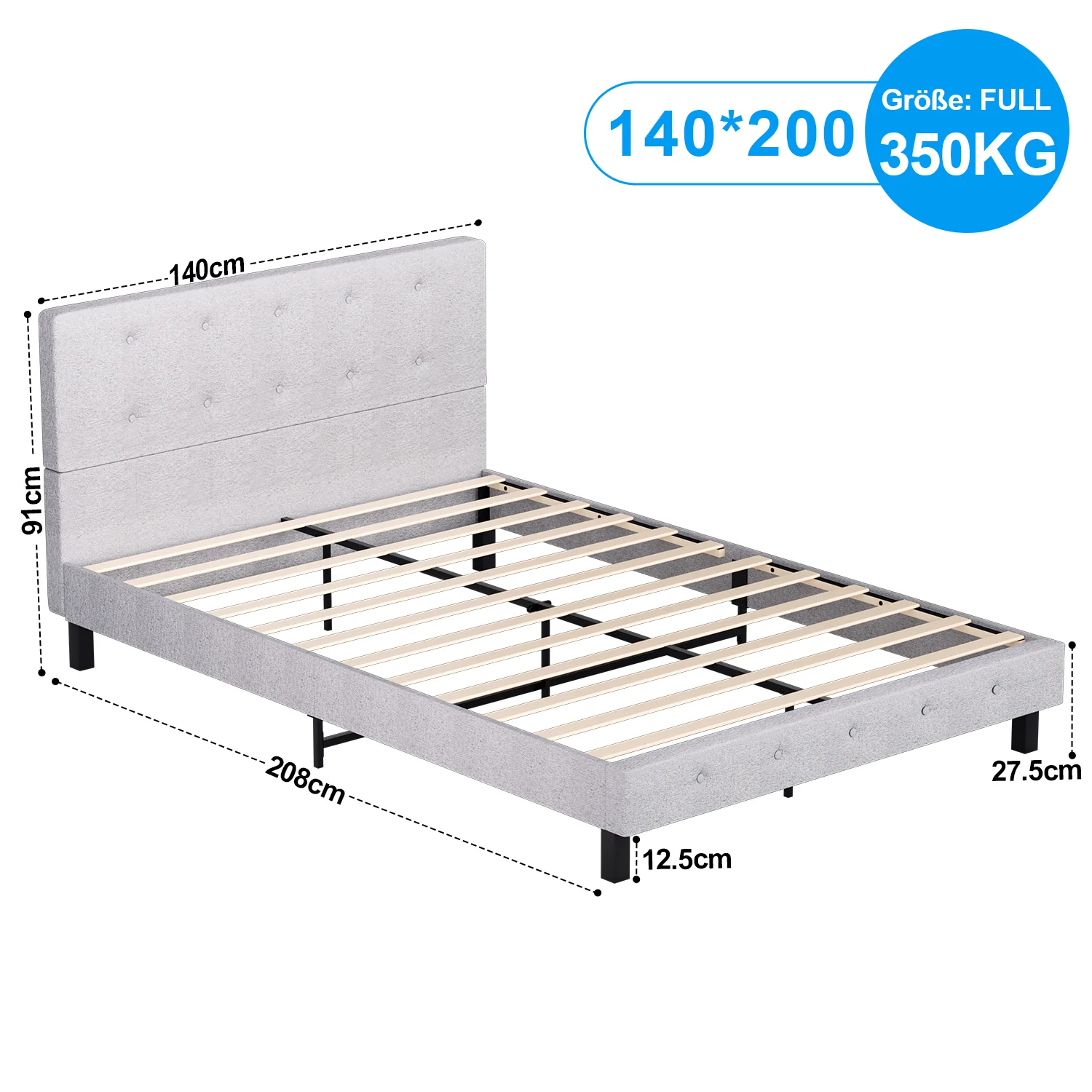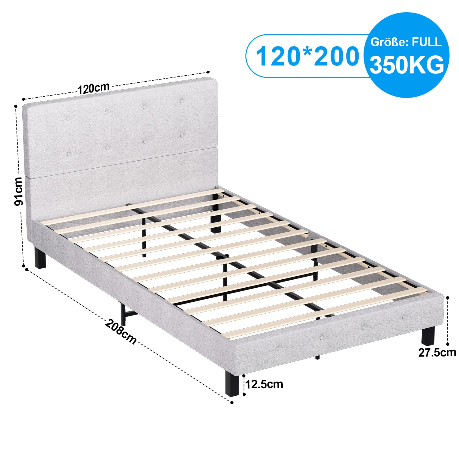 Polsterbett bettgestell mit Kopfteil Weichem Stoff