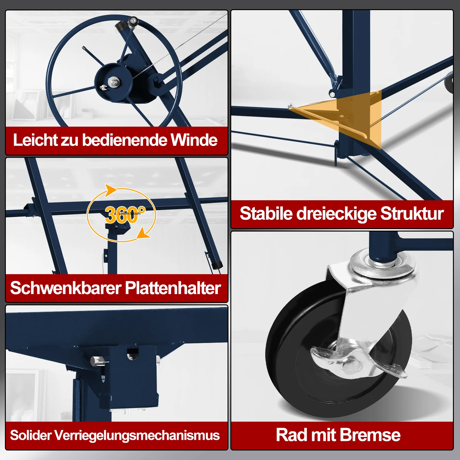 Plattenheber 68 kg Traglast klappbar Höhenverstellbar 140cm -325cm