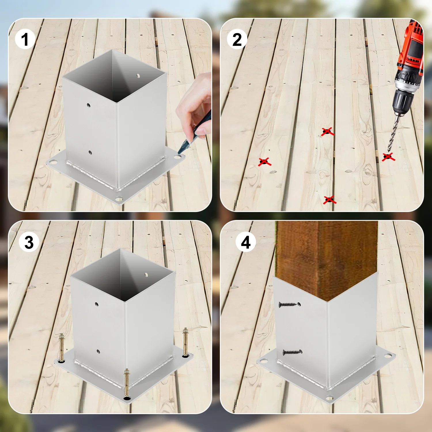 Pfostenträger Aufschraubhülse Feuerverzinkt 4er Set 70-120mm