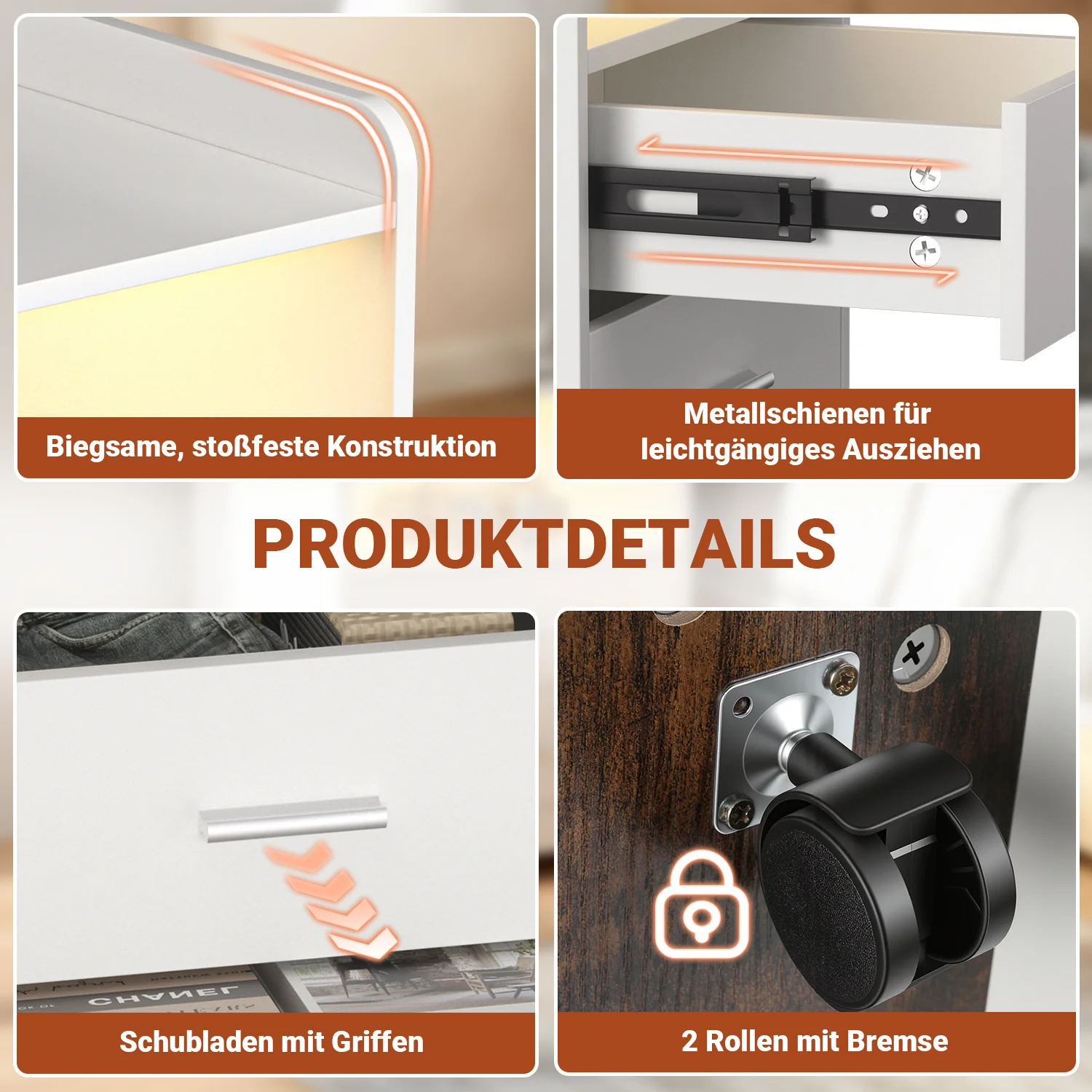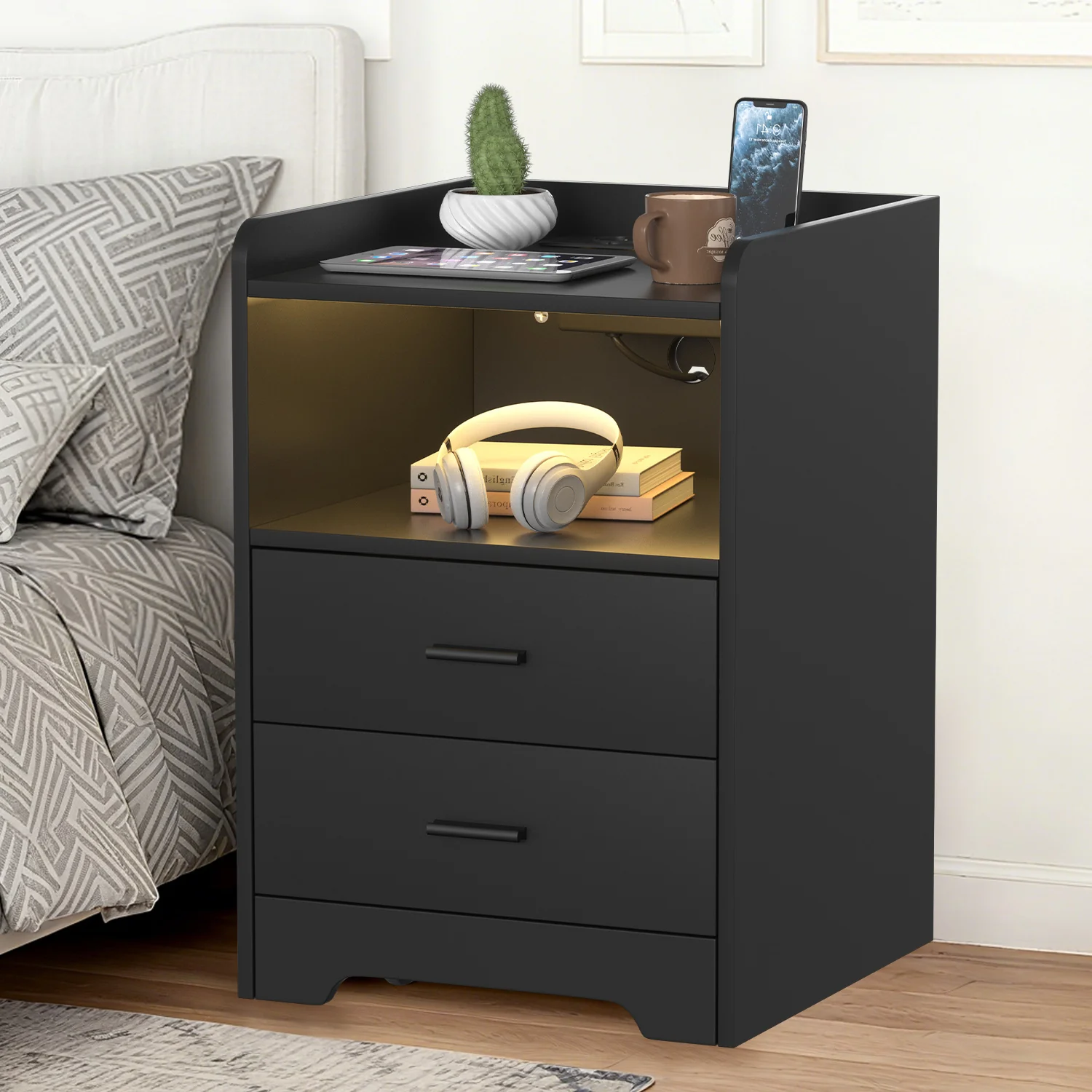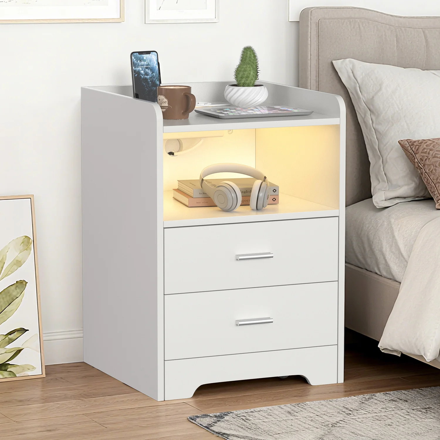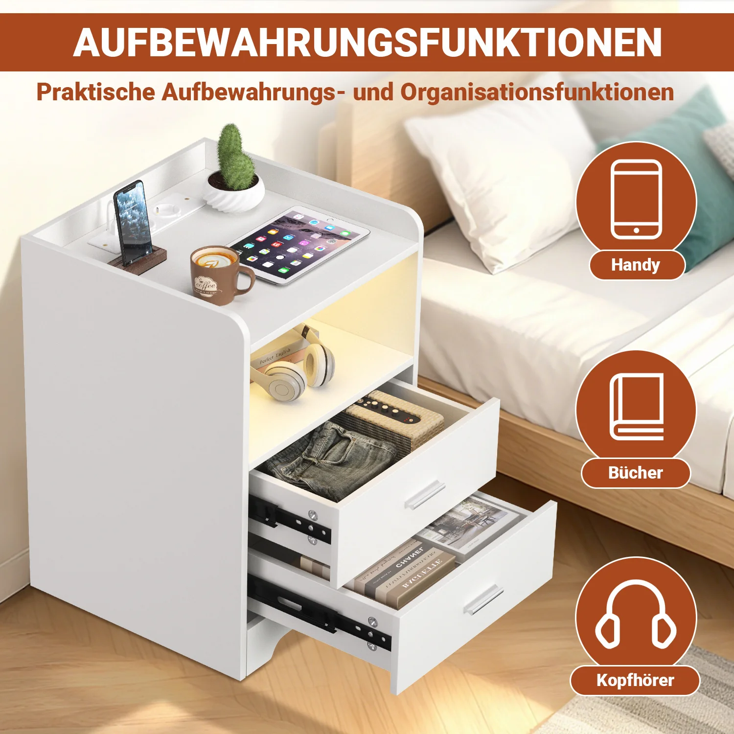 Nachttische mit LED-Streifen 2 Schubladen Steckdose Weiß/Schwarz