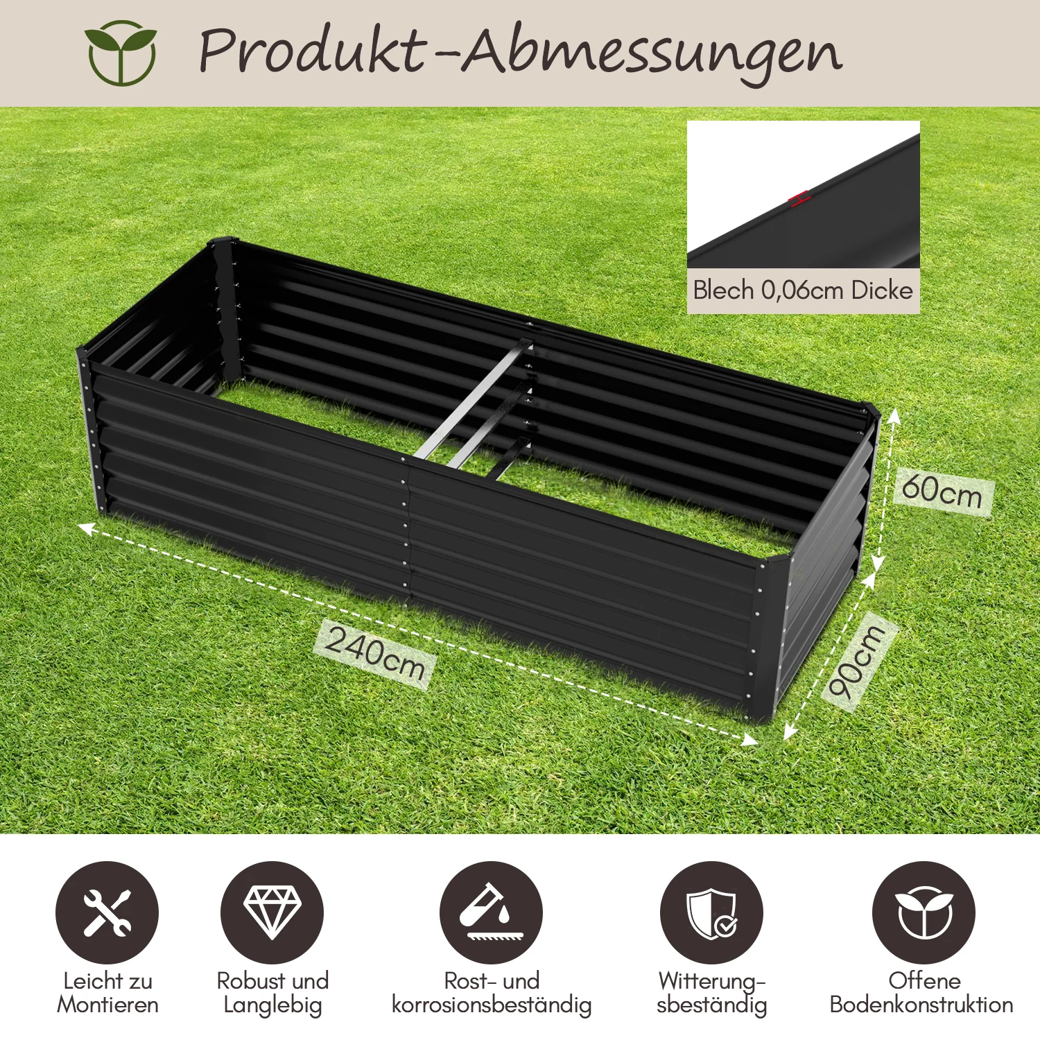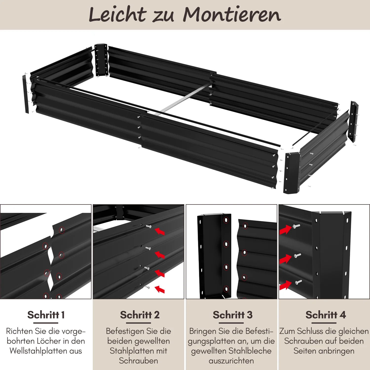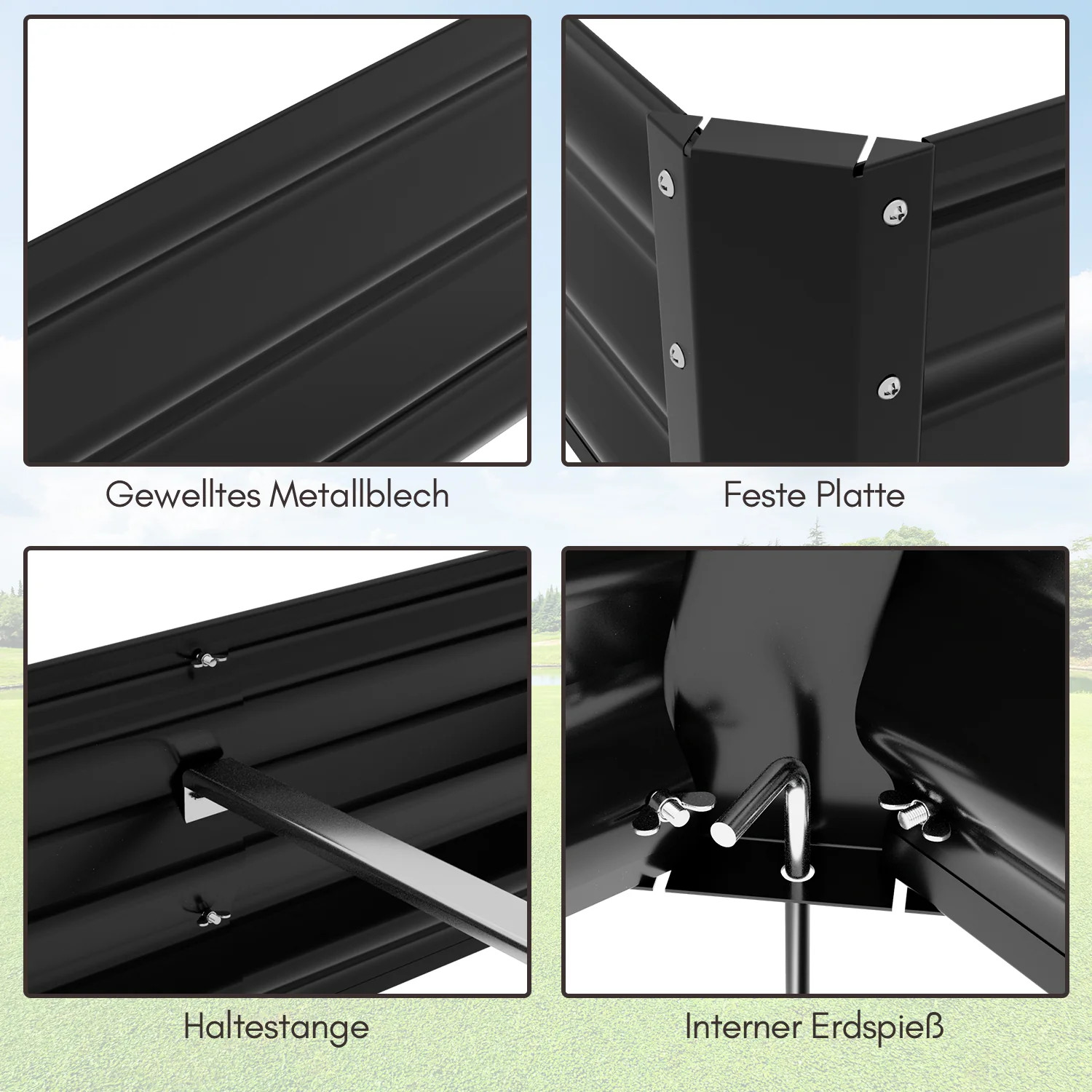 Metall Hochbeete Hochbeete-Kit mit Stützstangen für Garten