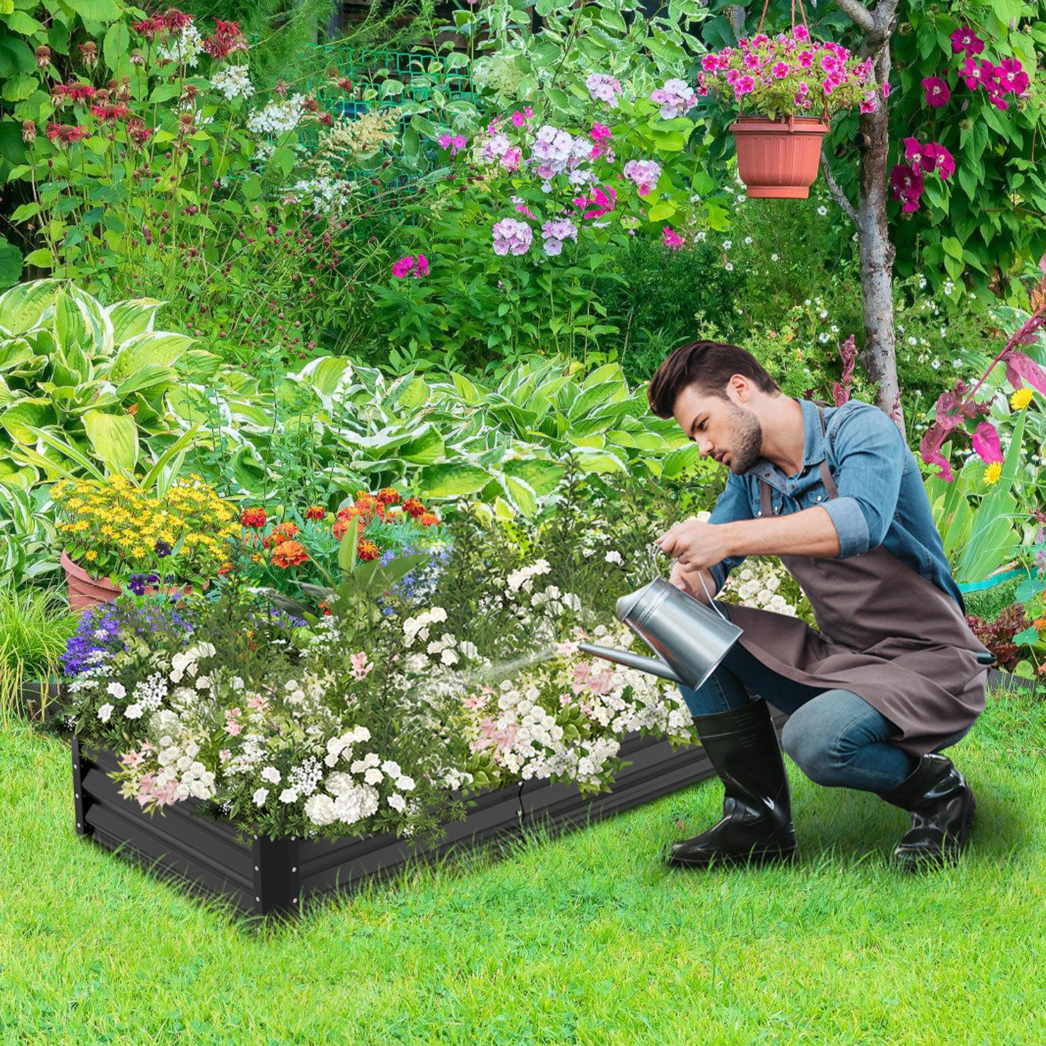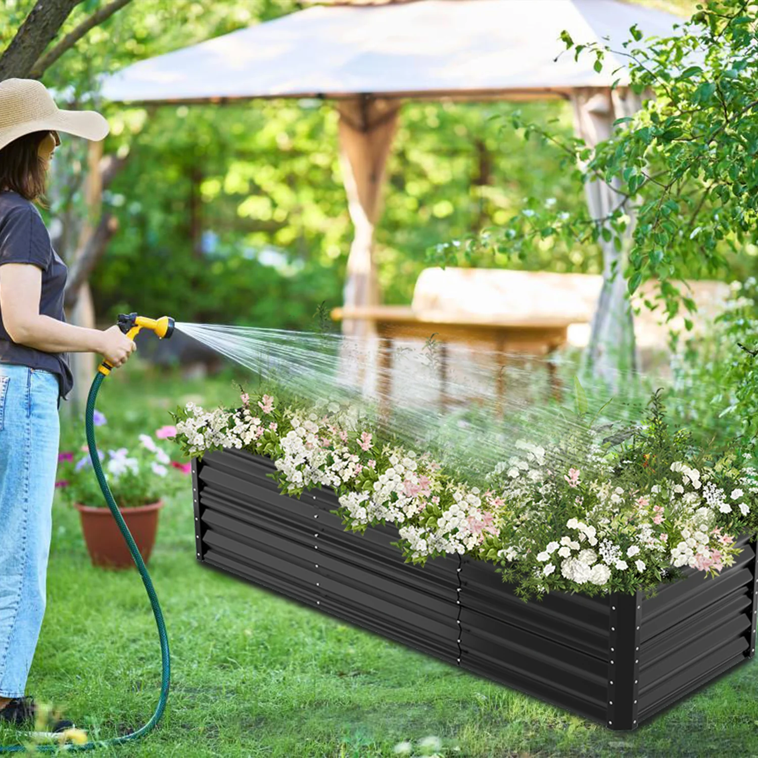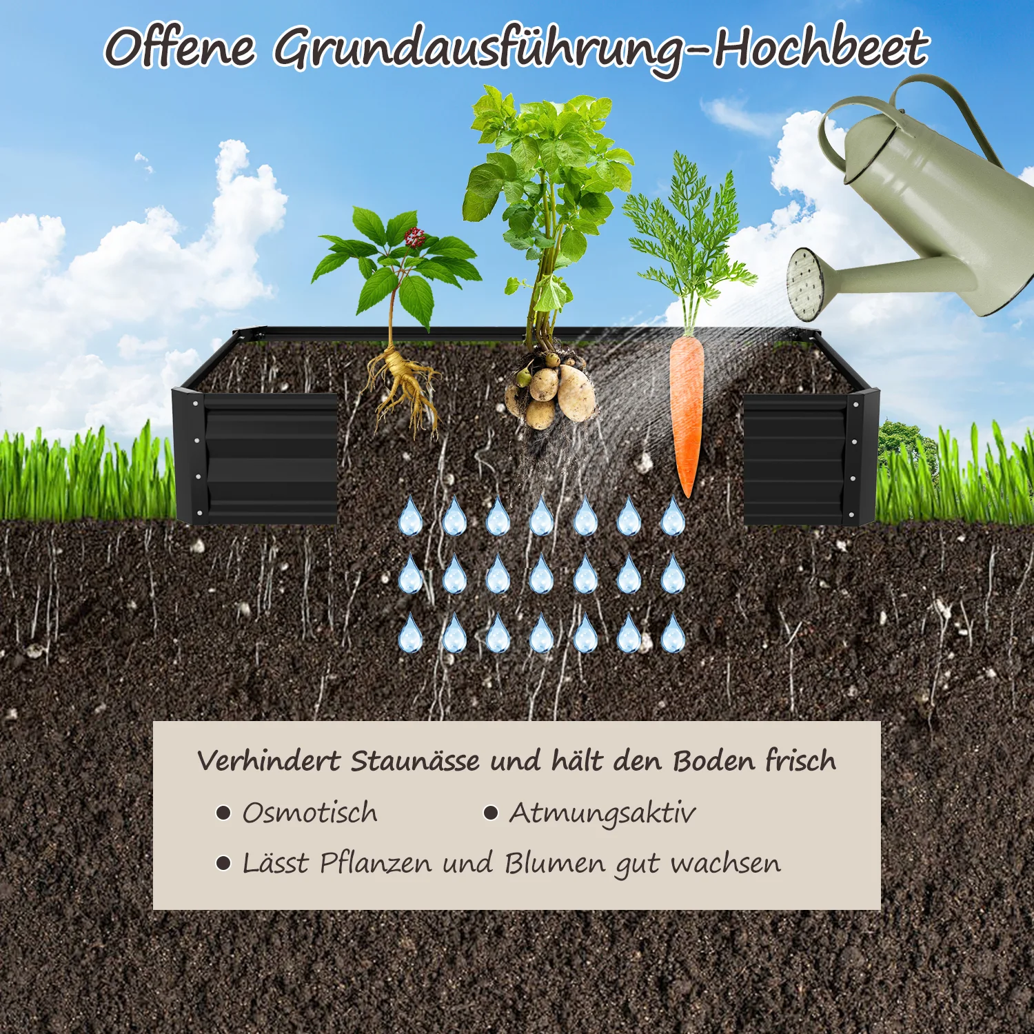 Metall Hochbeete Hochbeete-Kit mit Stützstangen für Garten