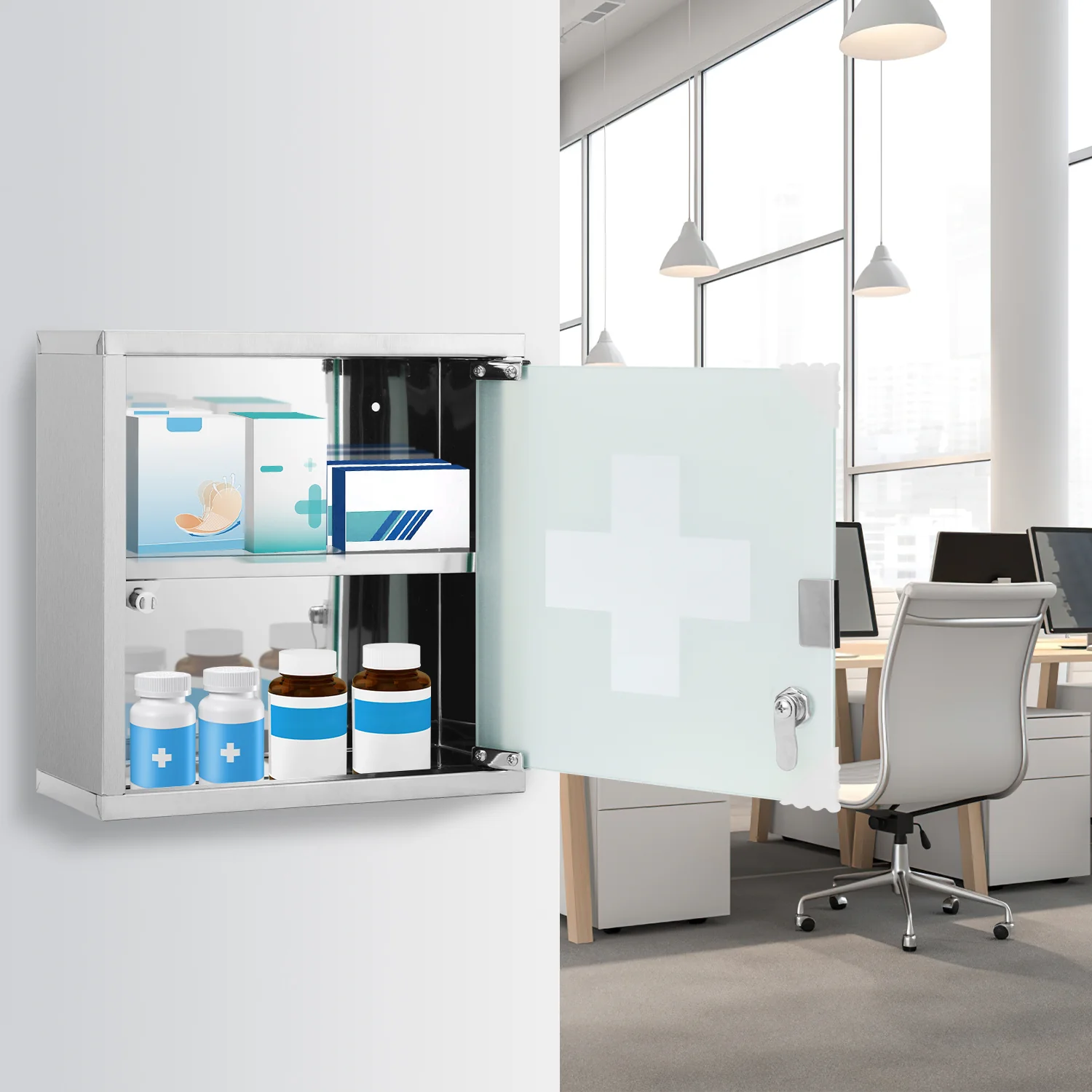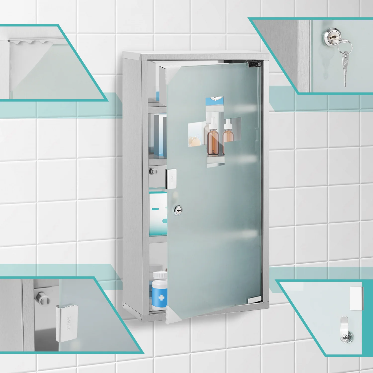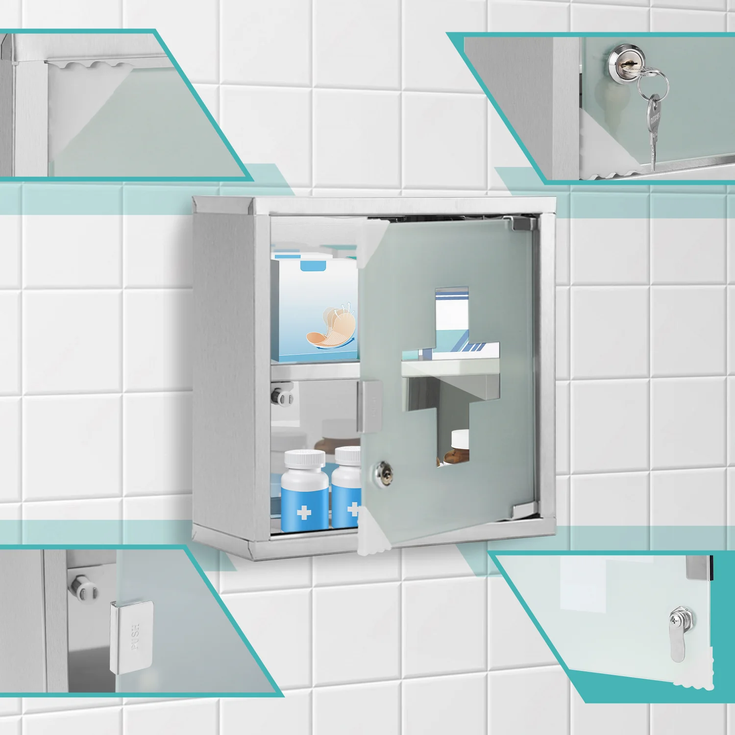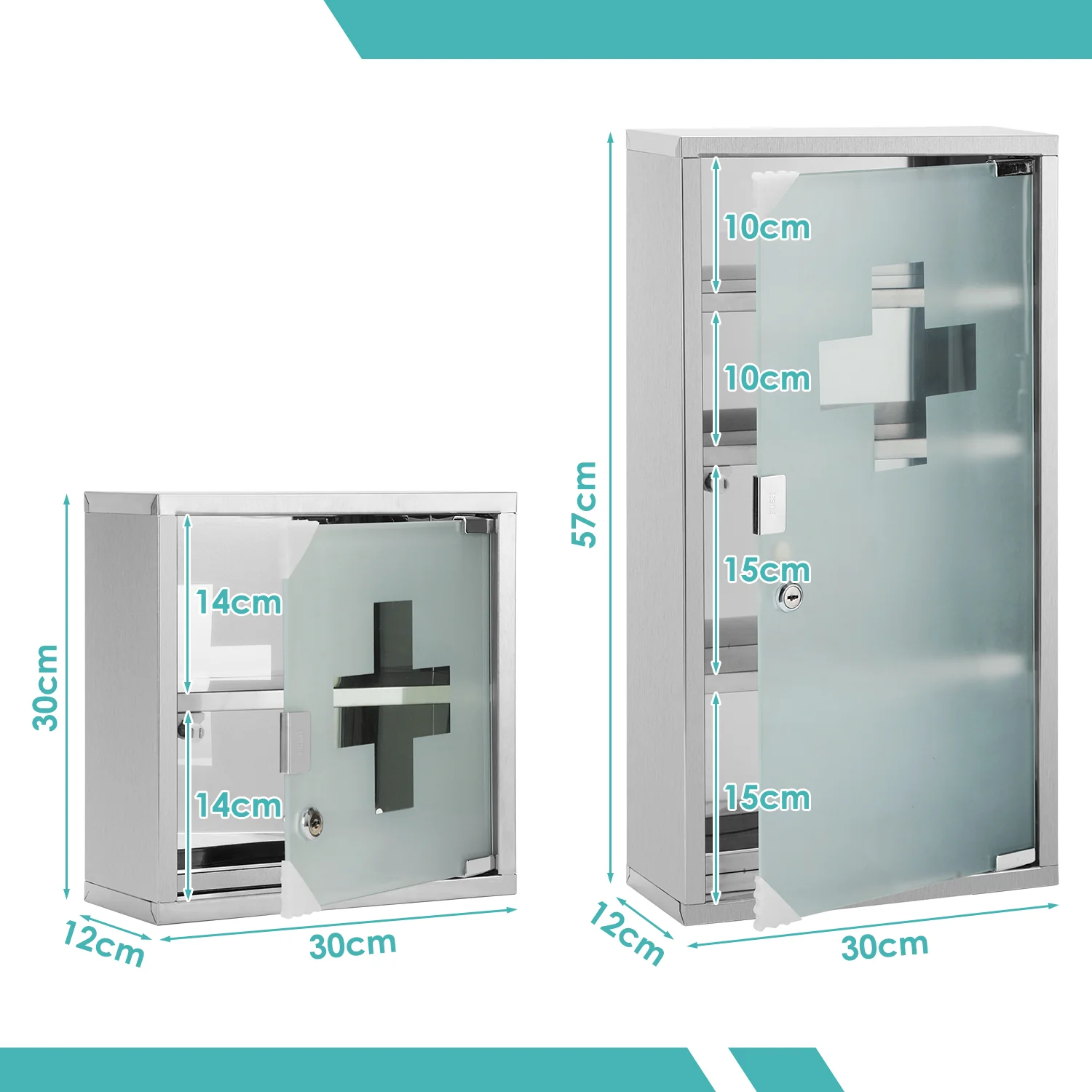 Medizinschrank für Zuhause aus Edelstahl 30x30x12cm/57x30x12cm